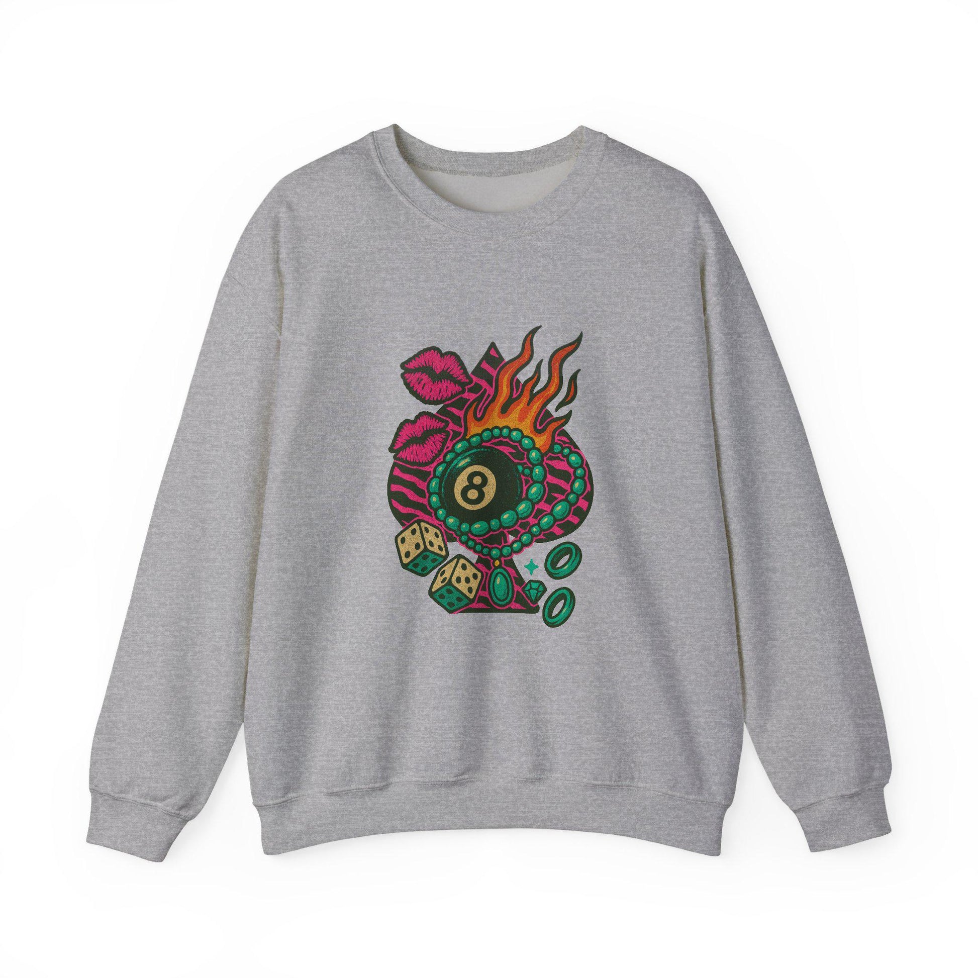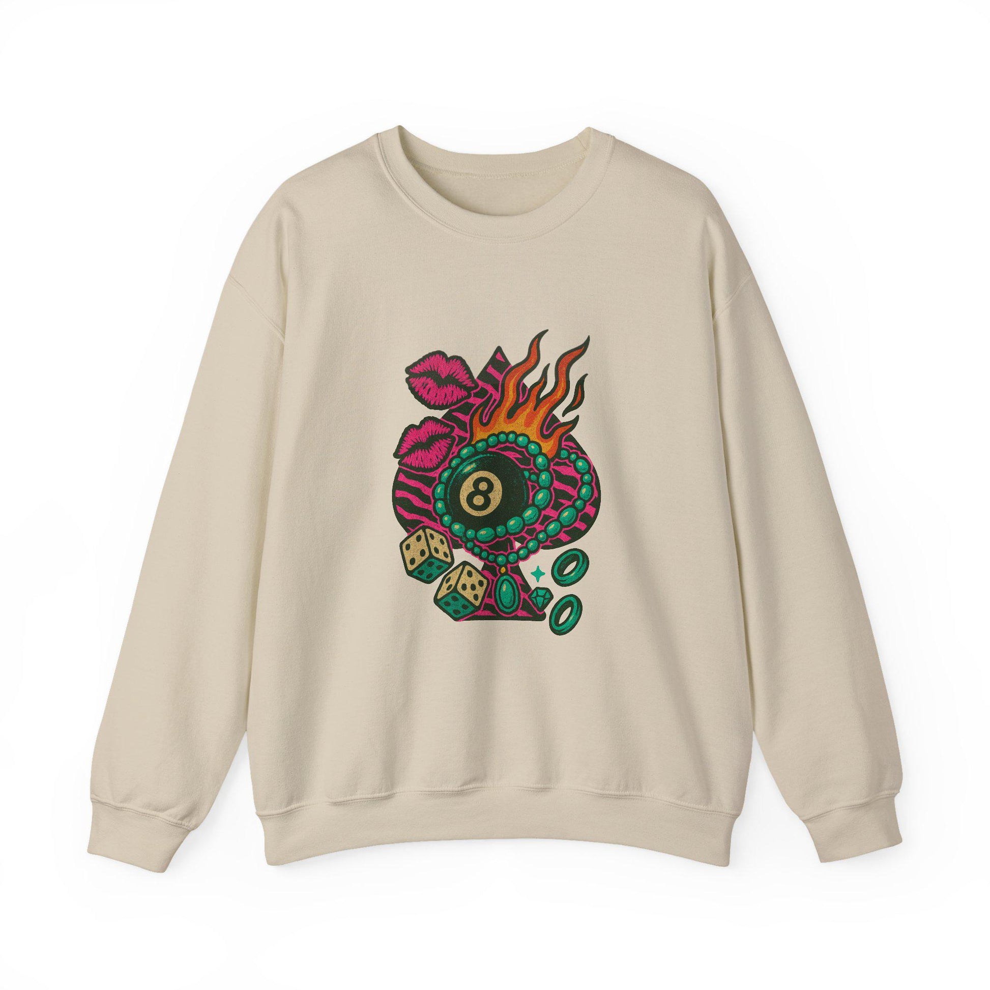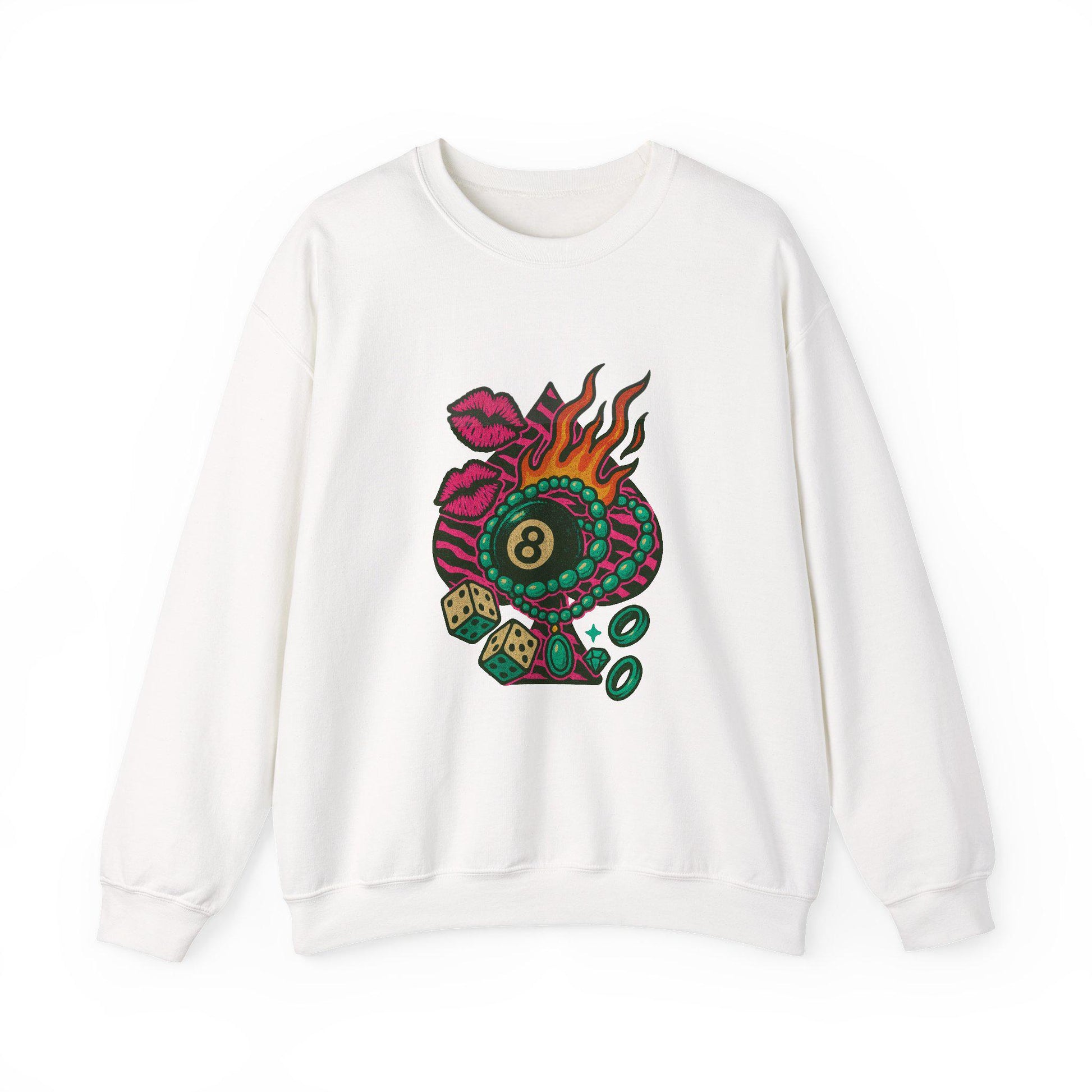 8Ball zebra print spade flaming dice turquoise pink kiss PNG graphic digital download for tshirt sublimation or dtf
