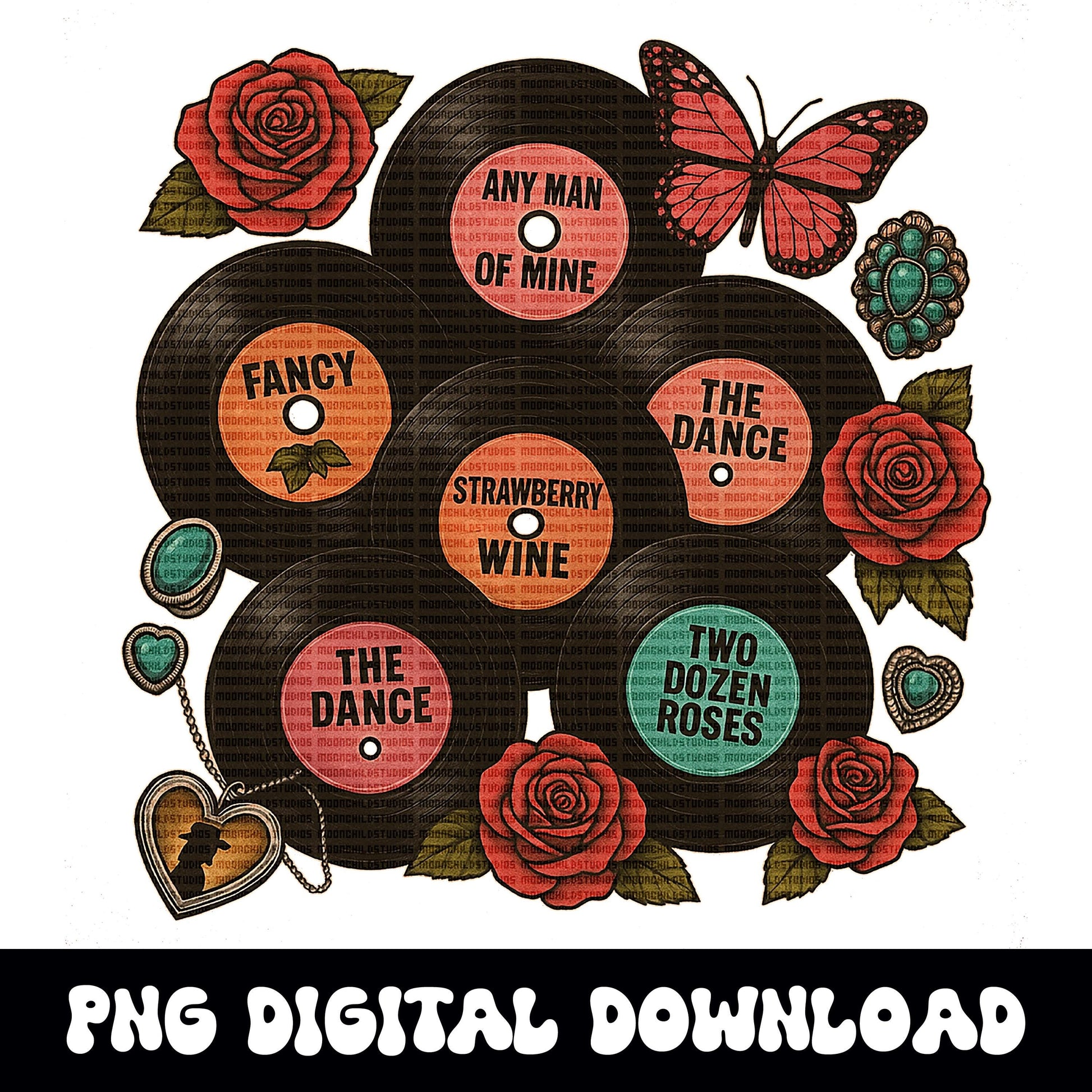 90s country music records western cowgirl butterfly turquoise png graphic digital download for tshirt sublimation or dtf