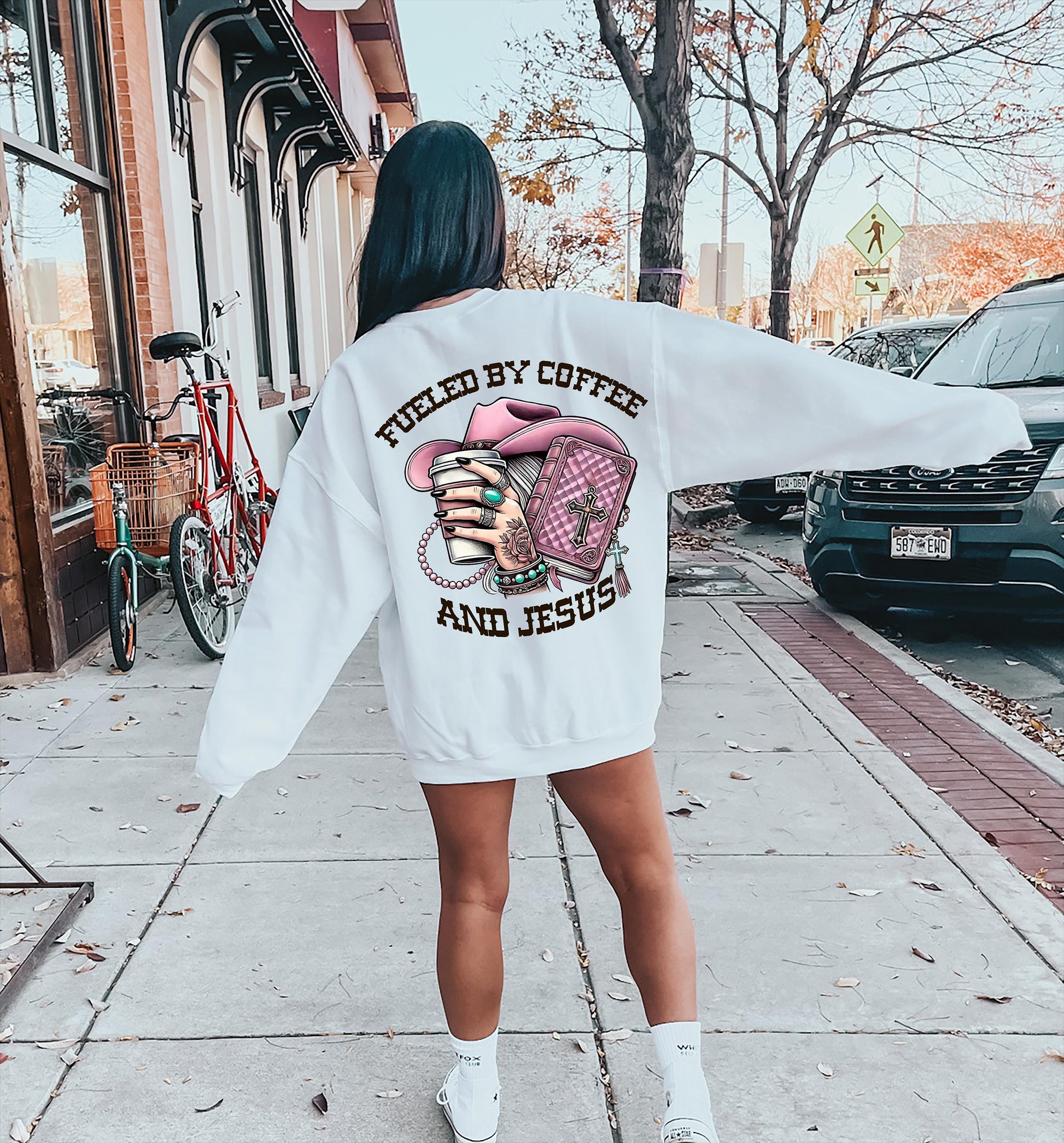 Christian Fueled by coffee and jesus western yallternative cowgirl png graphic digital download for sublimation or dtf