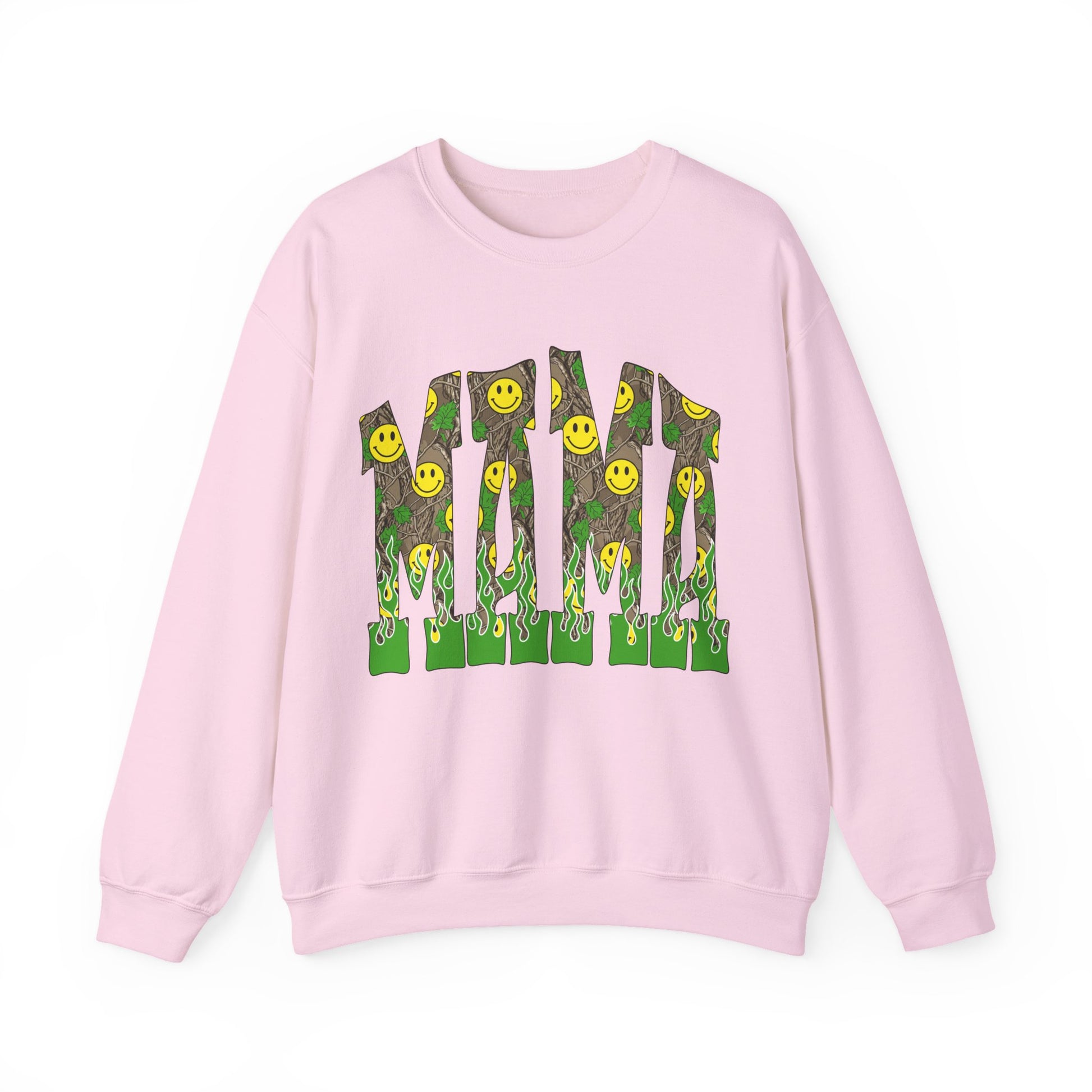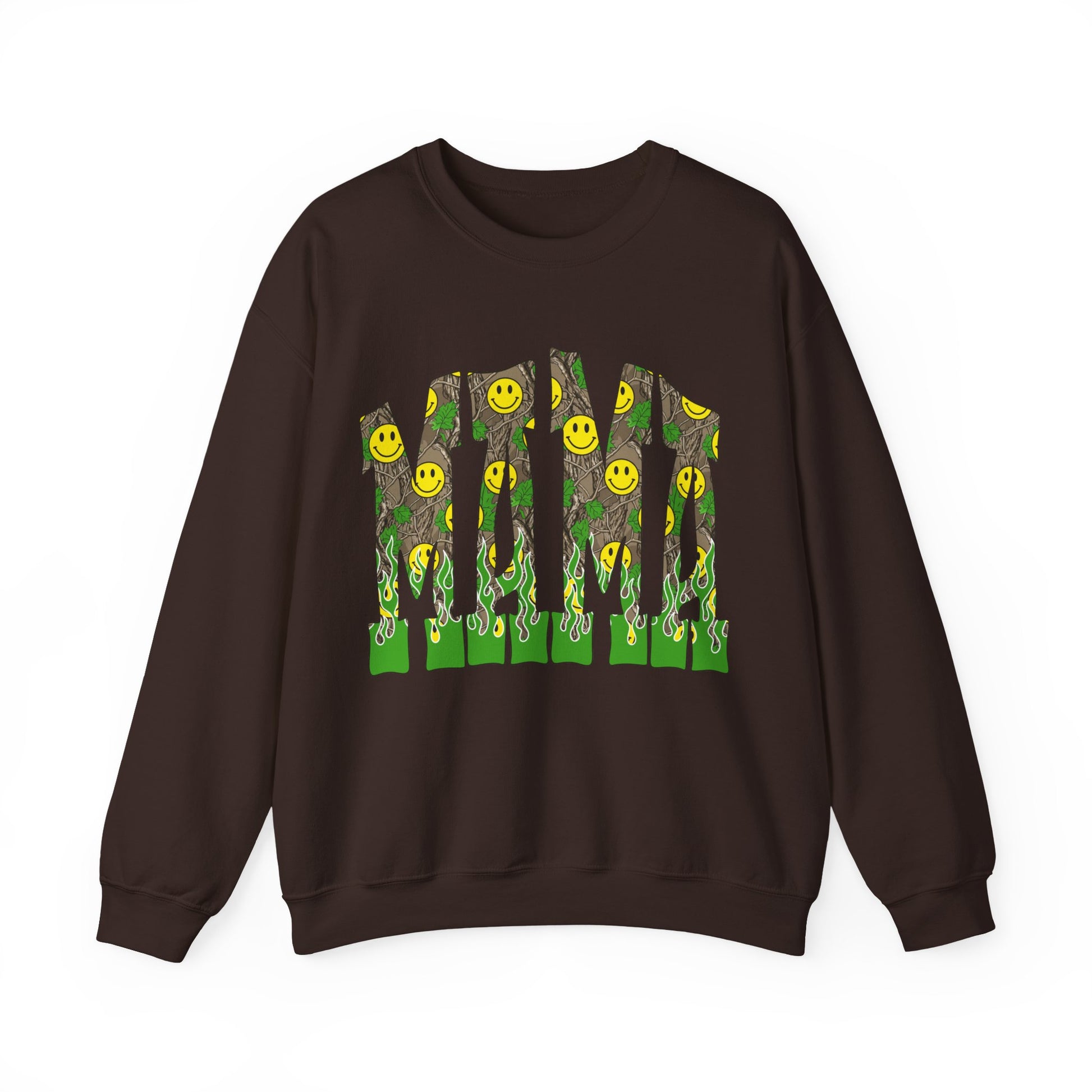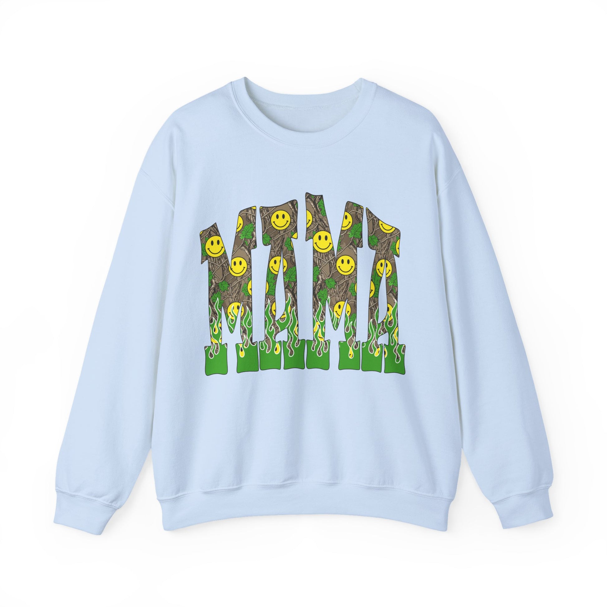 Crewneck Sweatshirt — Camo Smiley 'MAMA' Graphic