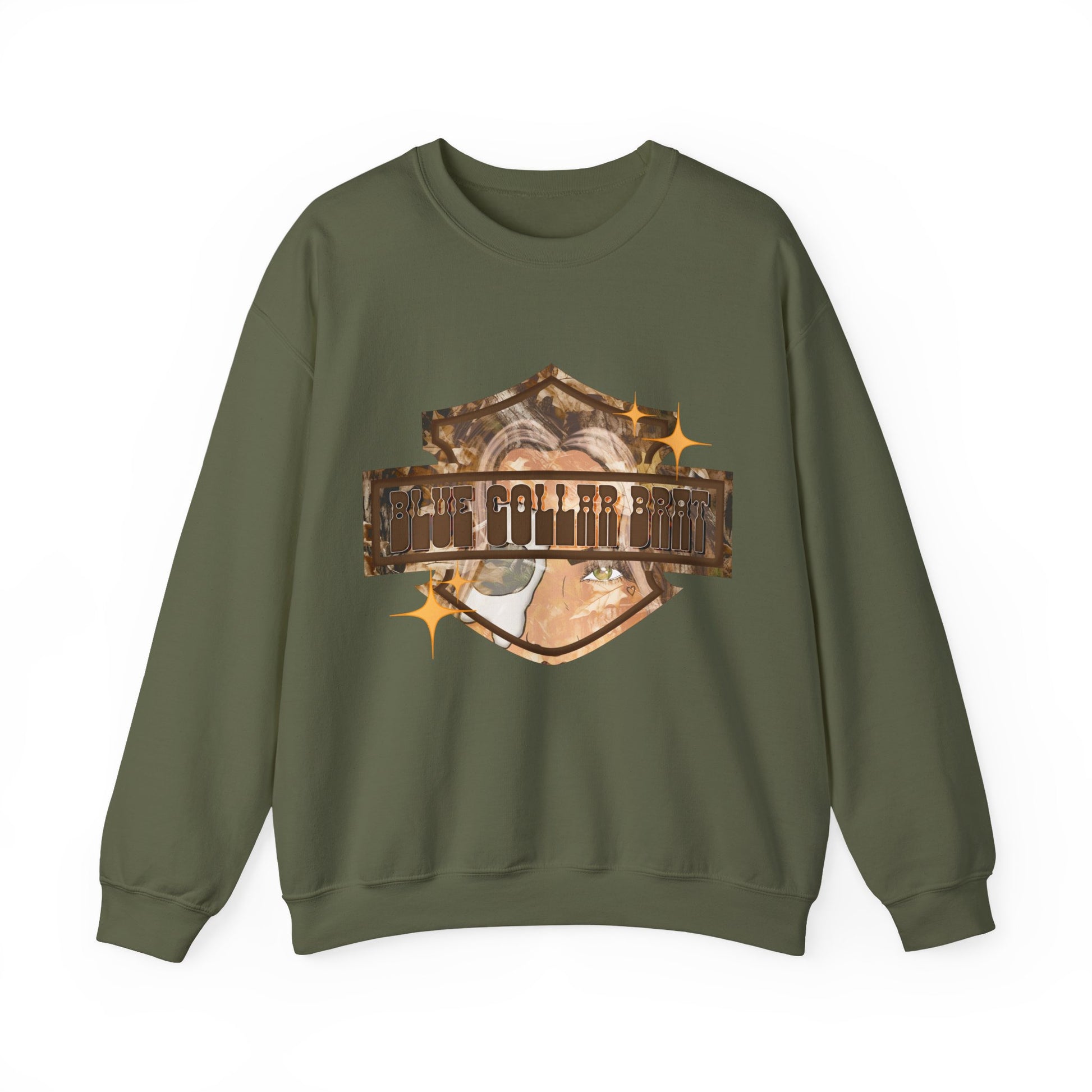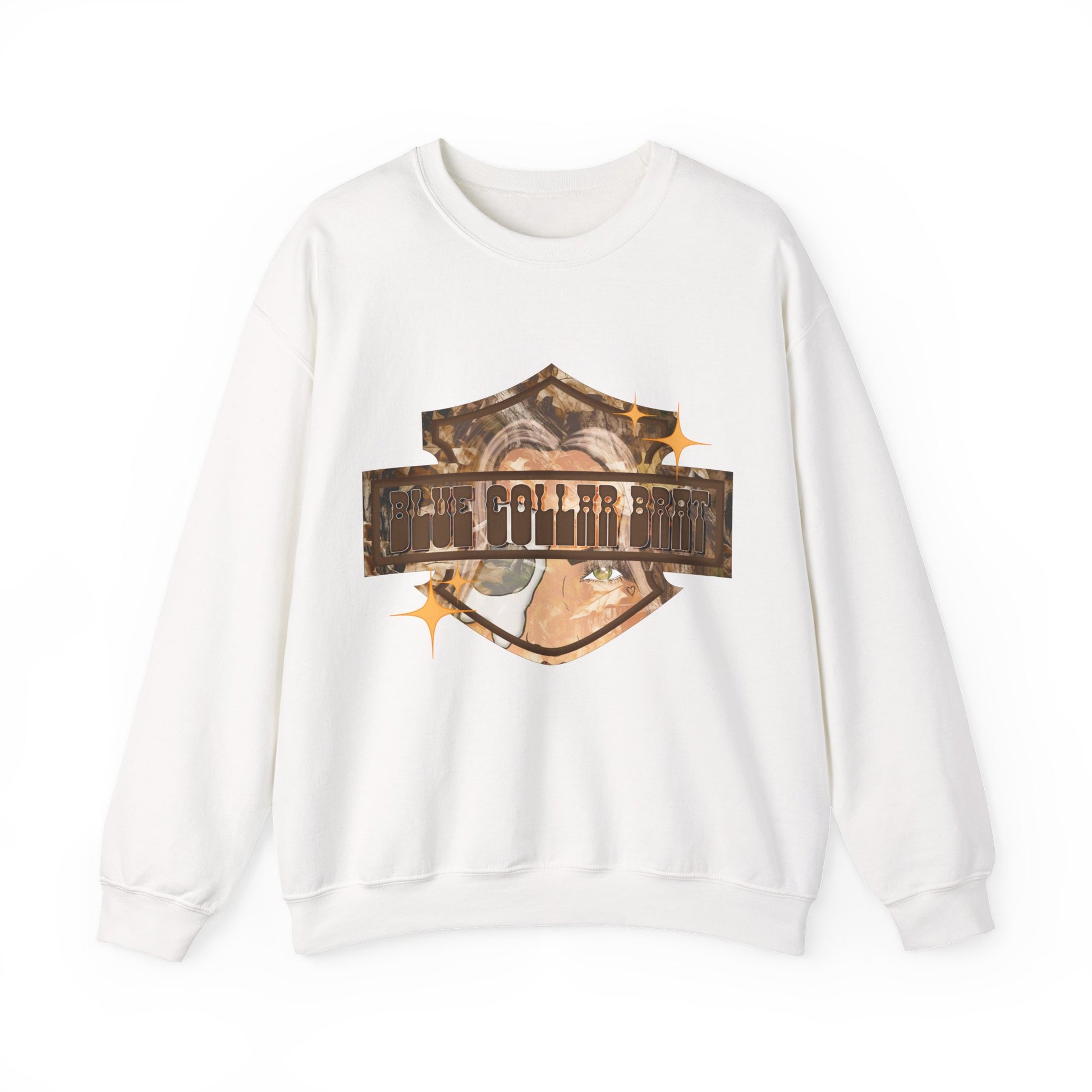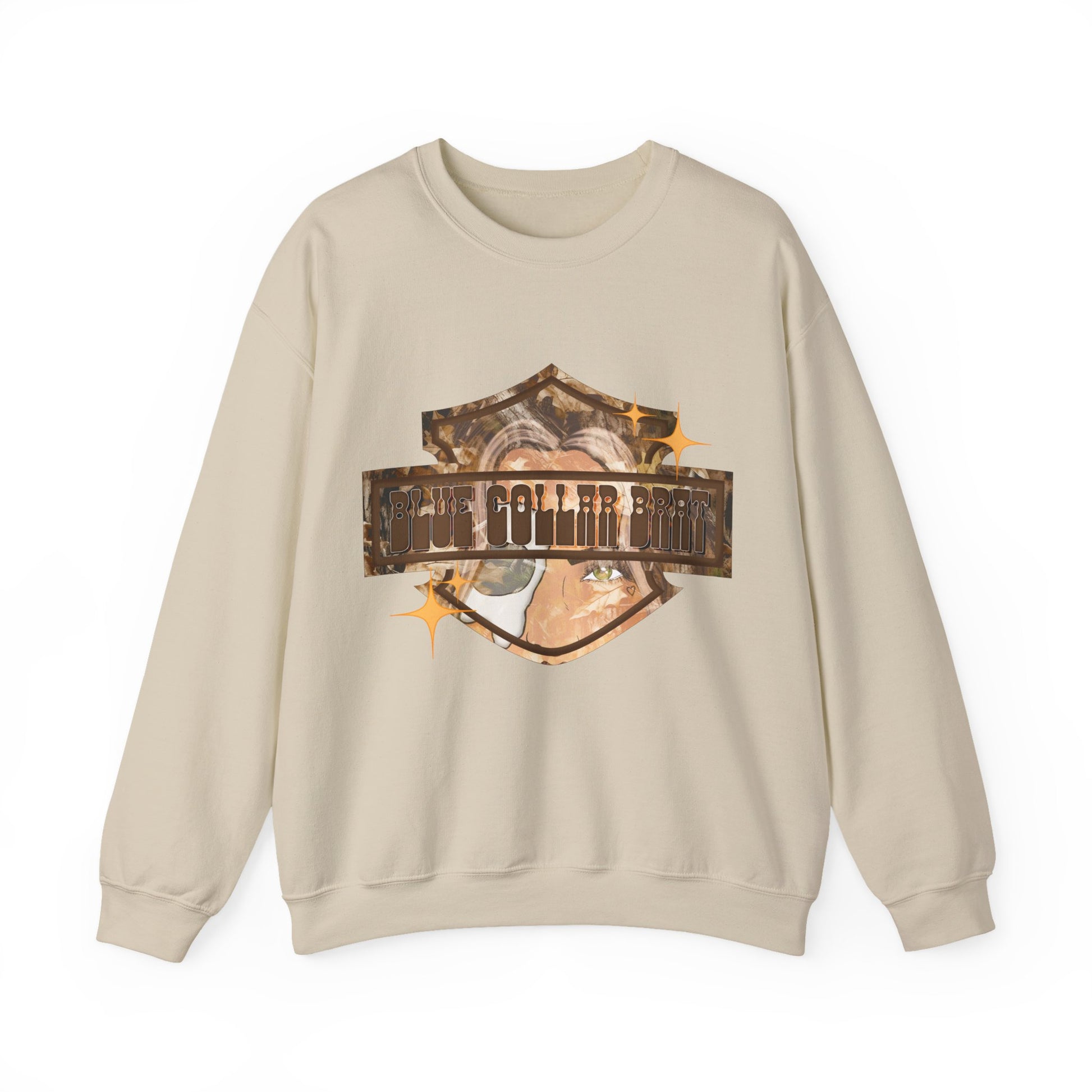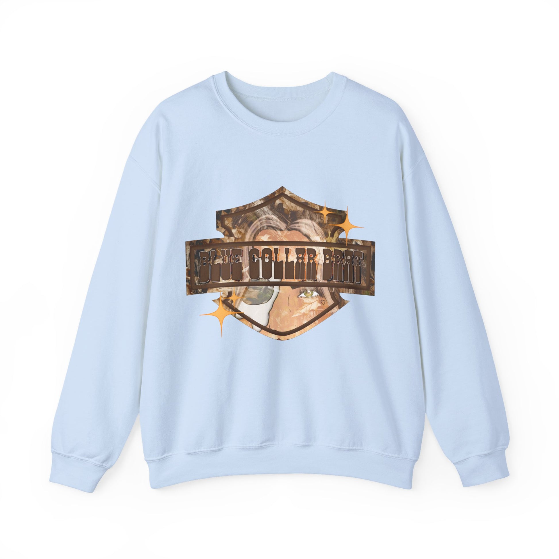 Crewneck Sweatshirt — Vintage Motorcycle "Blue Collar Brat" Graphic Tee