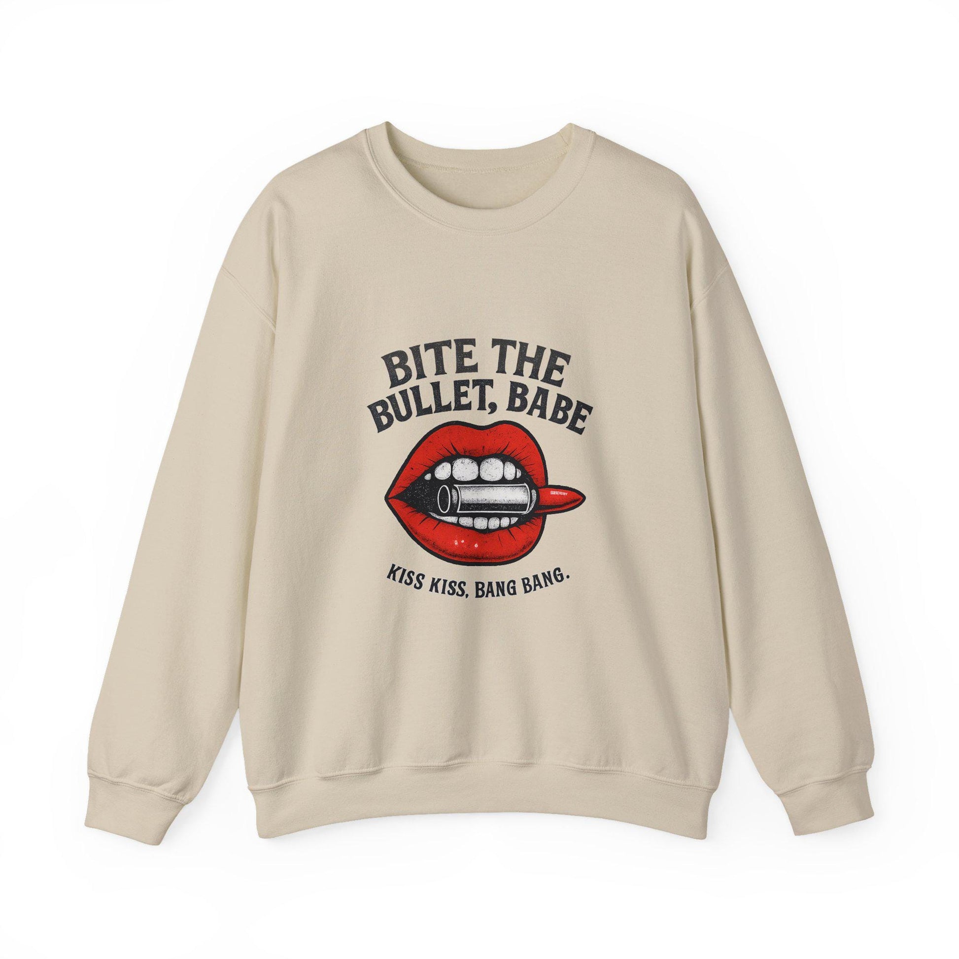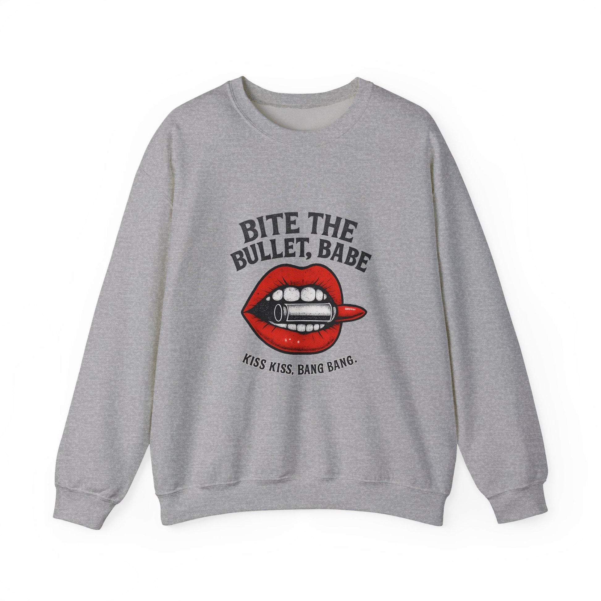 Edgy "Bite the bullet, babe. kiss kiss bang bang" lip bullet lipstick PNG graphic INSTANT digital download for tshirt sublimation or dtf