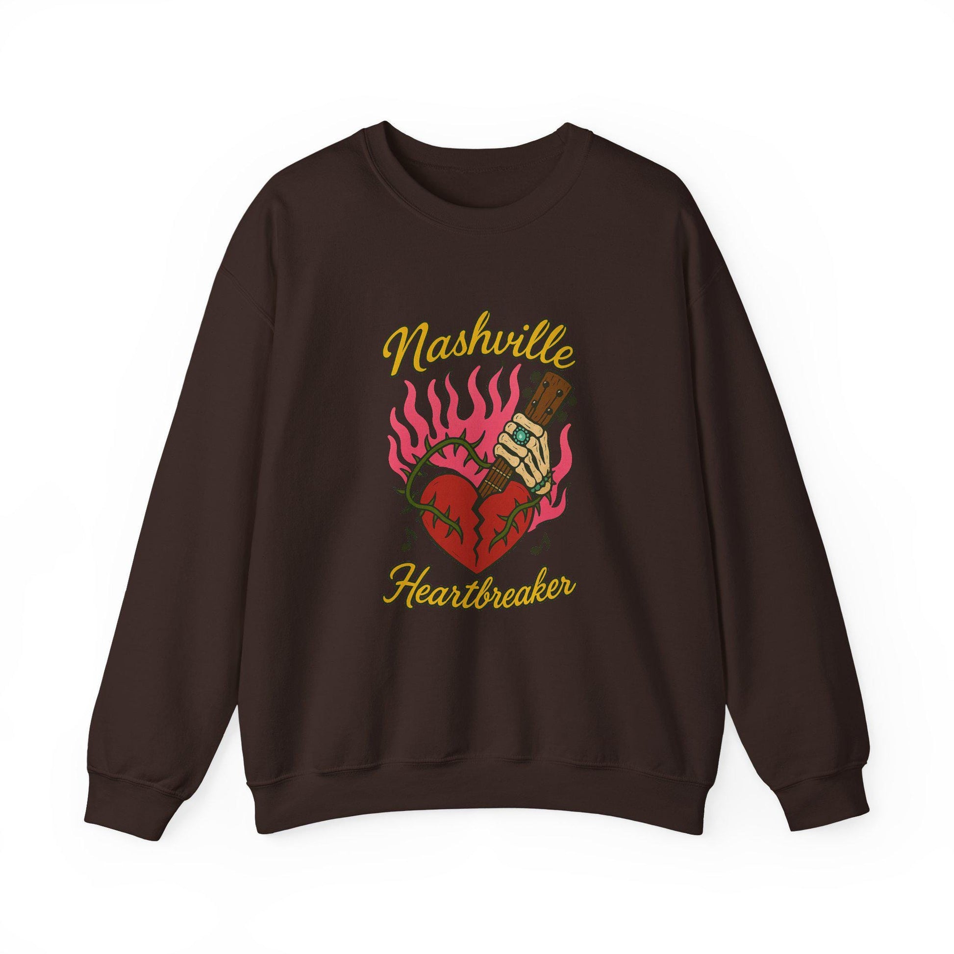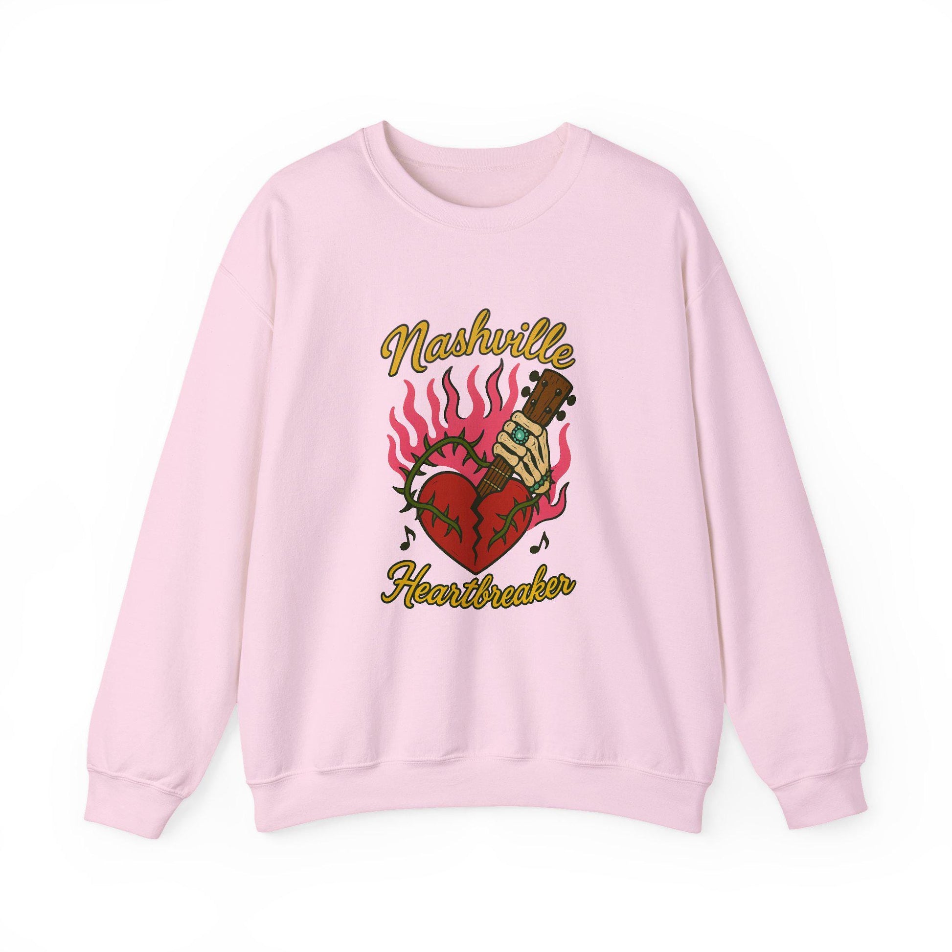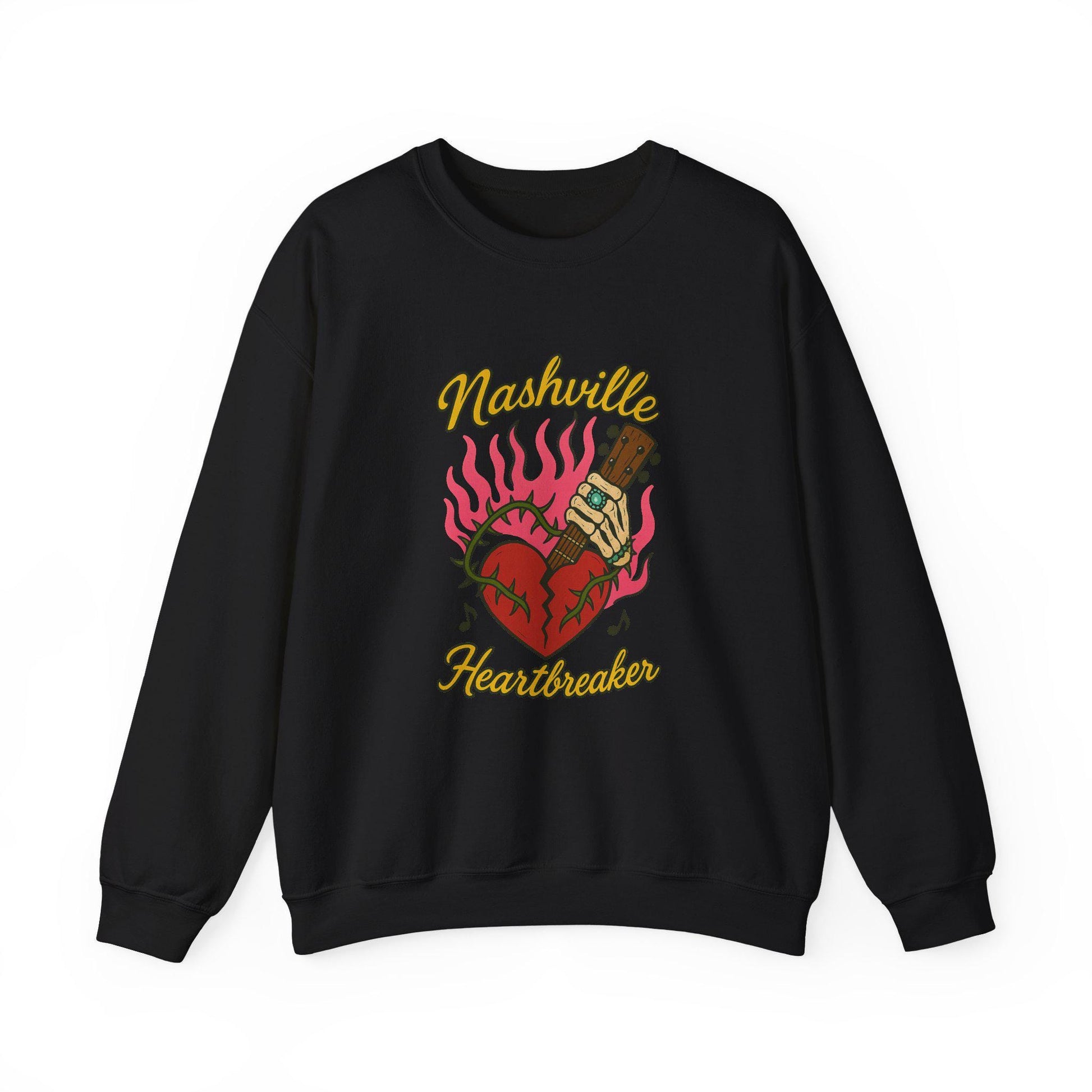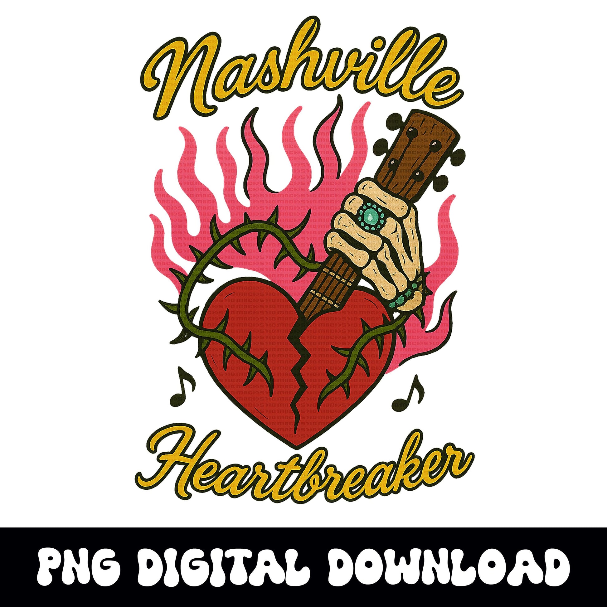 Edgy Nashville heartbreaker skeleton flaming broken heart png graphic digital download for tshirt sublimation or dtf