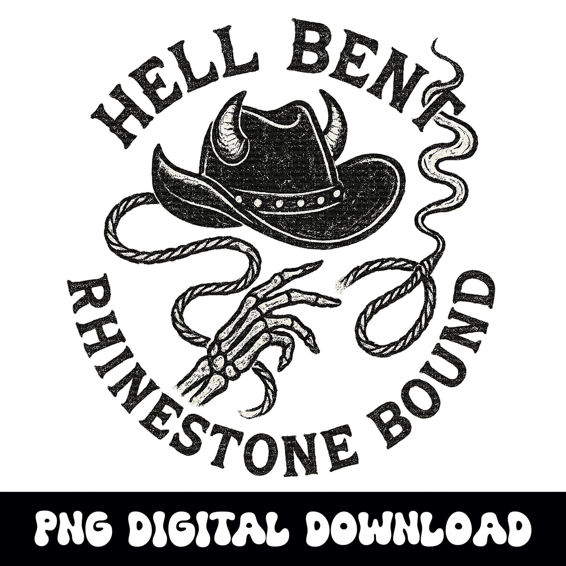 Edgy Western hell bent rhinestone bound cowgirl hat skeleton lasso smoke png graphic INSTANT digital download for tshirt sublimation or dtf