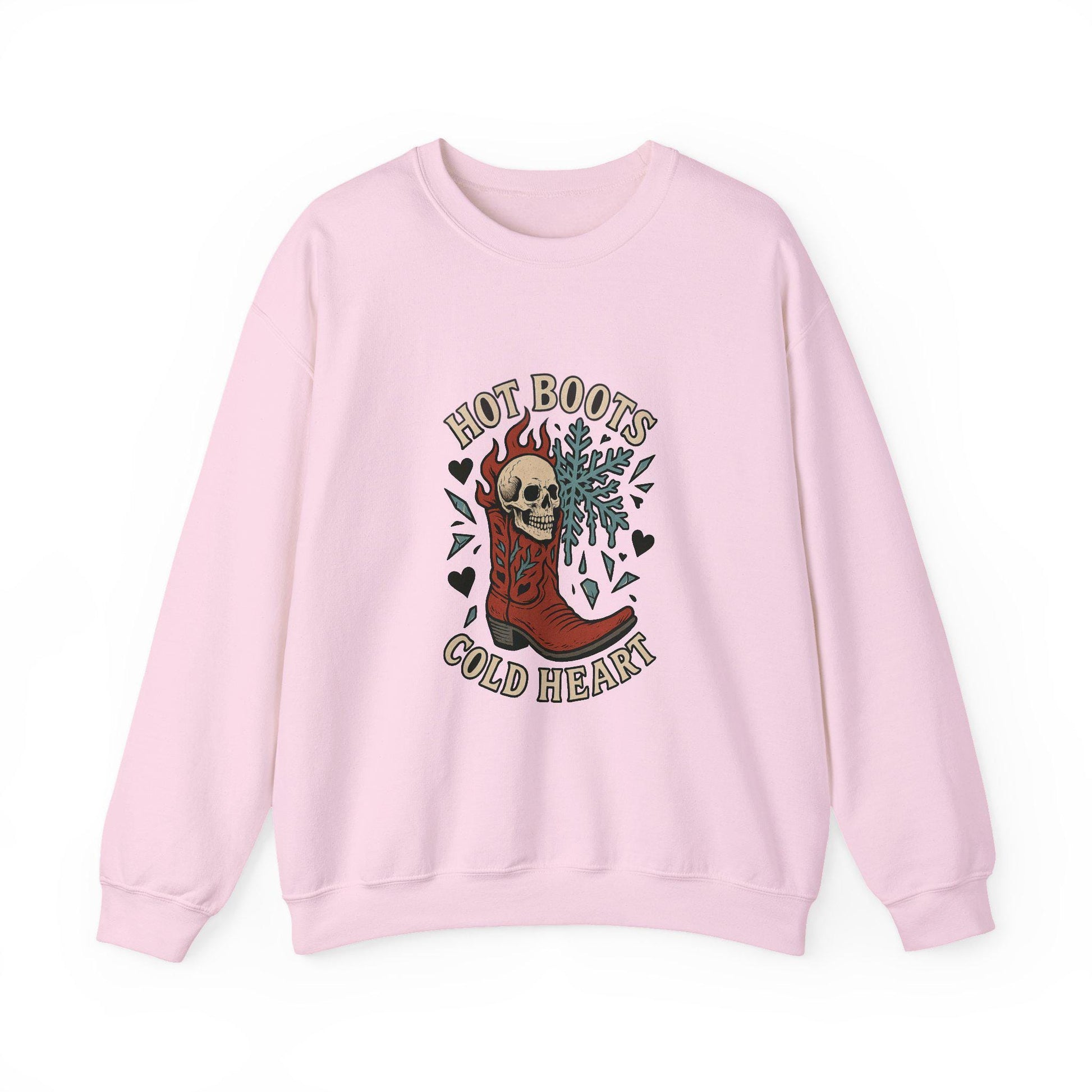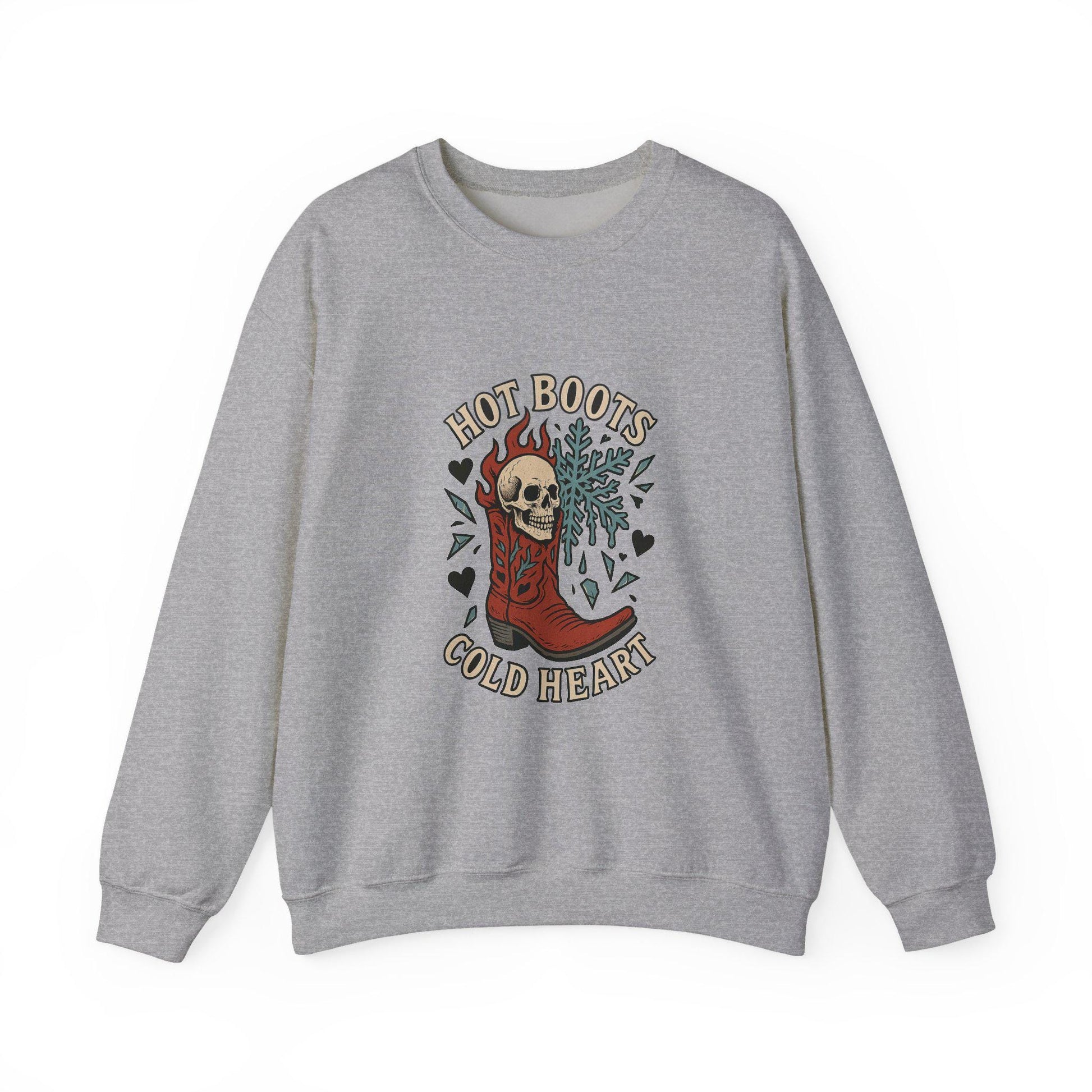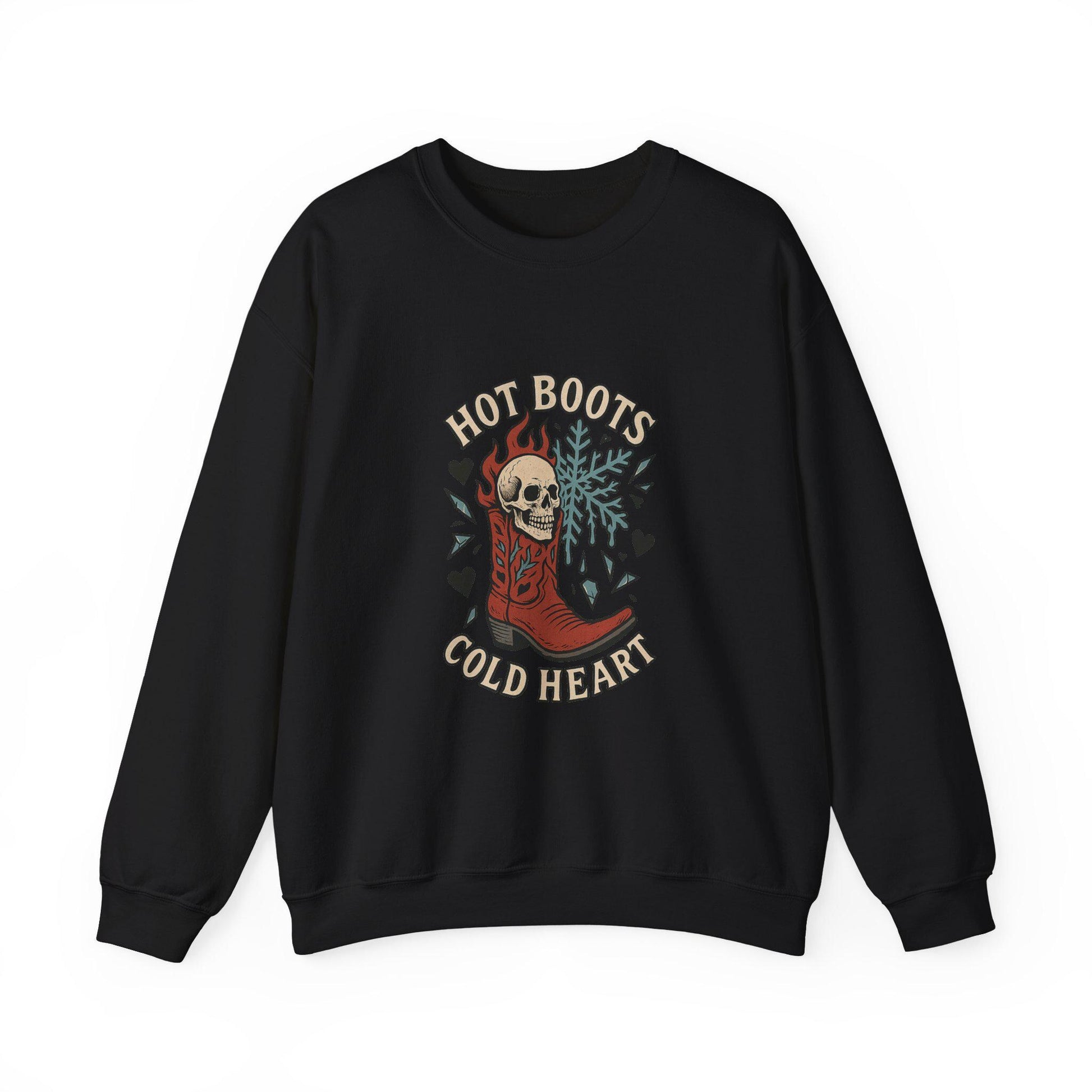 Edgy Western "Hot boots, cold heart" skull cowgirl boot snowflake PNG graphic INSTANT digital download for tshirt sublimation or dtf