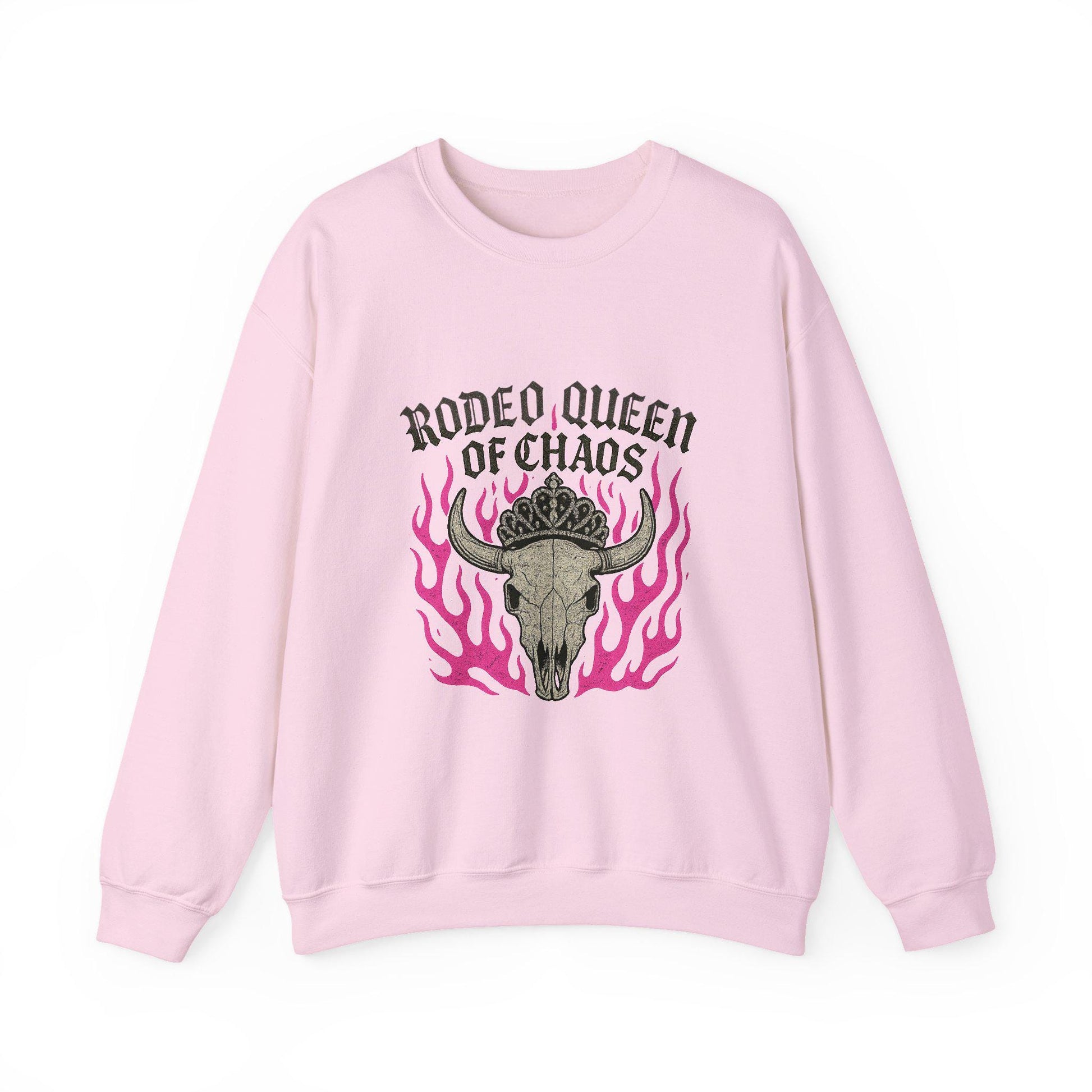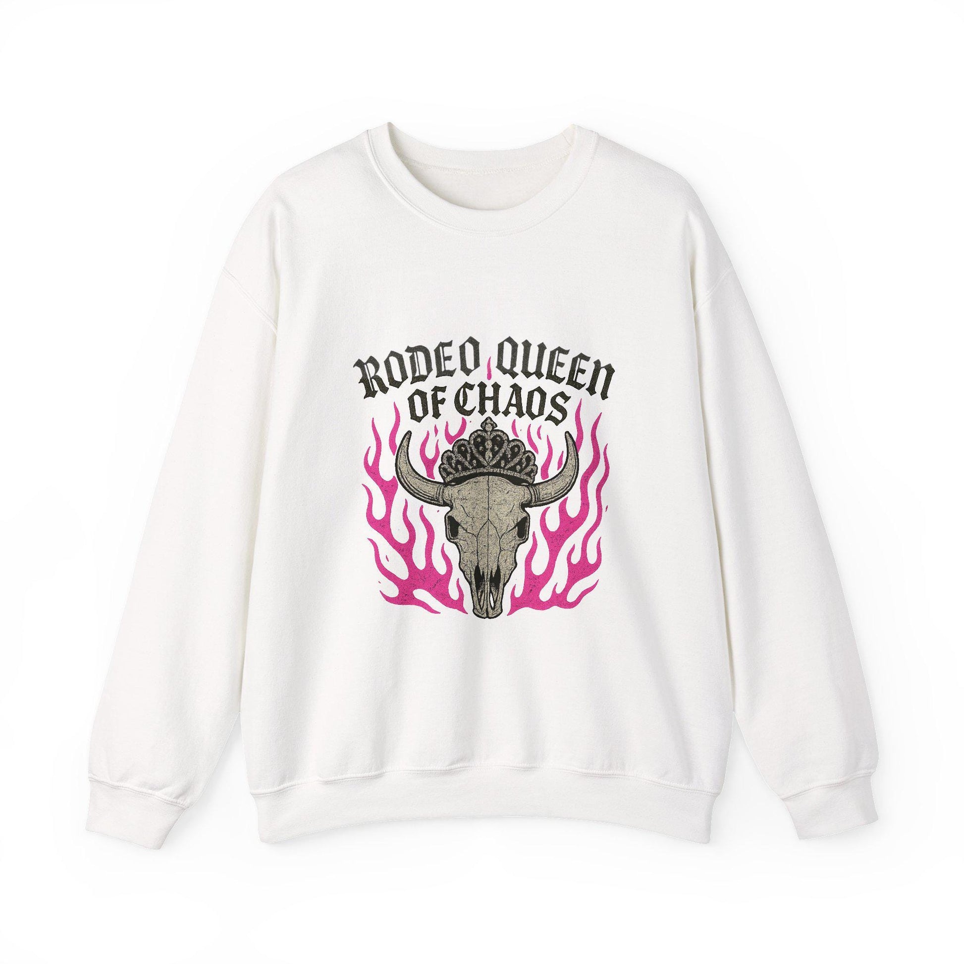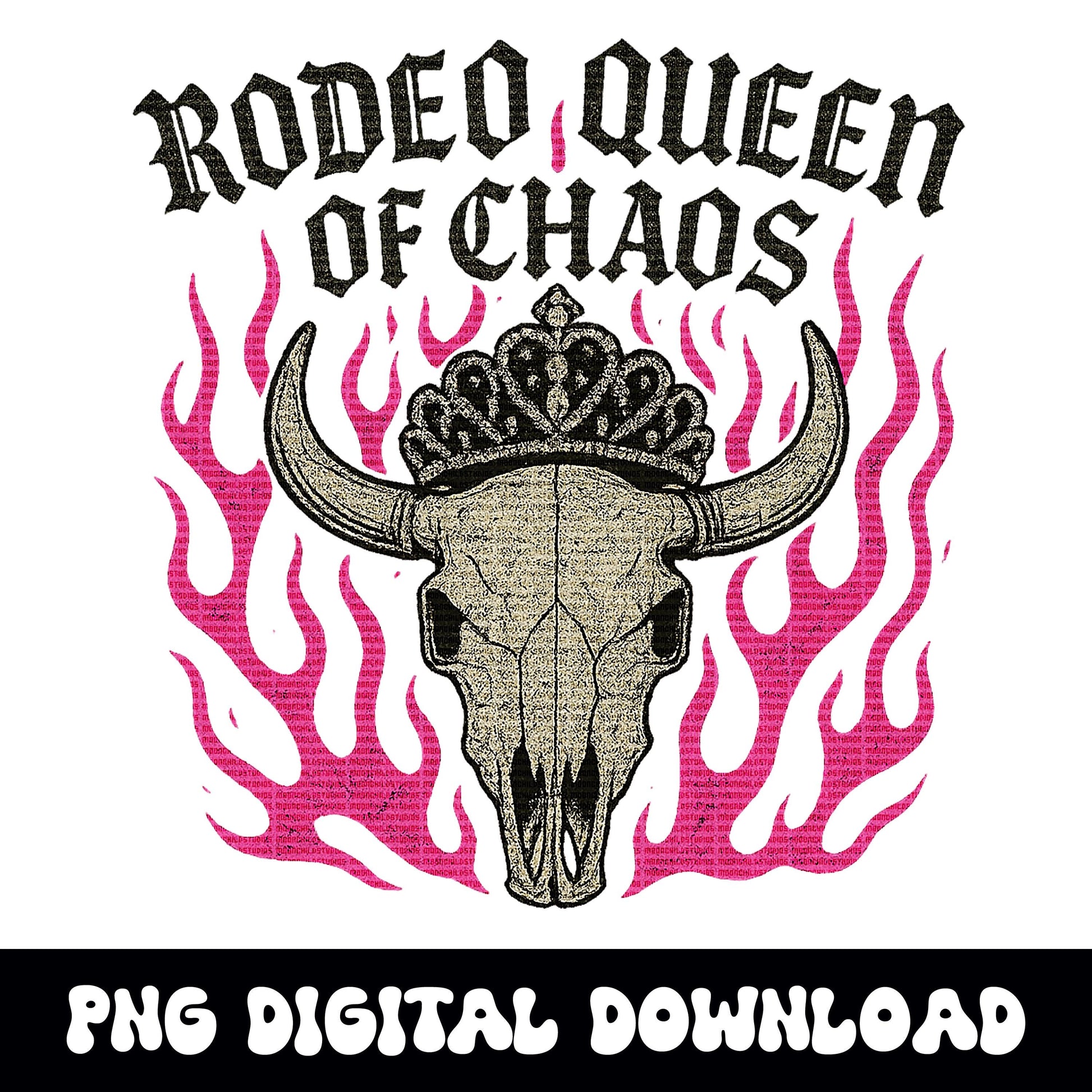 Edgy western "rodeo queen of chaos" flaming crowned bull skull PNG graphic INSTANT digital download for tshirt sublimation or dtf