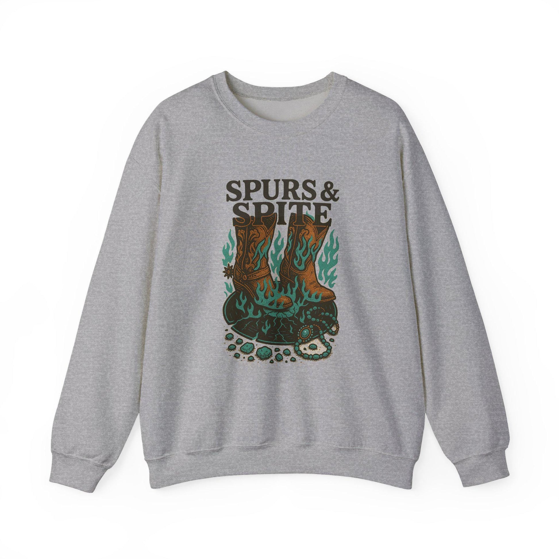 Edgy Western "spurs & spite" cowgirl boots broken record flame turquoise png graphic digital download for tshirt sublimation or dtf