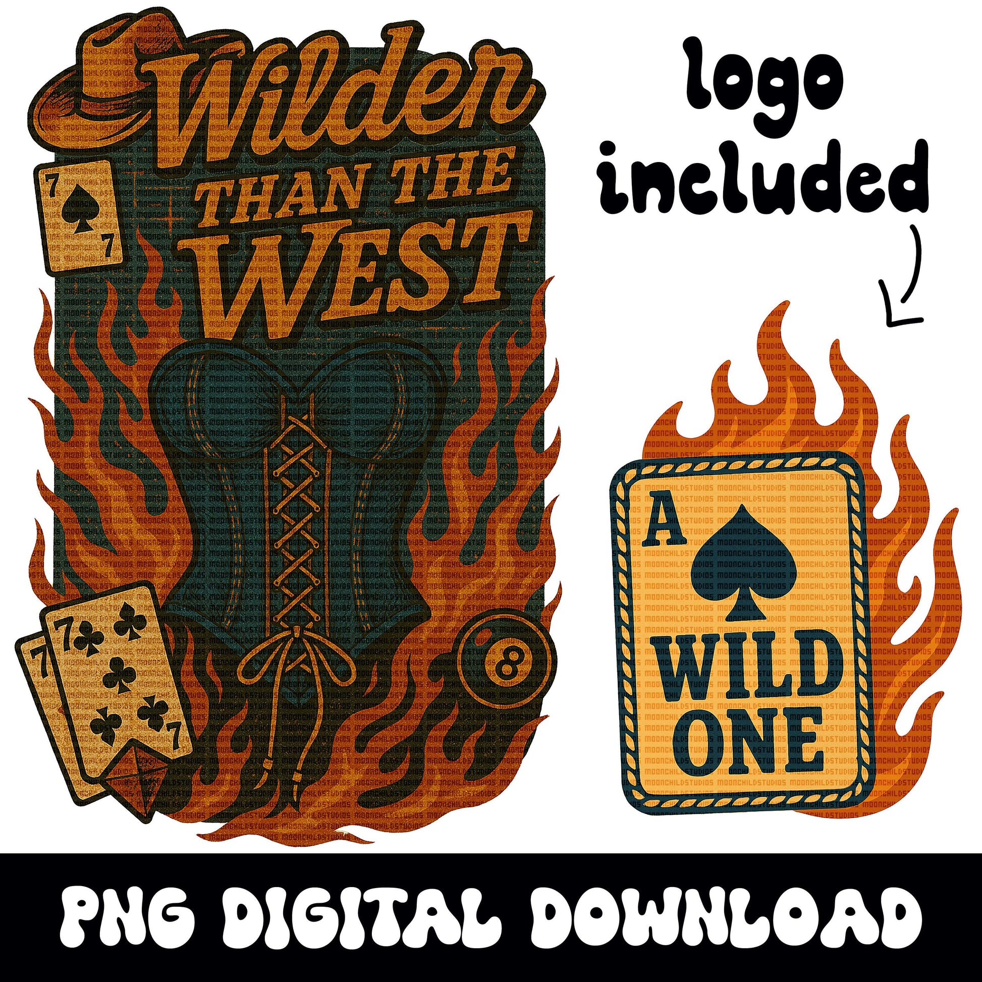 Edgy western "Wilder than the west" cowgirl corset top spade card 8ball png graphic digital download for tshirt sublimation and dtf