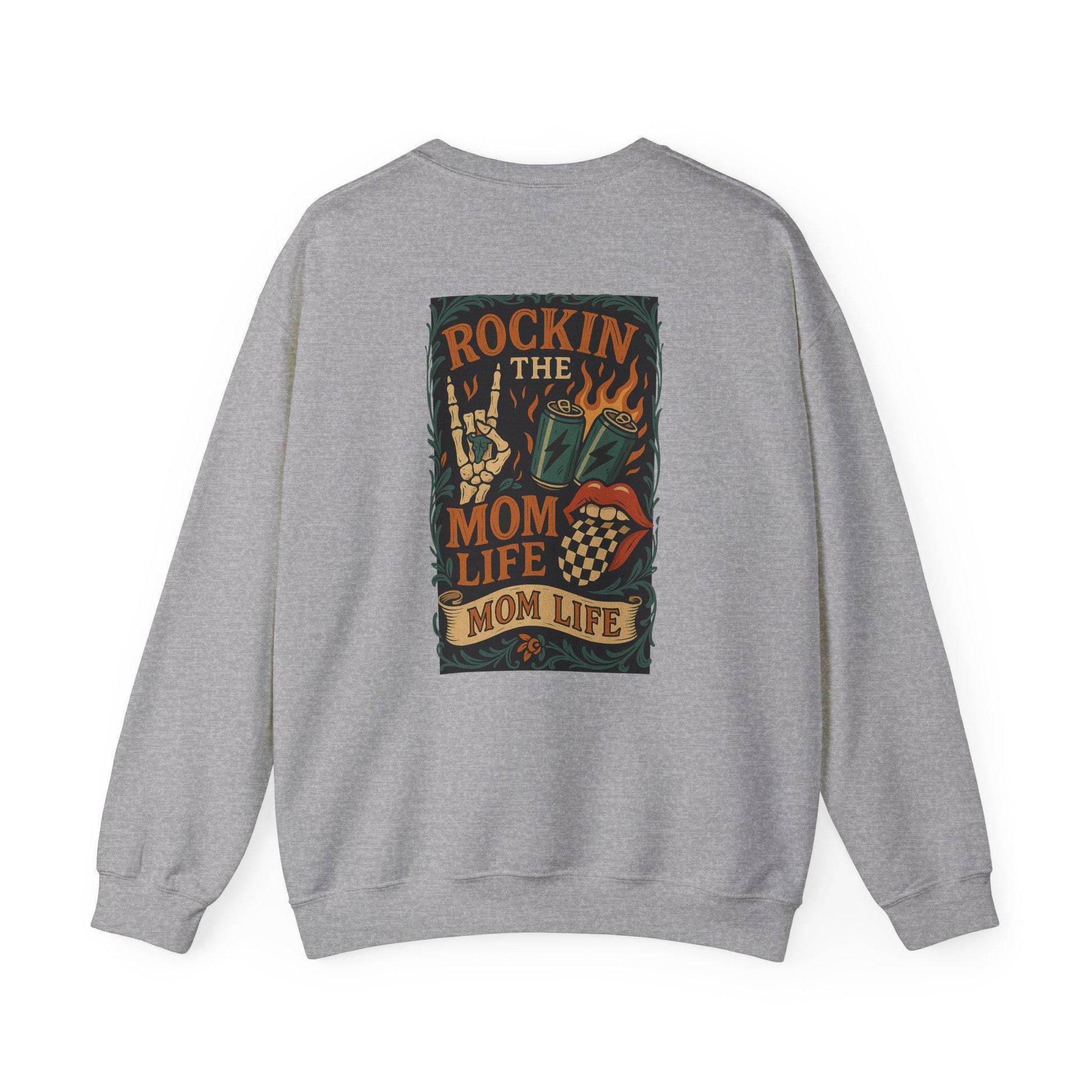 Edgy yallternative mama "rockin the mom life" skeleton mouth tongue flaming design png graphic digital download for sublimation or dtf