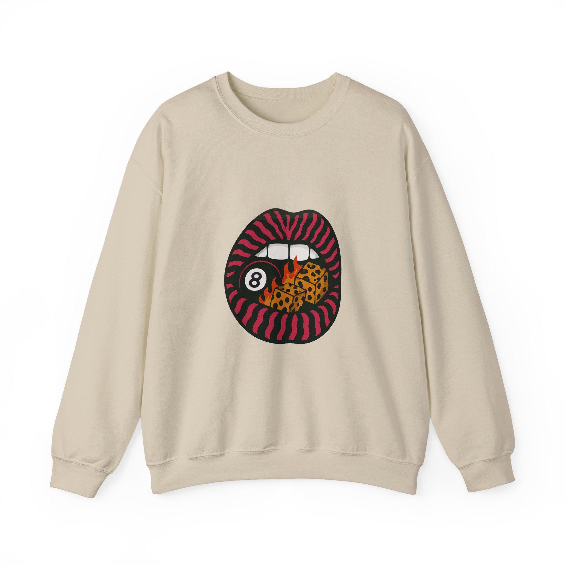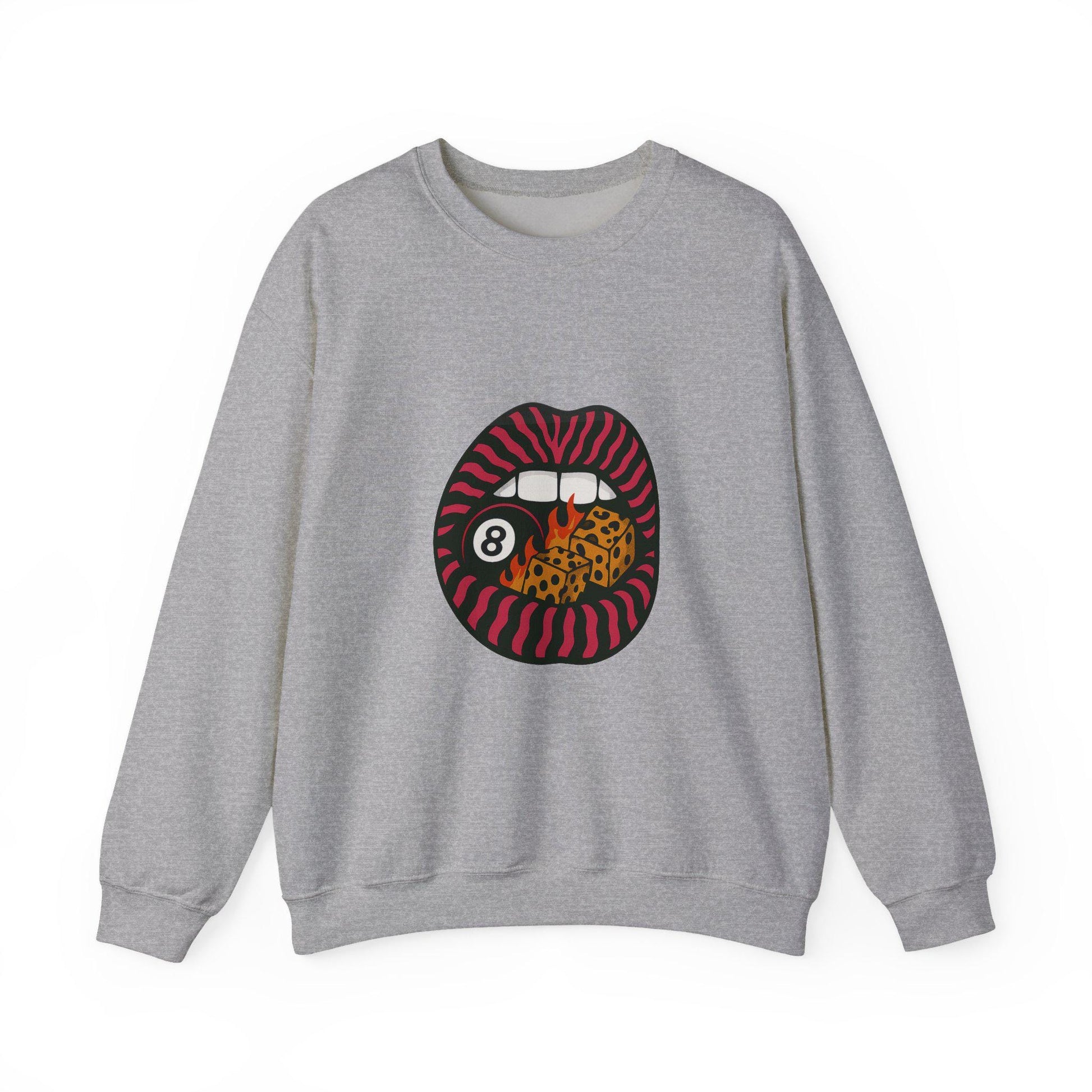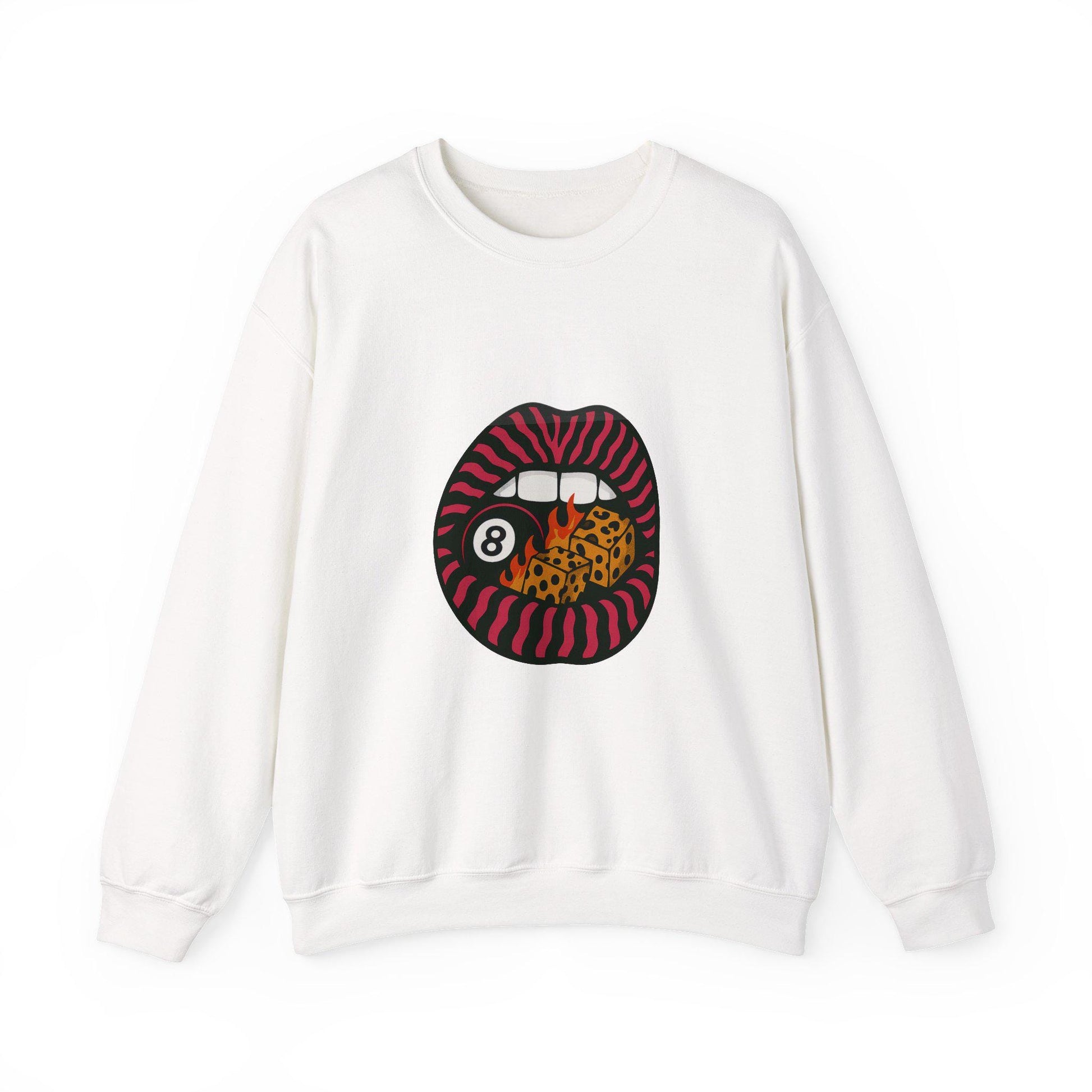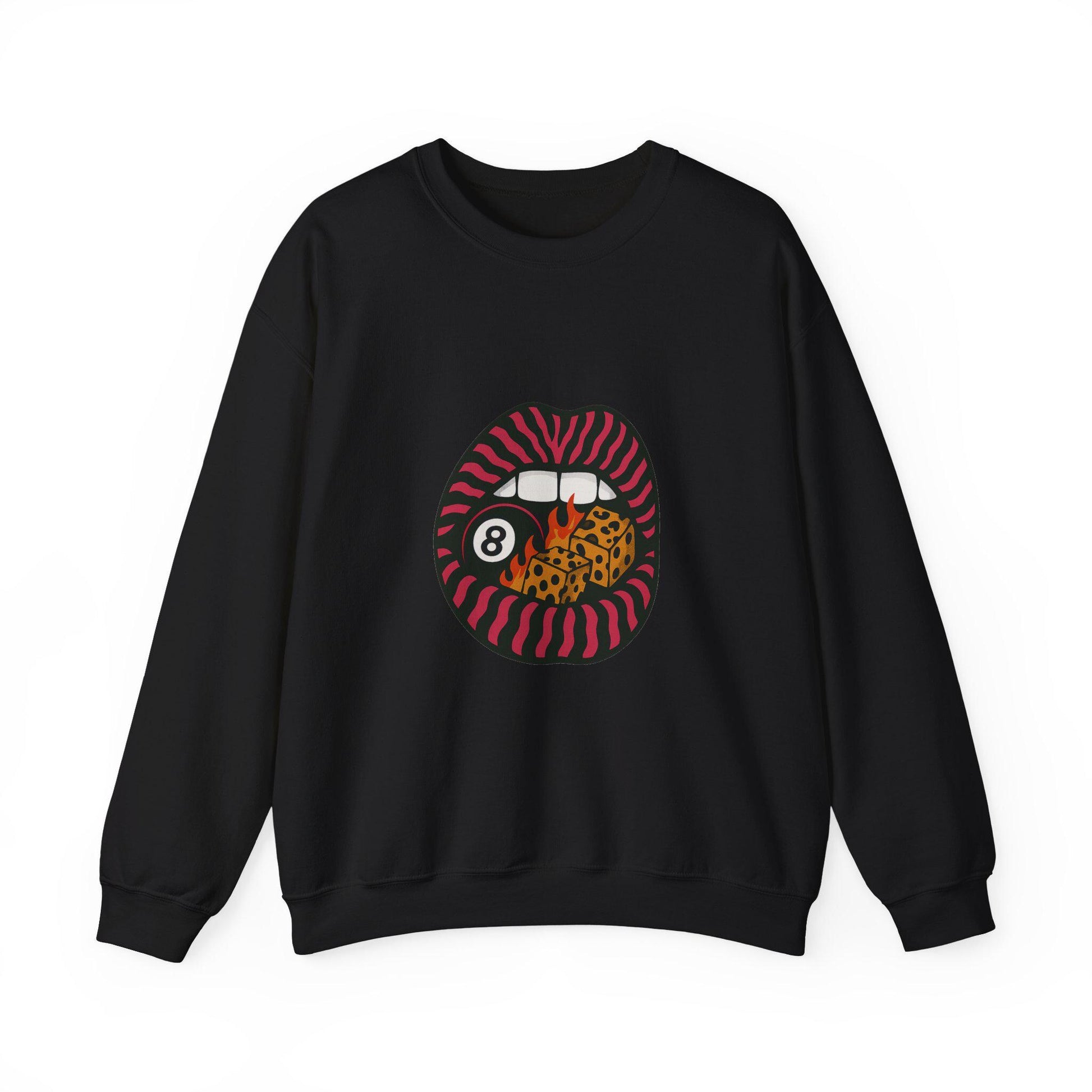 Edgy zebra print mouth with 8ball flames and cheetah print dice PNG graphic INSTANT digital download for tshirt sublimation or dtf