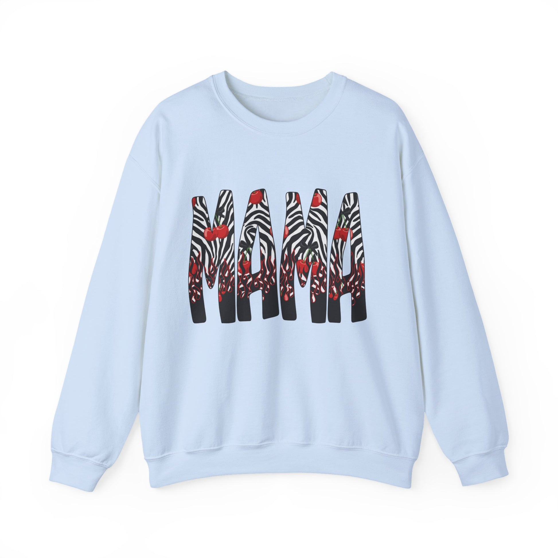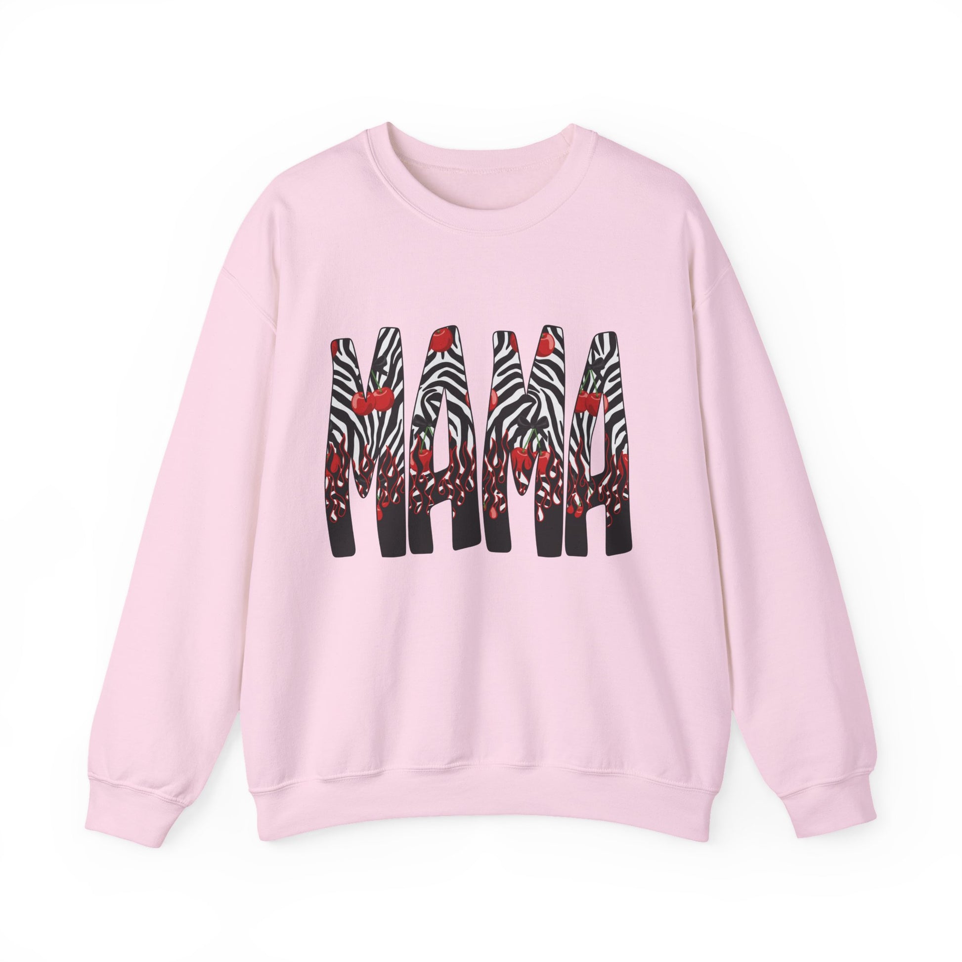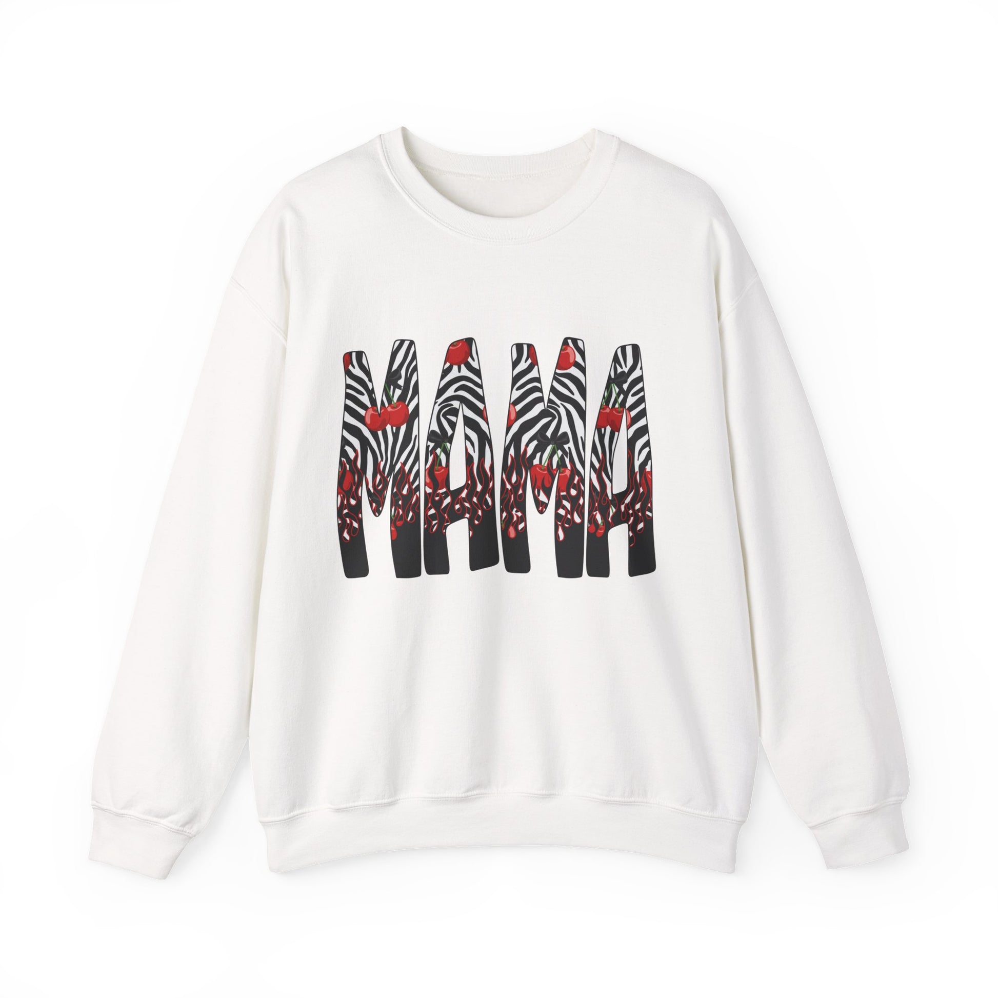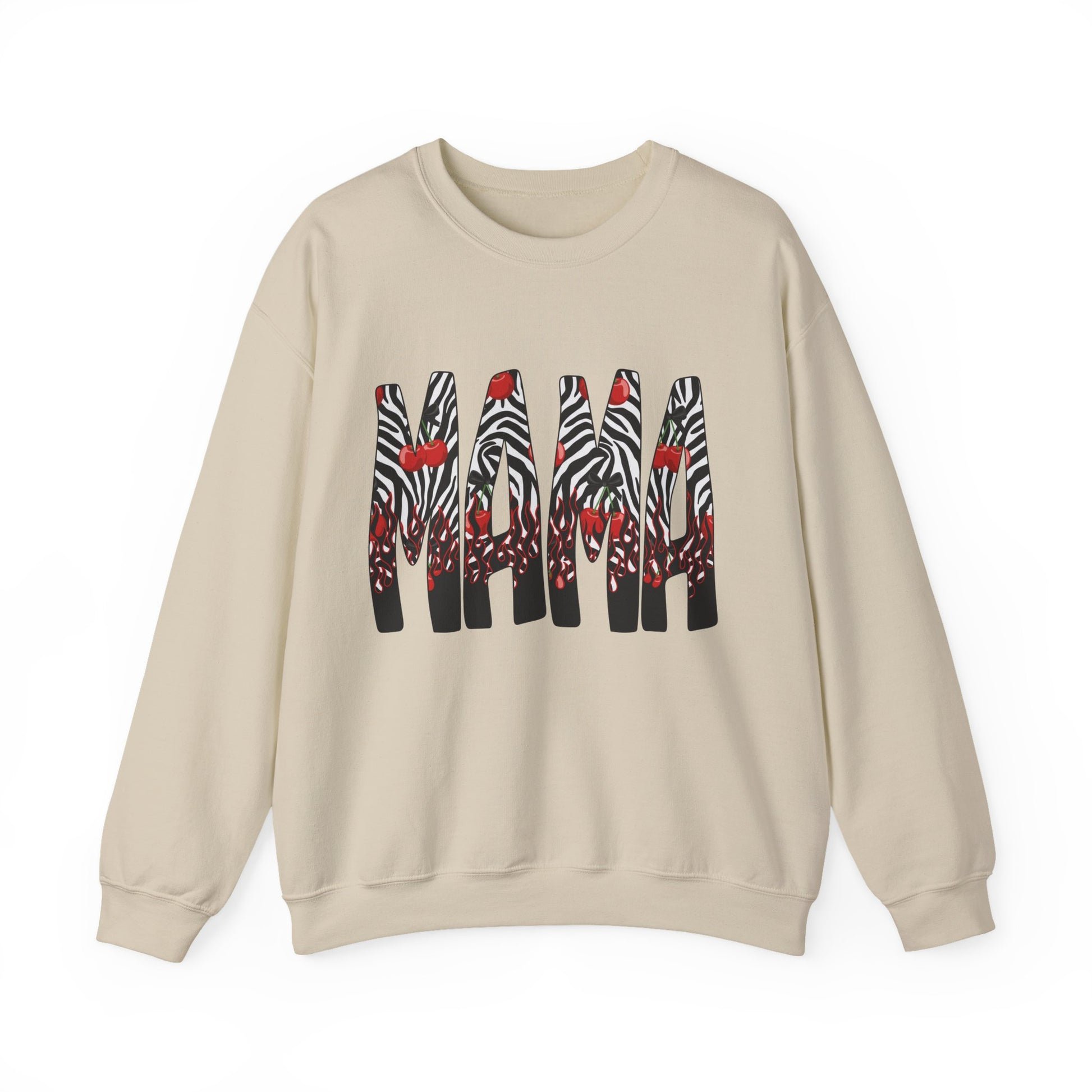 Mama Zebra Print Crewneck Sweatshirt — Bold Animal Print Mom Sweater