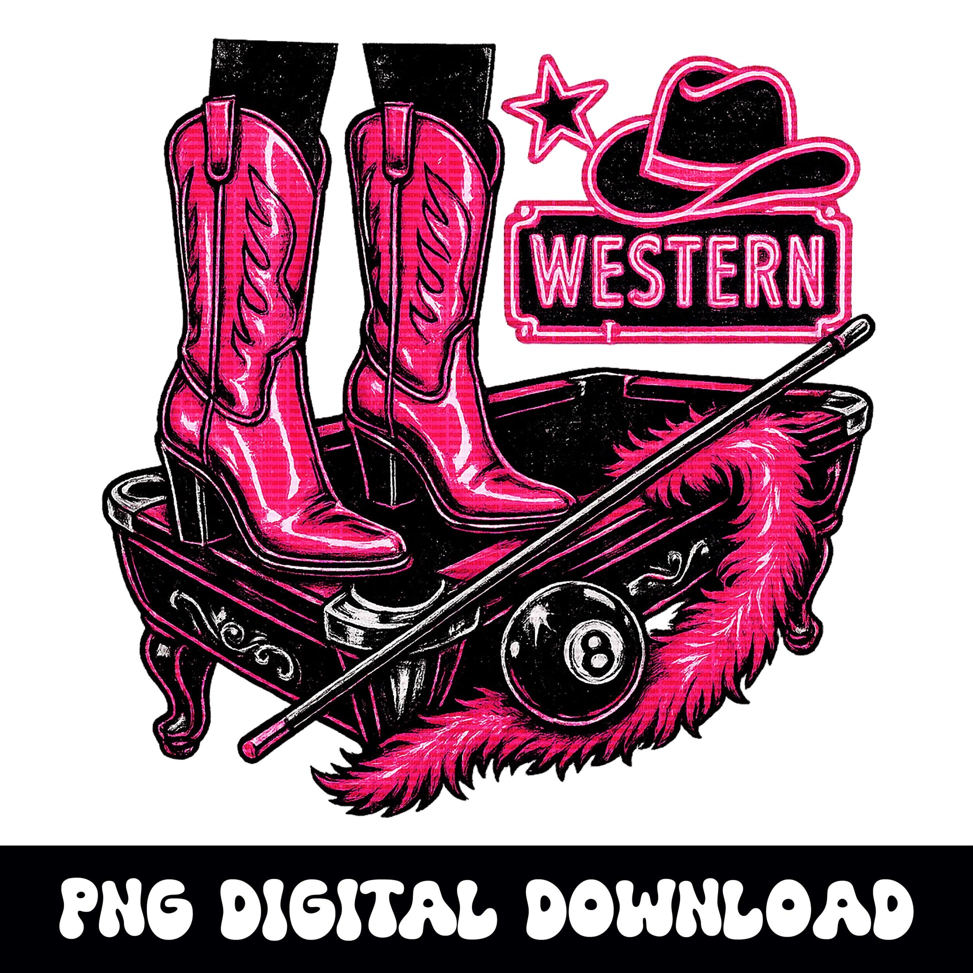 Pink punchy glam Western bar pool table cowgirl 8ball png graphic digital download for tshirt sublimation or dtf