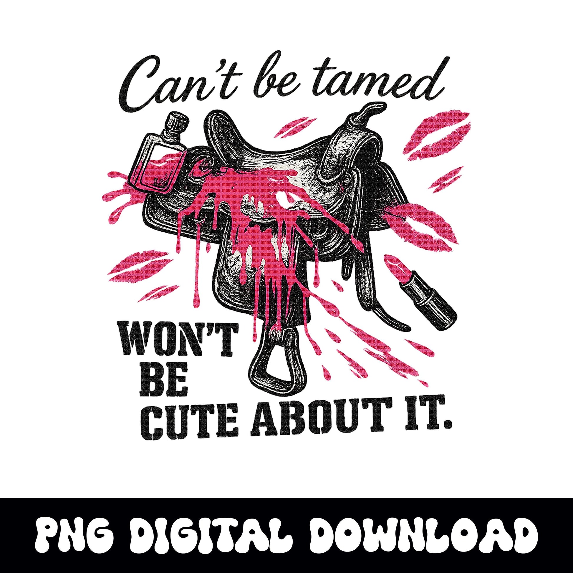 Pink Western "cant be tamed" pink lipstick saddle cowgirl PNG graphic INSTANT digital download for tshirt sublimation or dtf