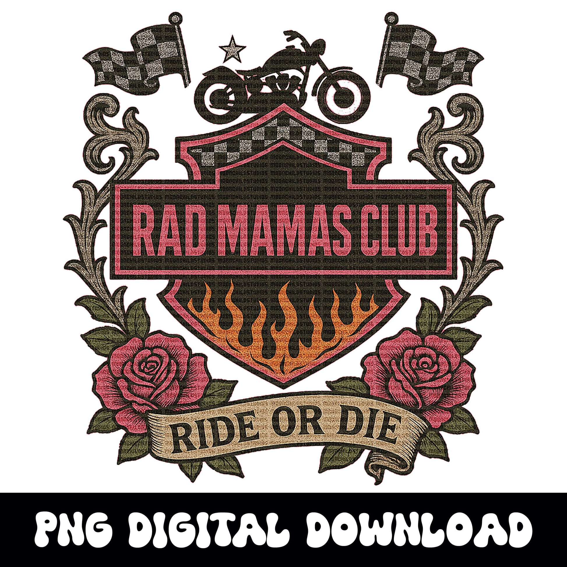 Rad mamas club biker checkered edgy rose png graphic digital download for tshirt sublimation or dtf
