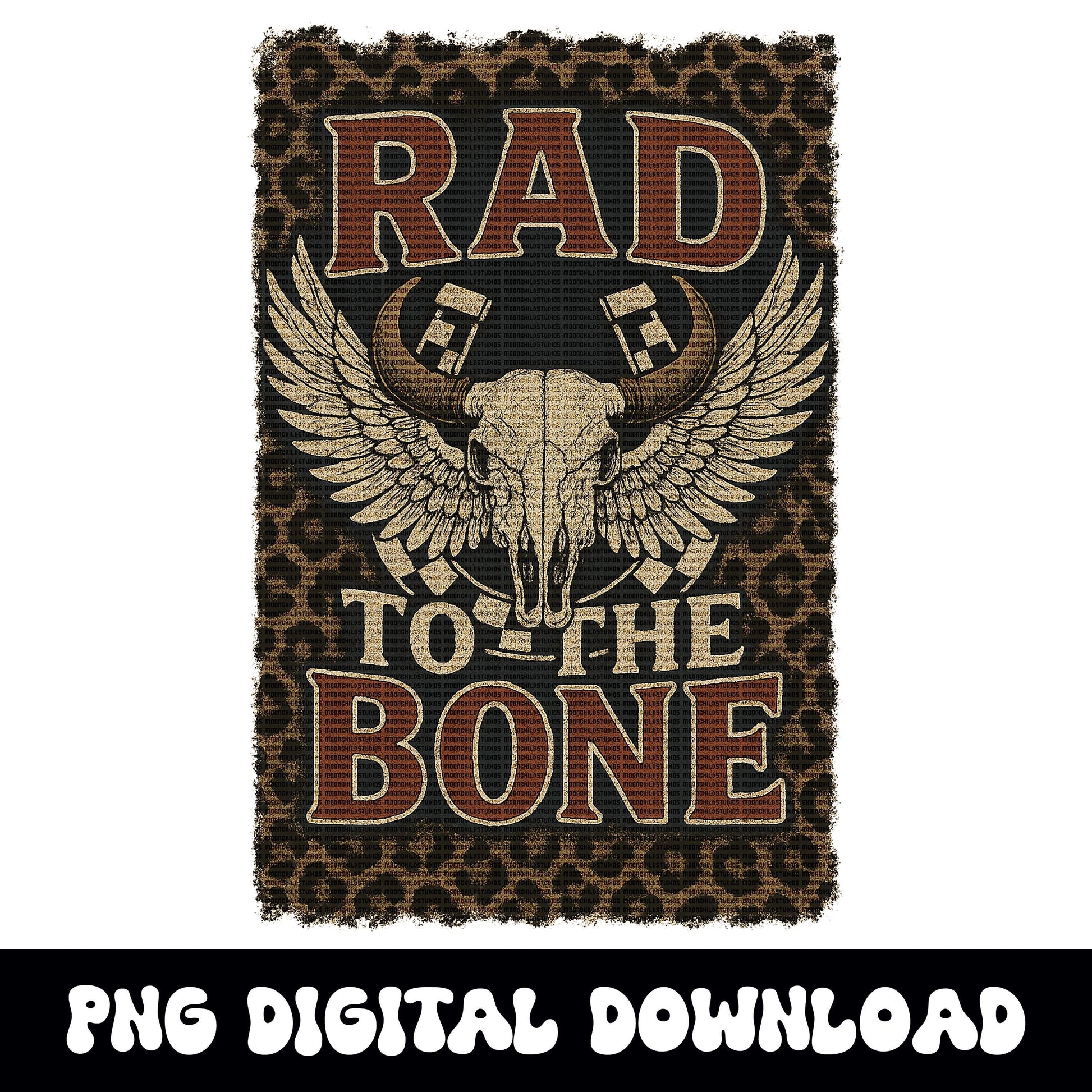 Rad to the bone bull skull cheetah print checkered horse shoe png graphic digital download for tshirt sublimation or dtf