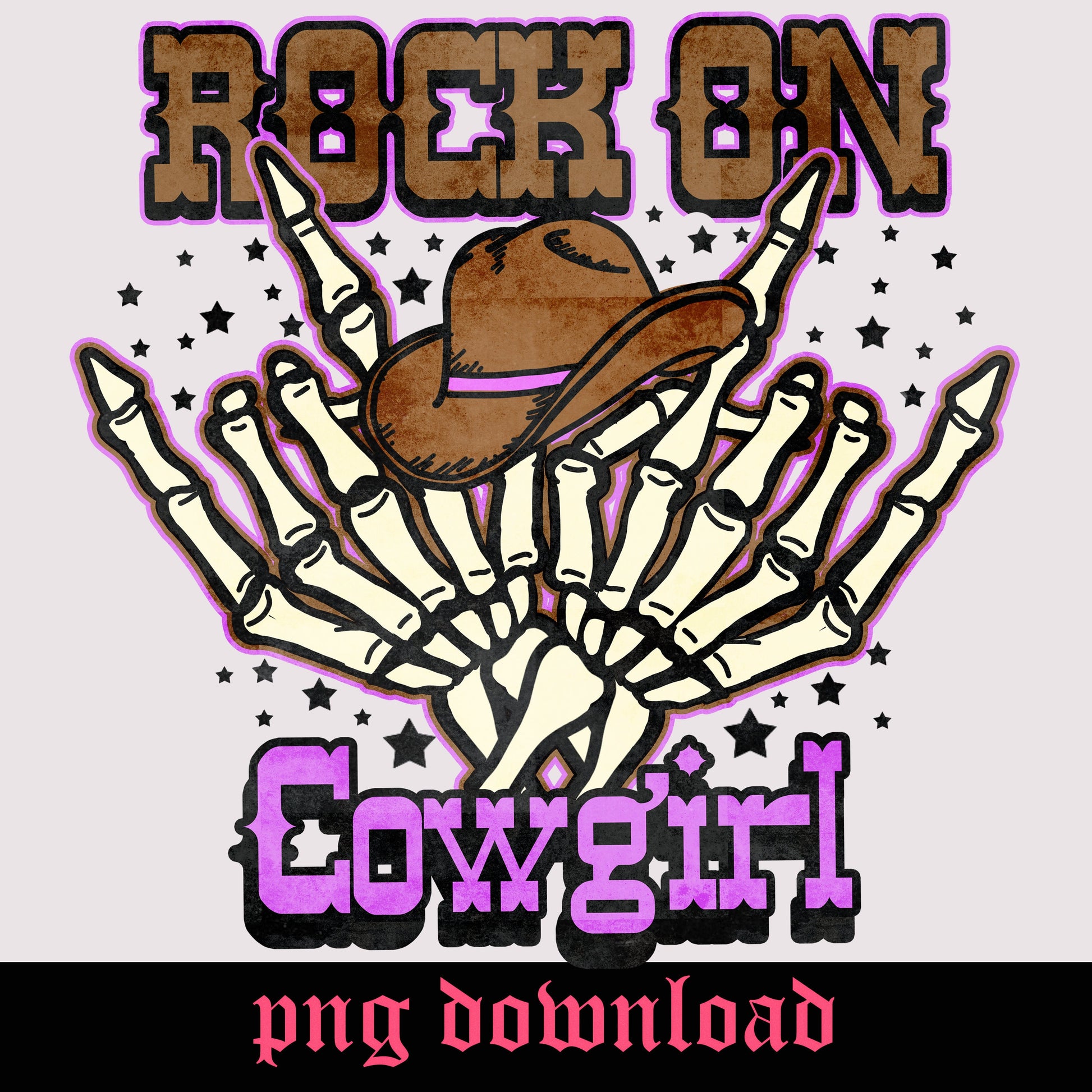 Rock on cowgirl western skeleton cowgirl hat vintage graphic png tshirt design