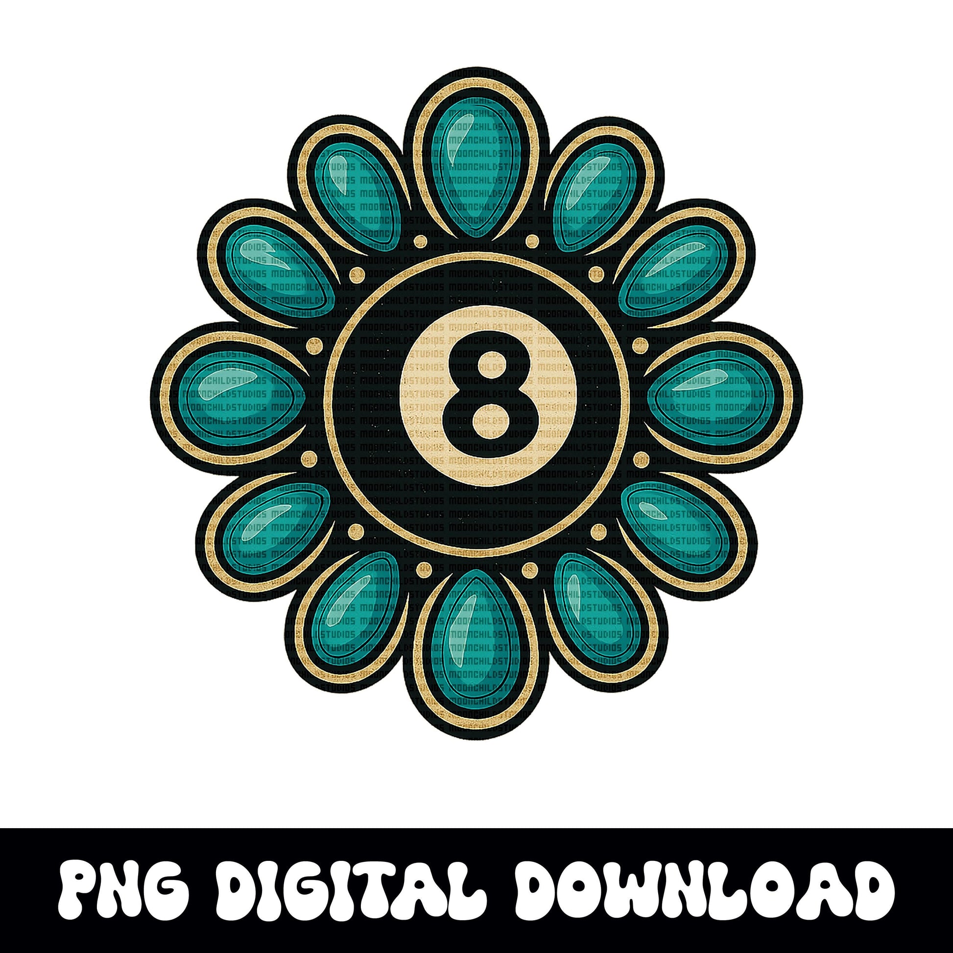 Turquoise 8 Ball Flower PNG | Western Retro Graphic | Sublimation or DTF Digital Download for T-Shirts and Crafts