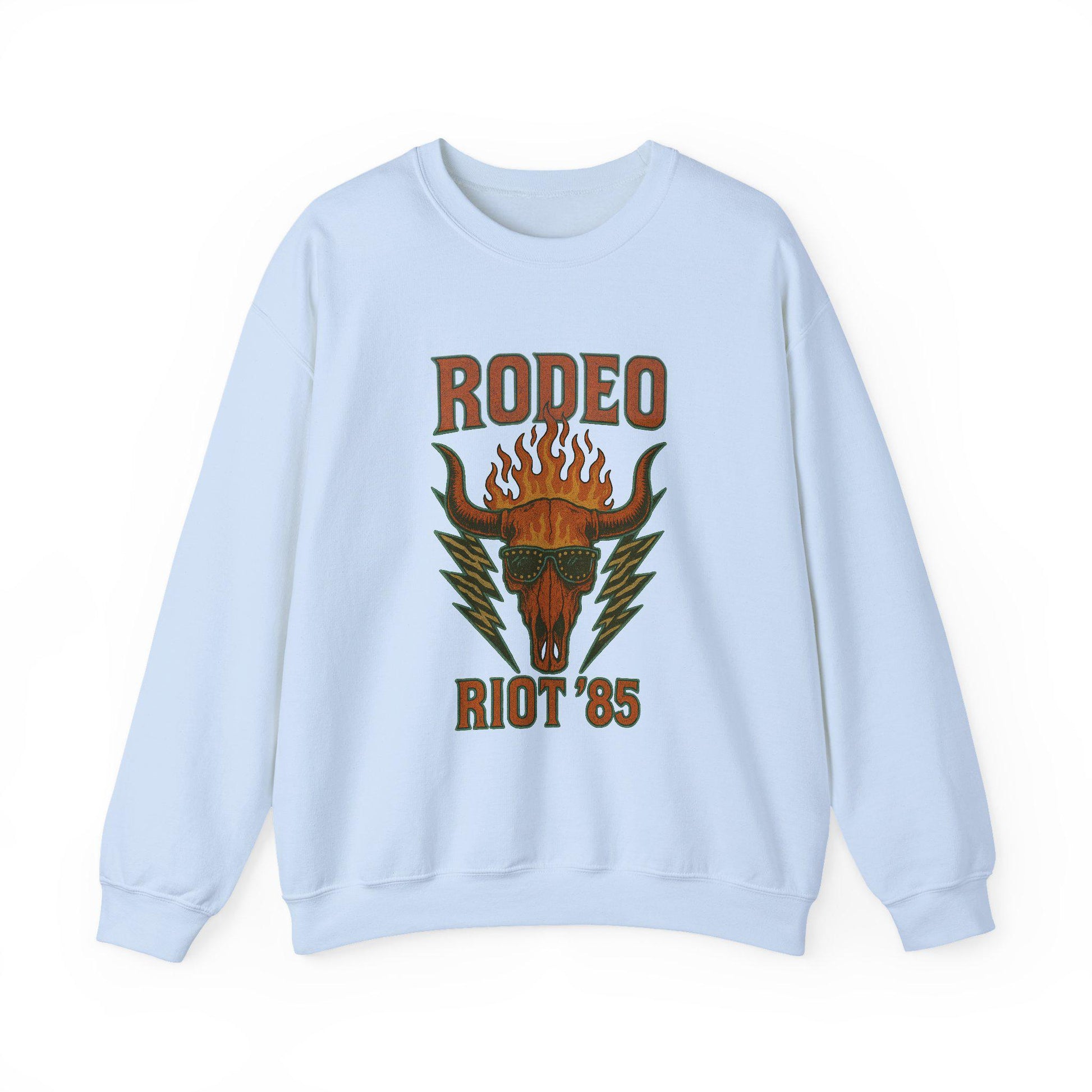 Western 80s band tee inspired "Rodeo Riot" flaming bull skull lightning PNG graphic INSTANT digital download for tshirt sublimation or dtf