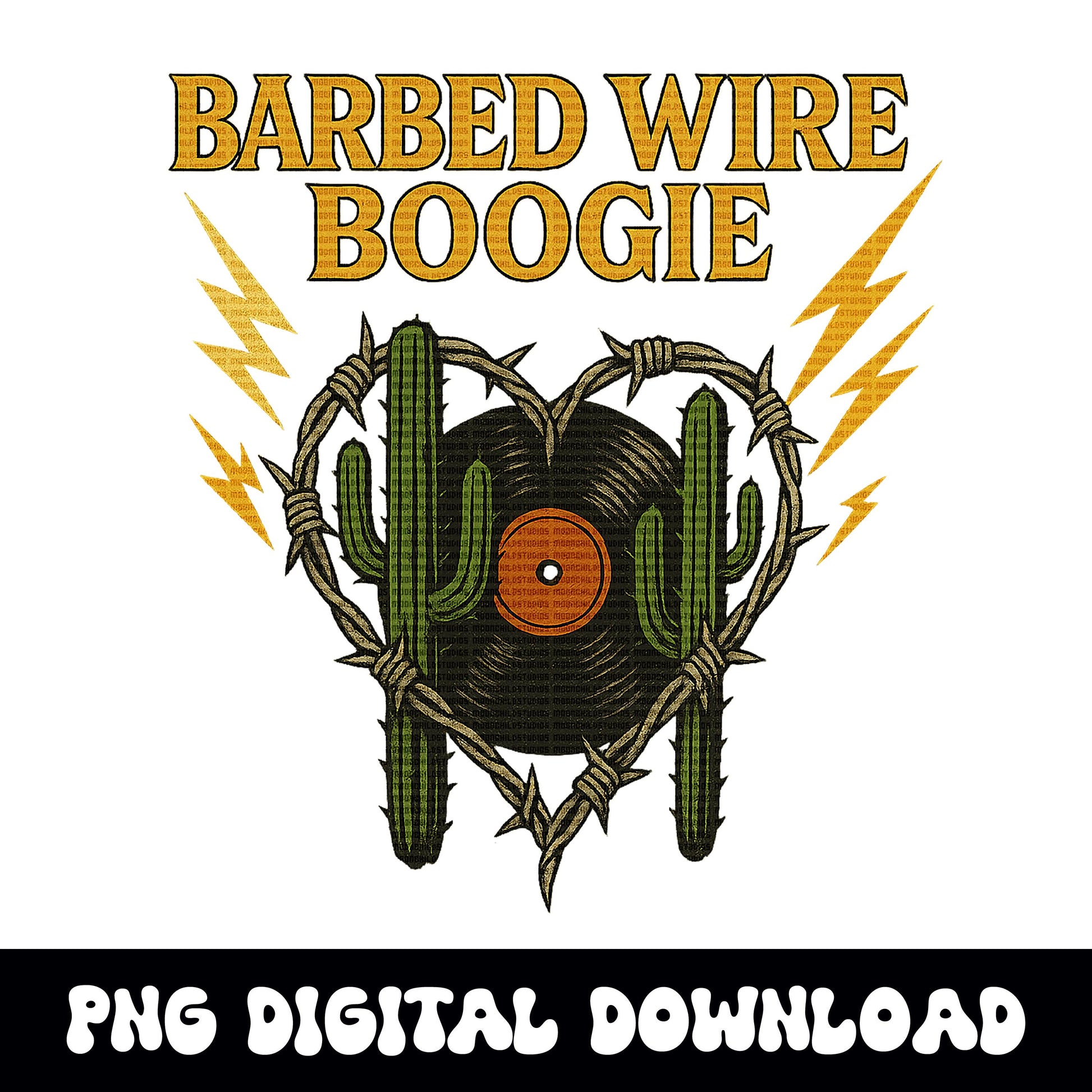 Western "barbed wire boogie" desert hearts record PNG graphic INSTANT digital download for tshirt sublimation or dtf