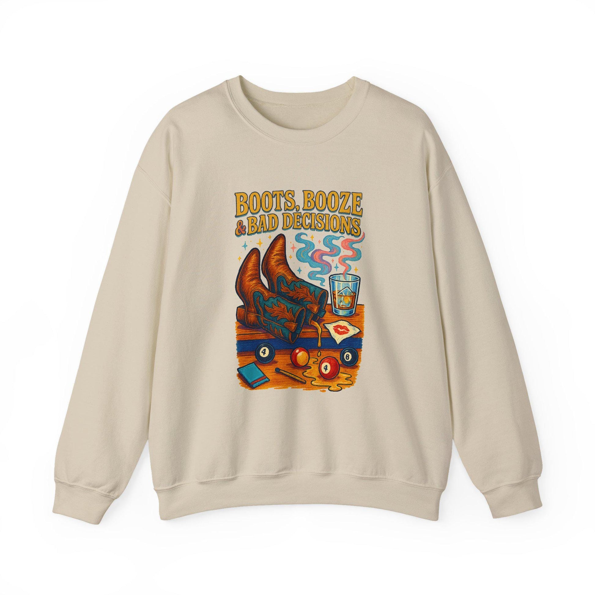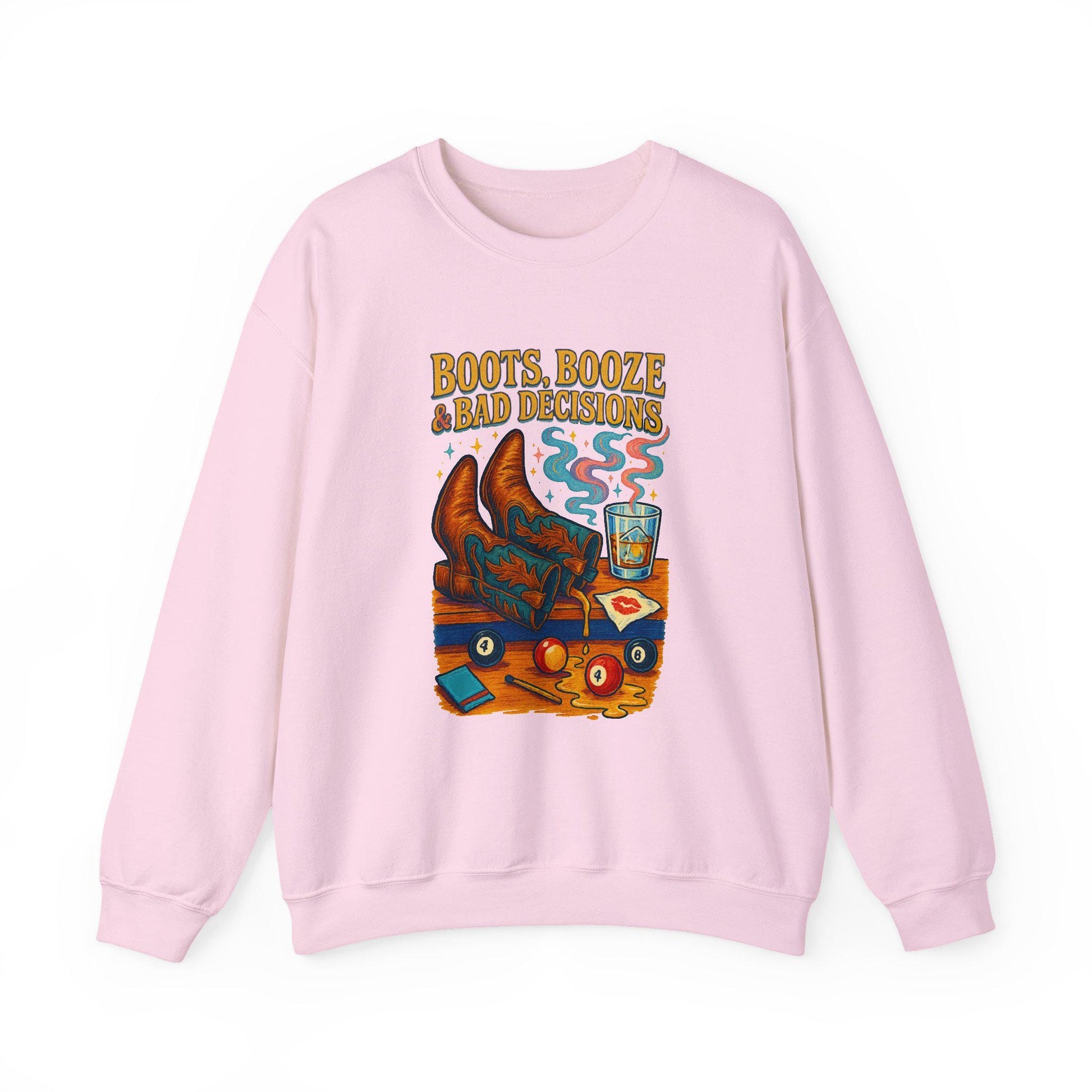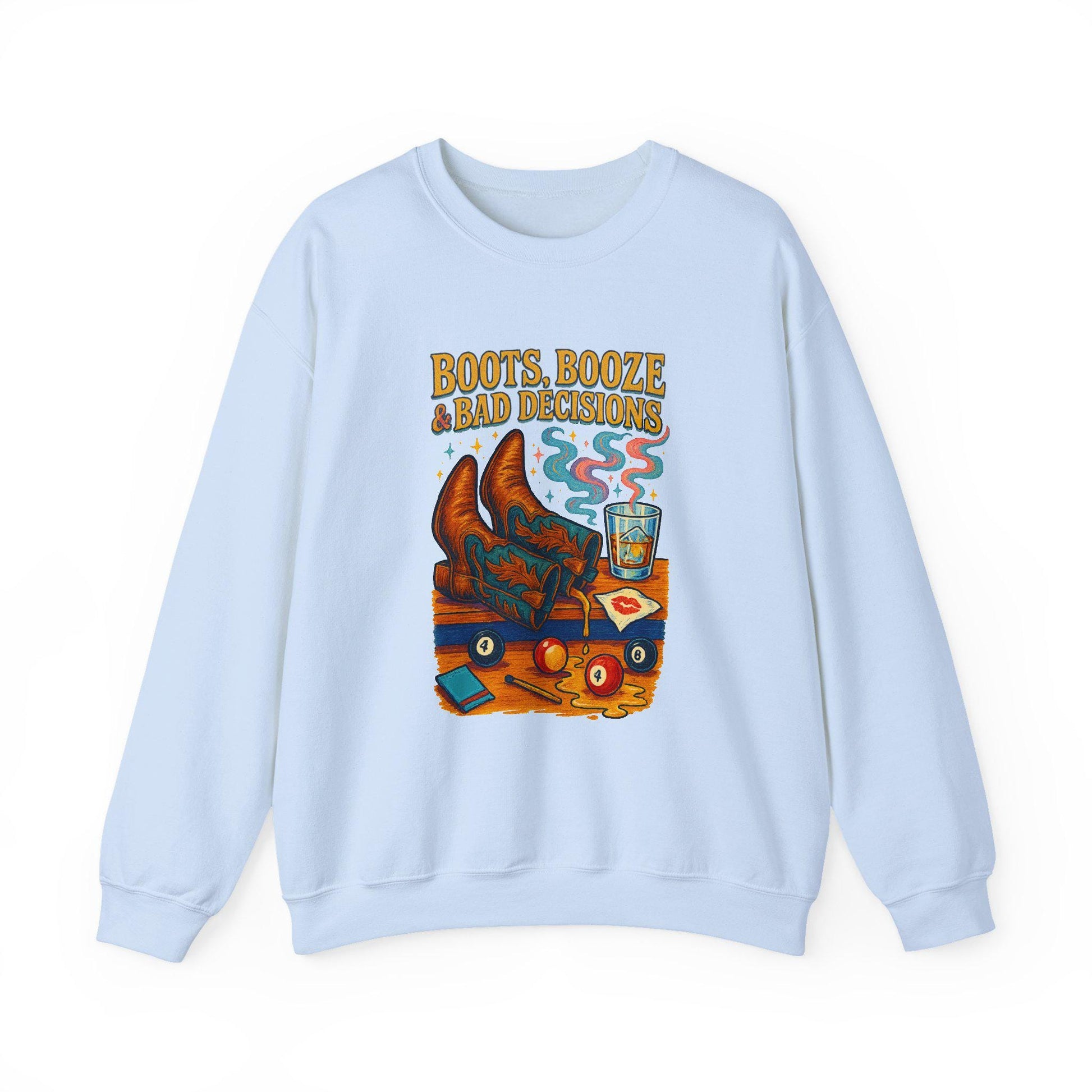 Western "boots, Booze, & bad decisions" cowgirl bar whiskey 8ball lipstick png graphic digital download for tshirt sublimation/dtf
