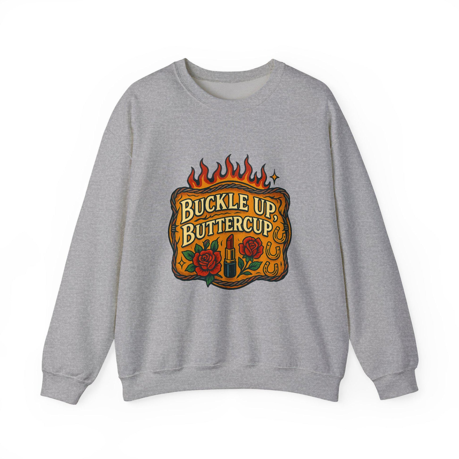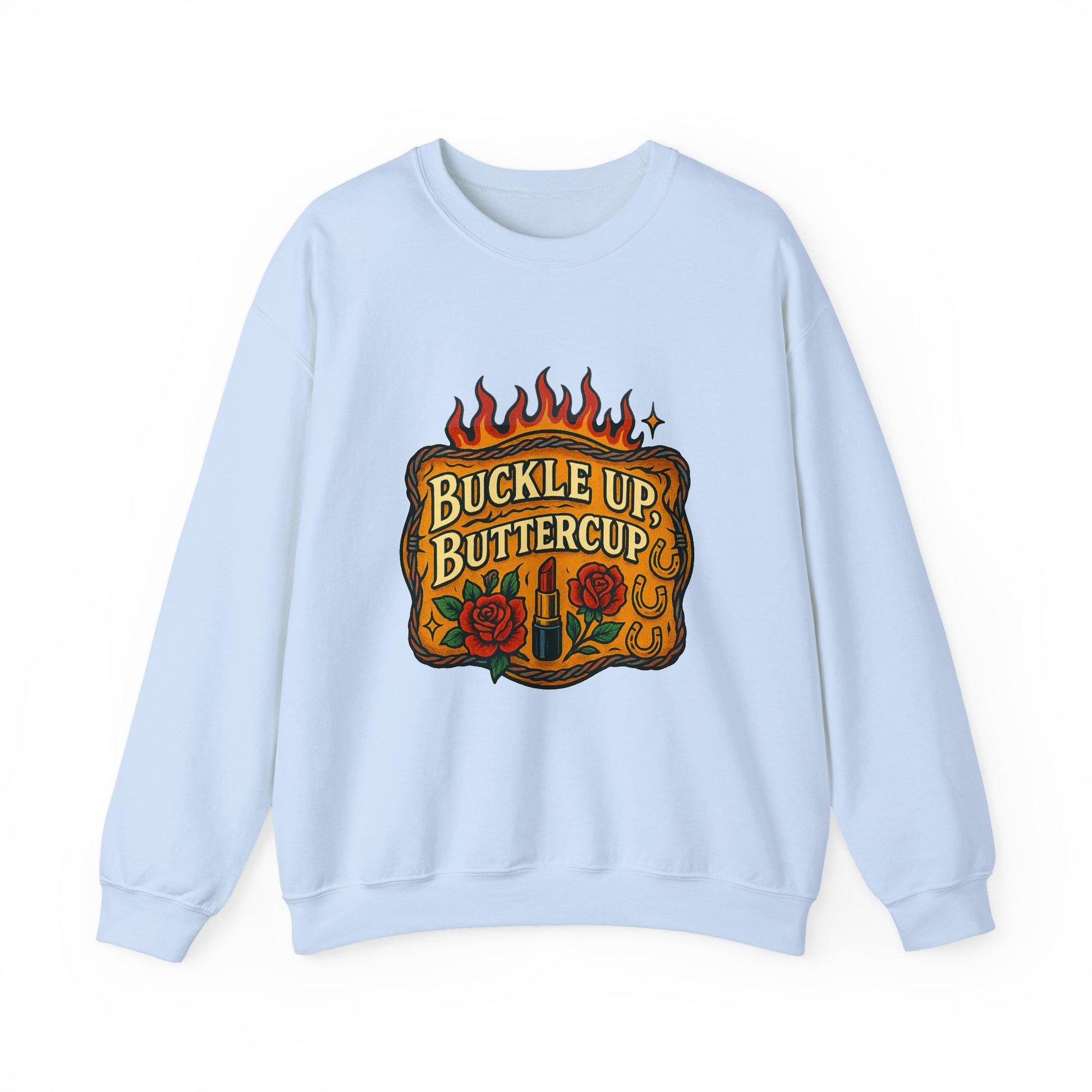 Western buckle up buttercup flaming belt buckle lipstick and rose png graphic INSTANT digital download for tshirt sublimation or dtf