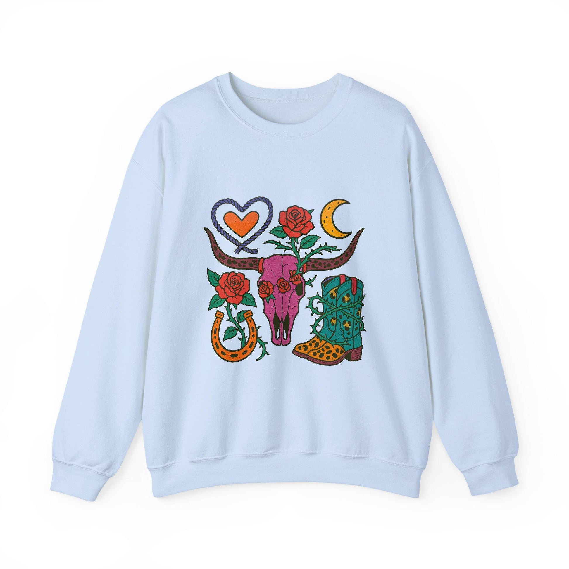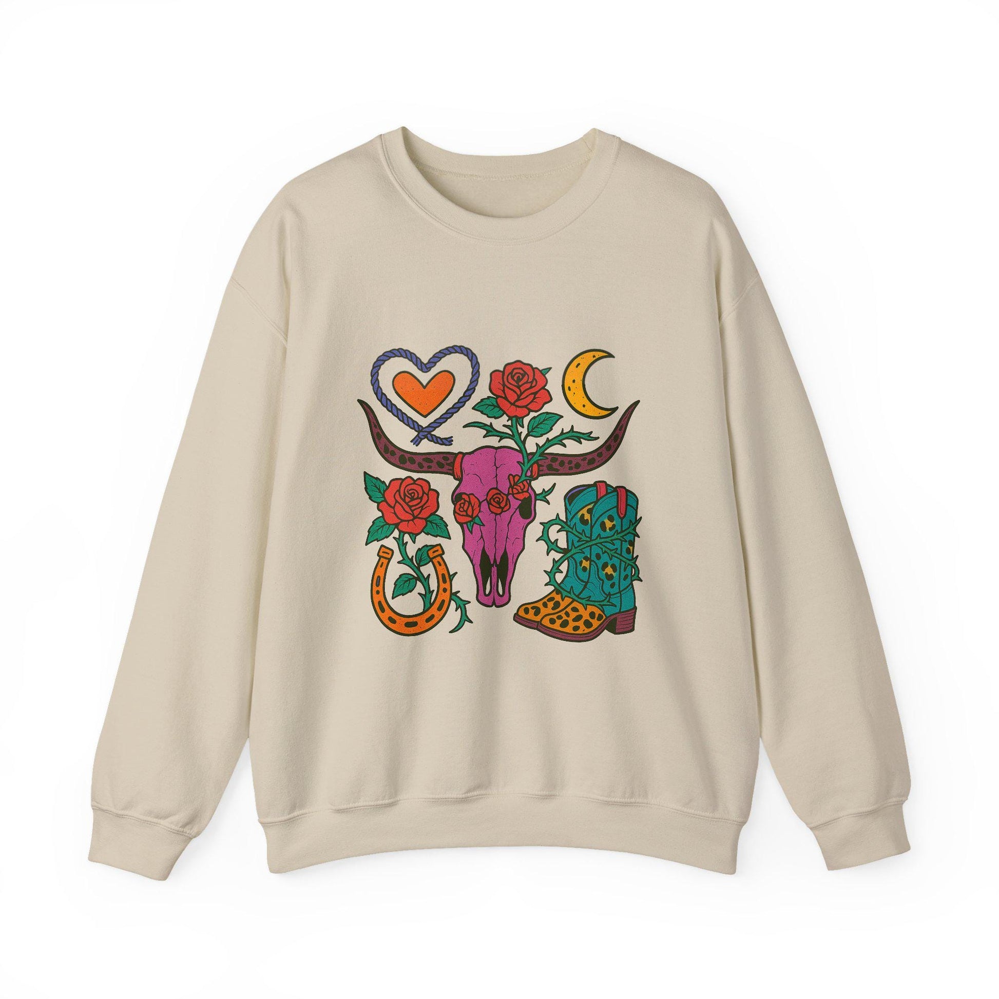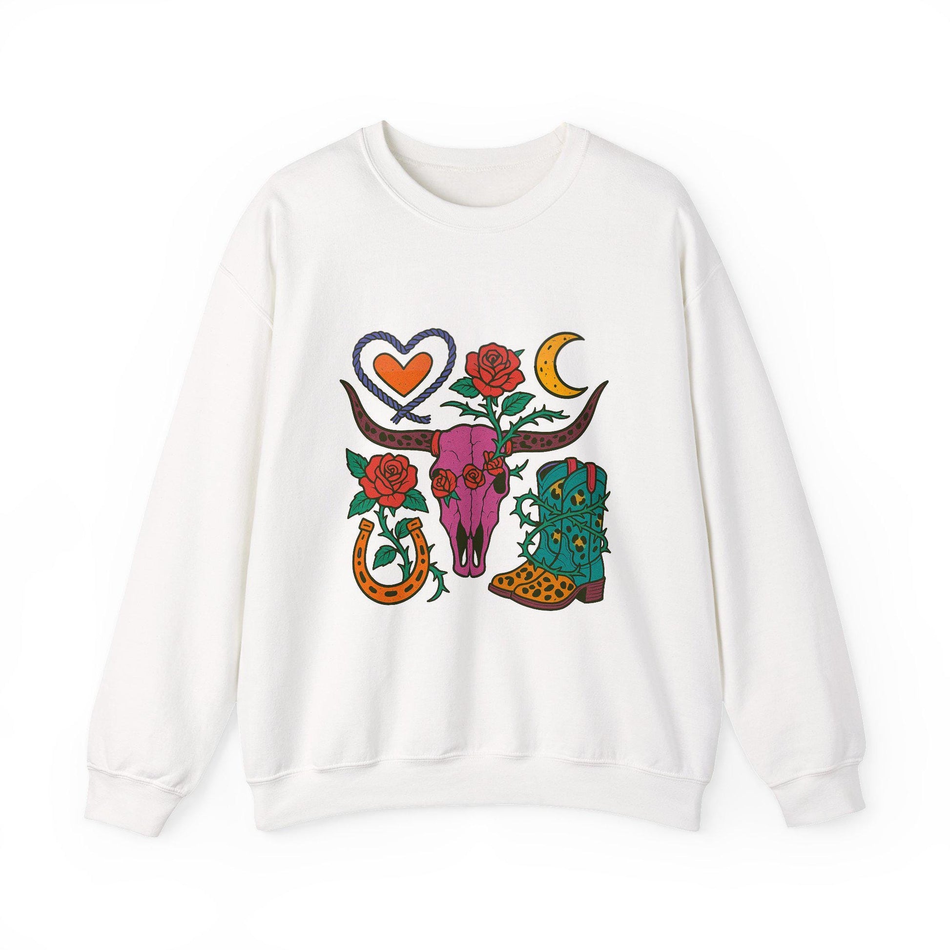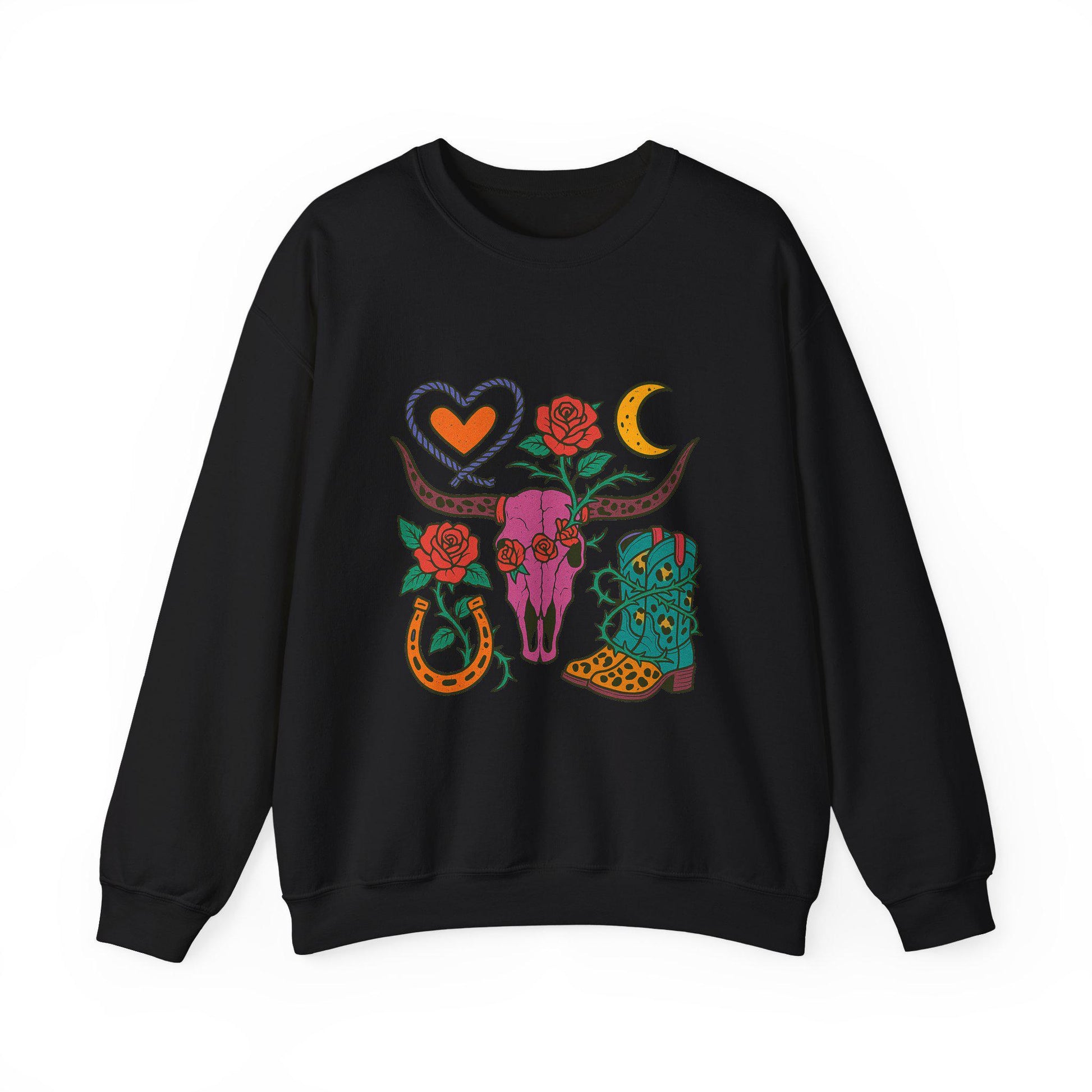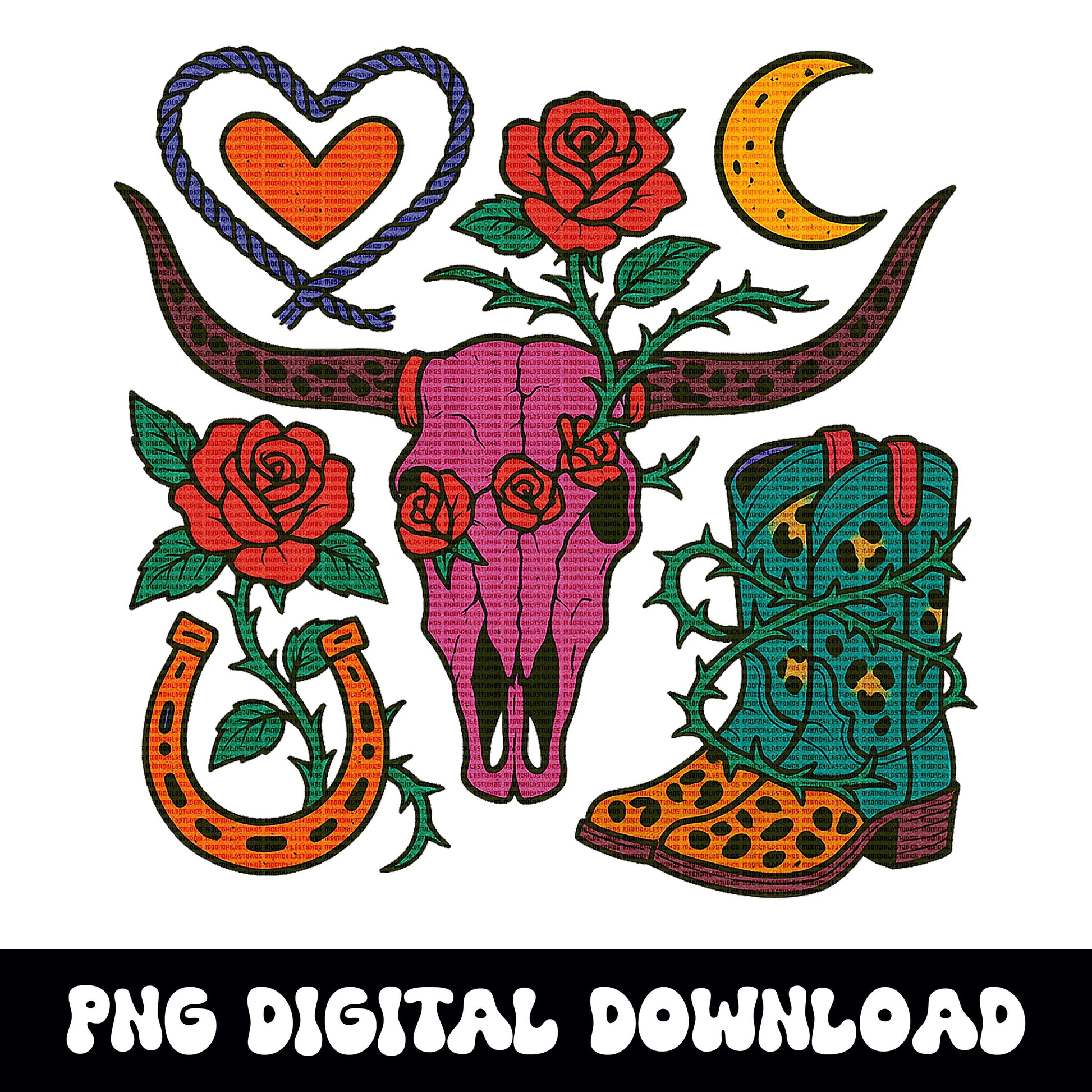 Western bull cowgirl boots rose horse shoe moon heart collage png graphic INSTANT digital download for tshirt sublimation or dtf