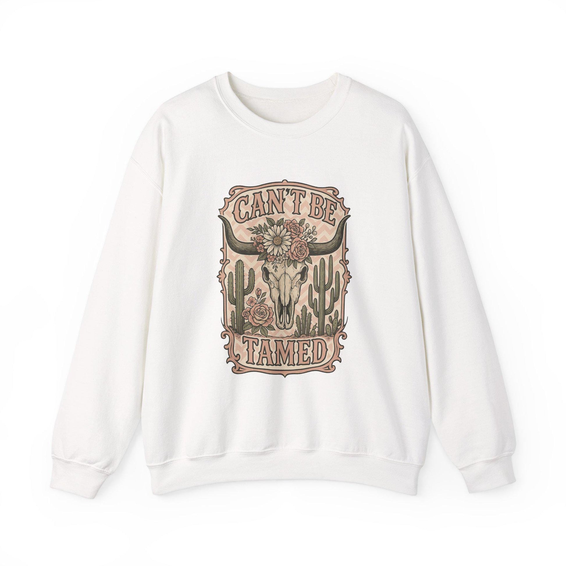 Western "cant be tamed" floral bull skull desert png graphic digital download for tshirt sublimation or dtf