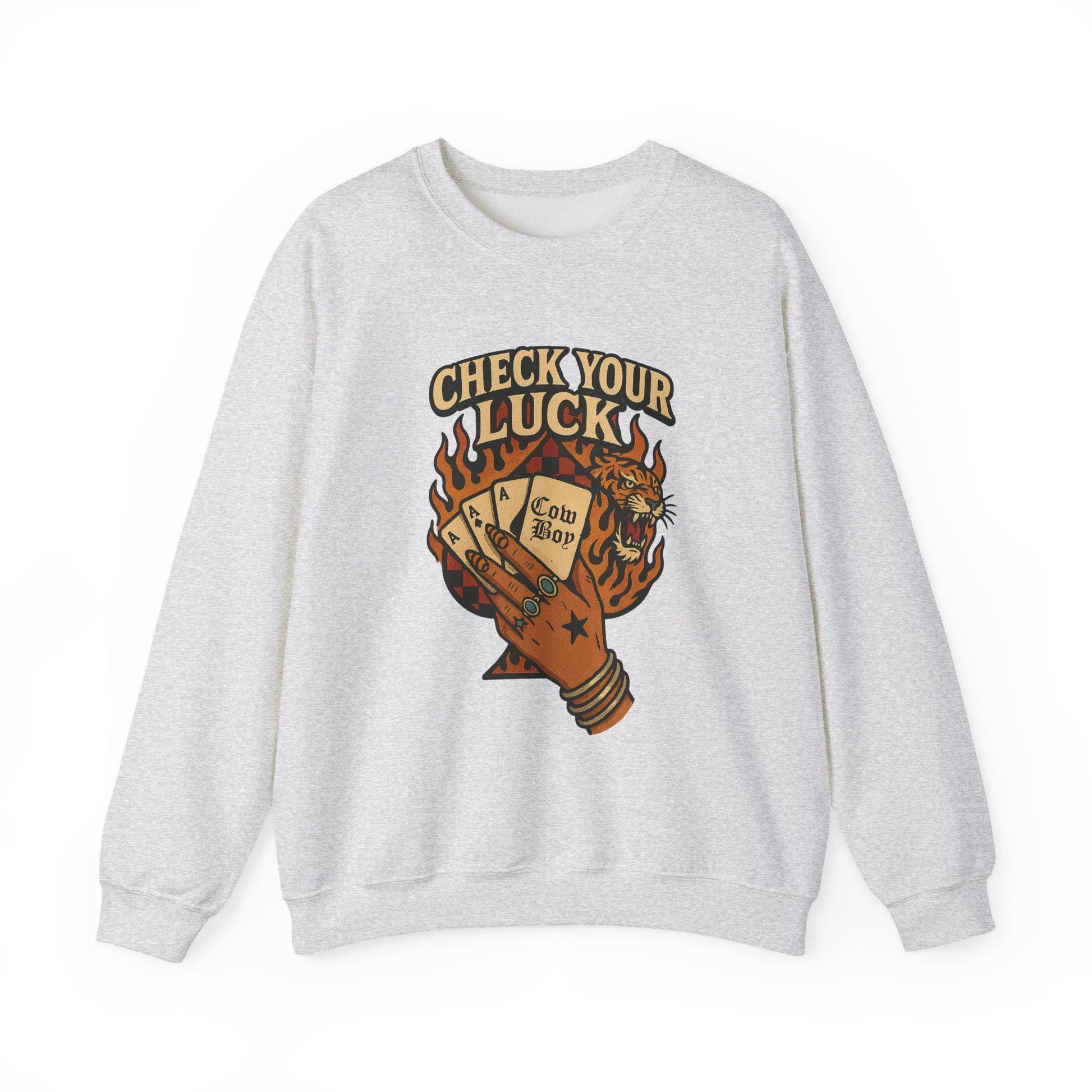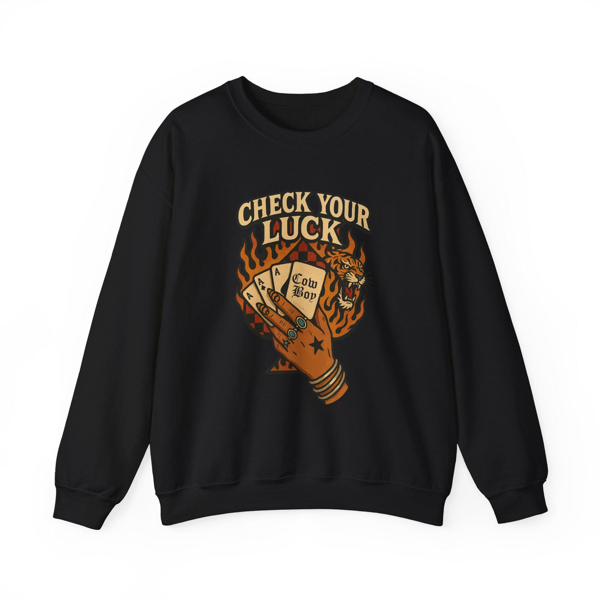 Western "check your luck, cowboy" flaming spade tiger yallternative PNG graphic INSTANT digital download for tshirt sublimation or dtf