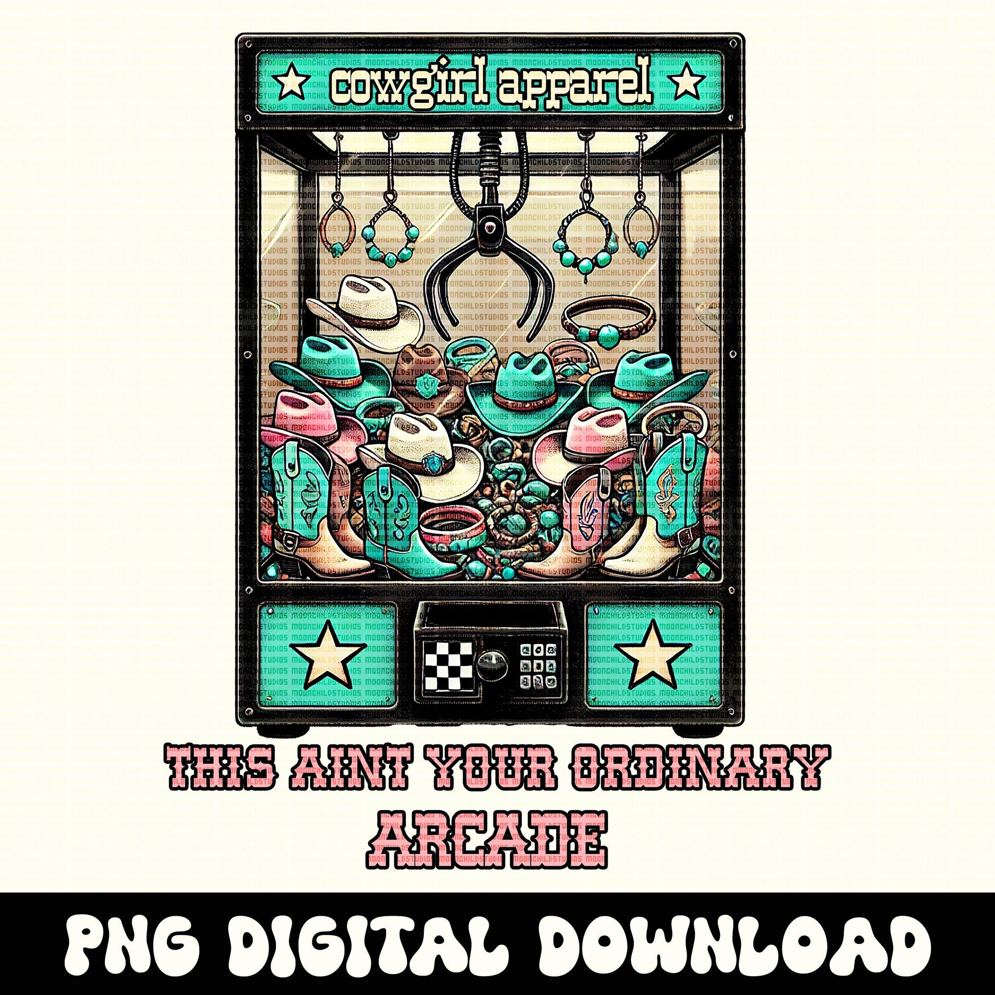 Western Cowgirl apparel arcade claw machine design png graphic for sublimation or dtf
