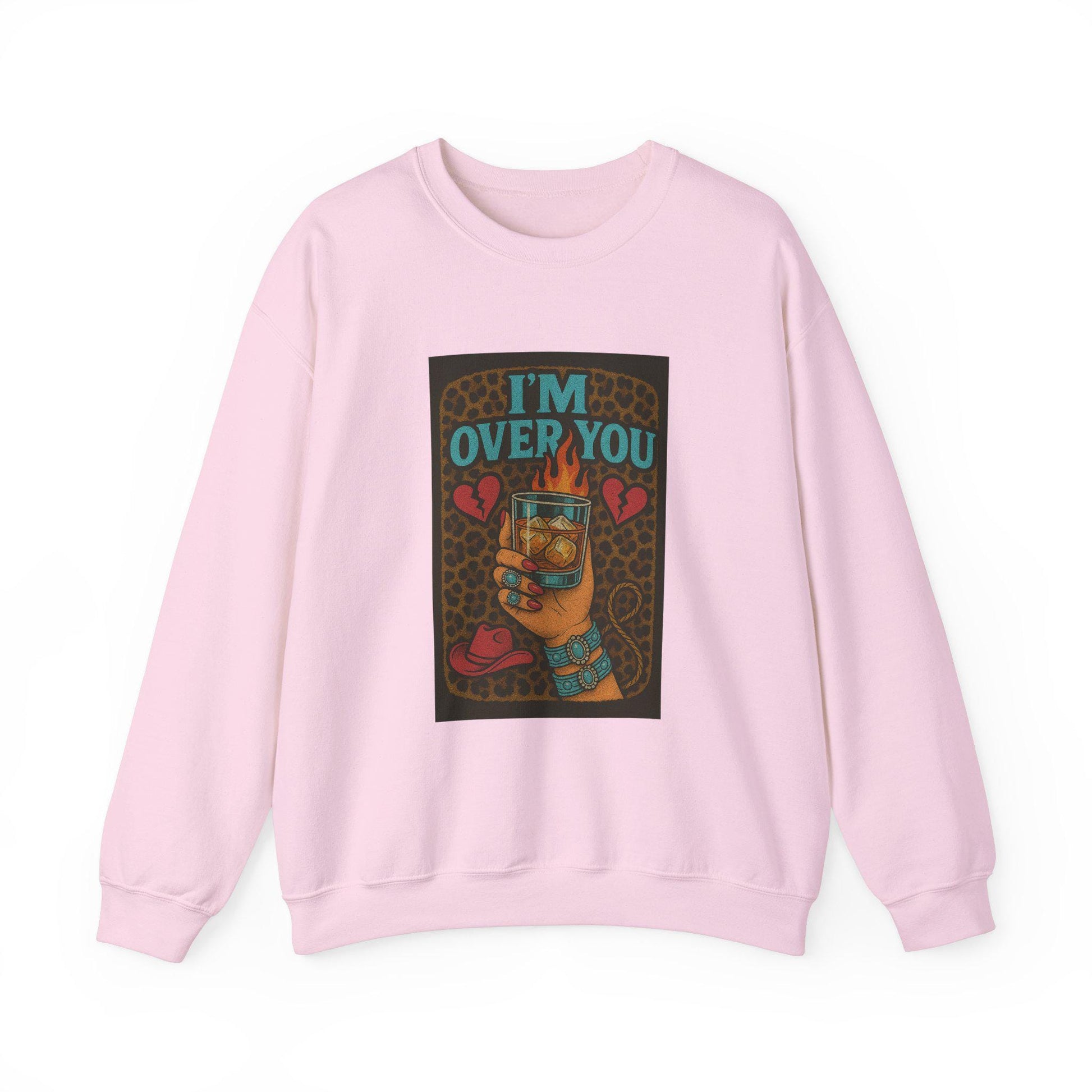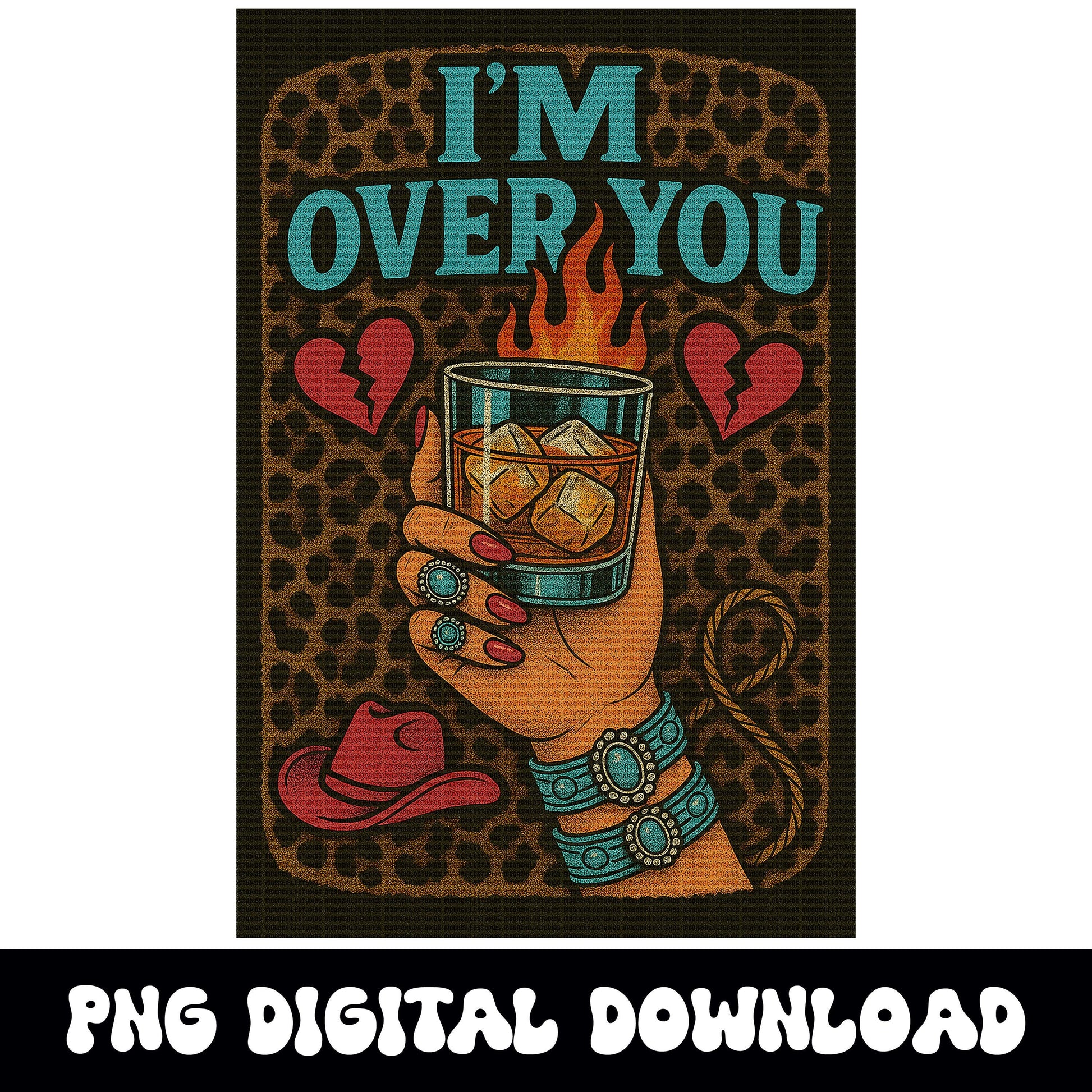 Western cowgirl cheetah print whiskey "im over you" png graphic digital download for tshirt sublimation or dtf