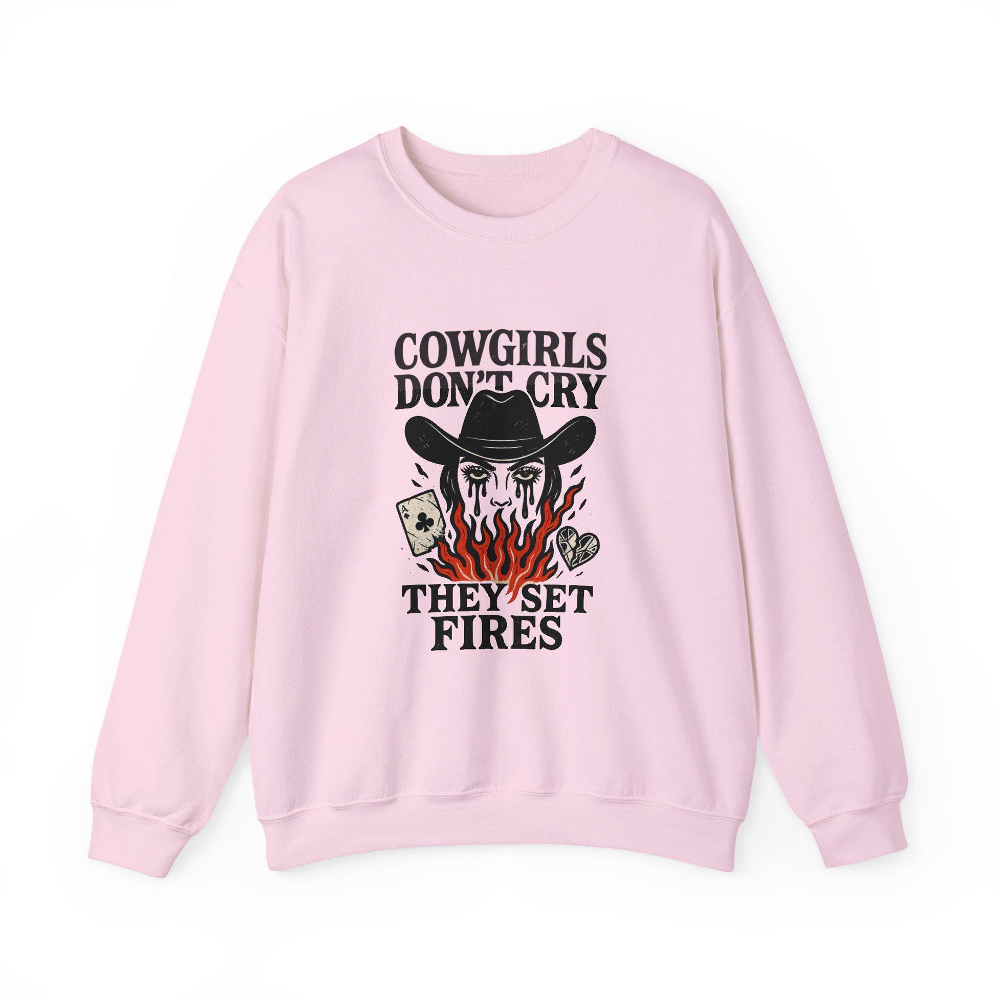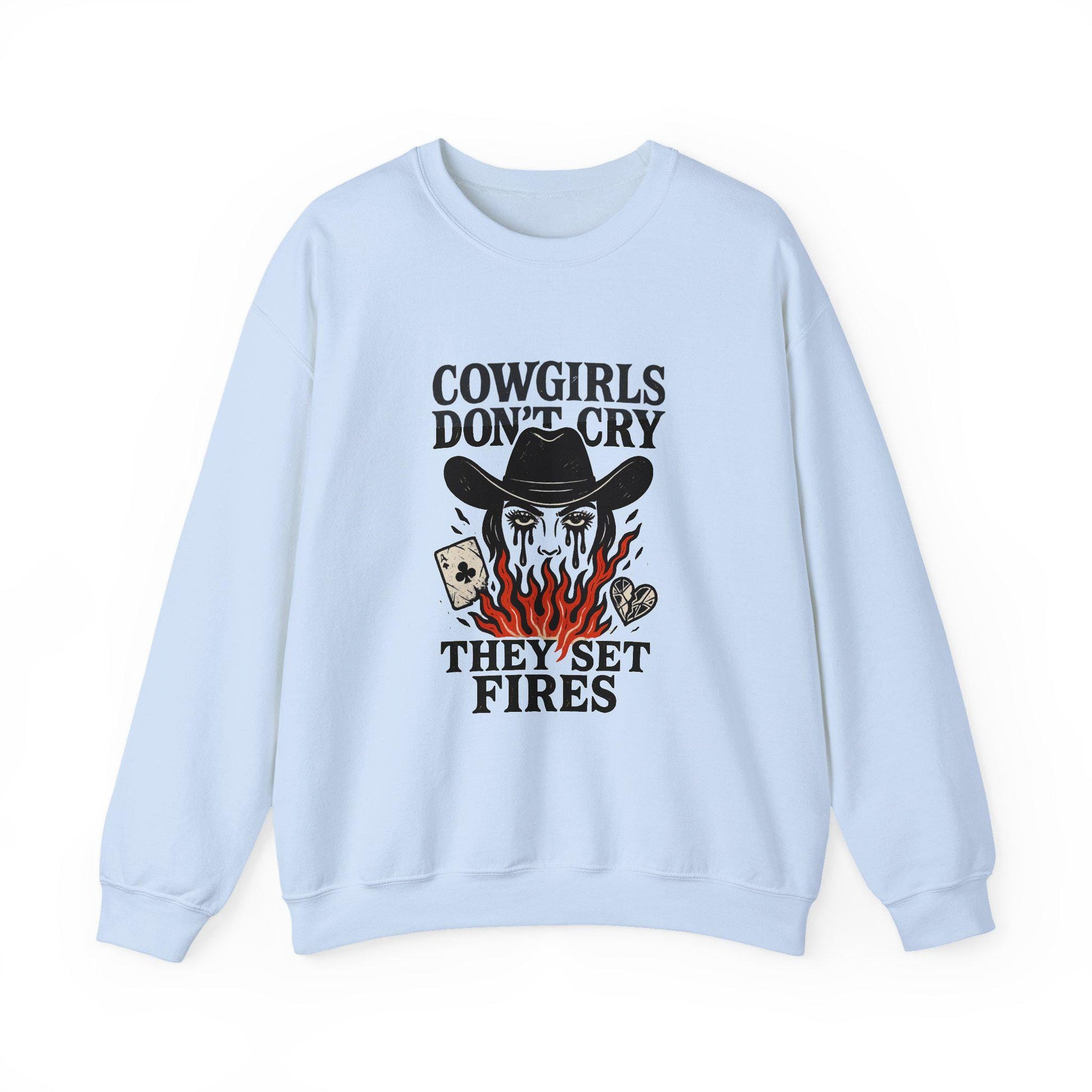 Western "cowgirls dont cry, they set fires" flaming cowgirl cards PNG graphic INSTANT digital download for tshirt sublimation or dtf