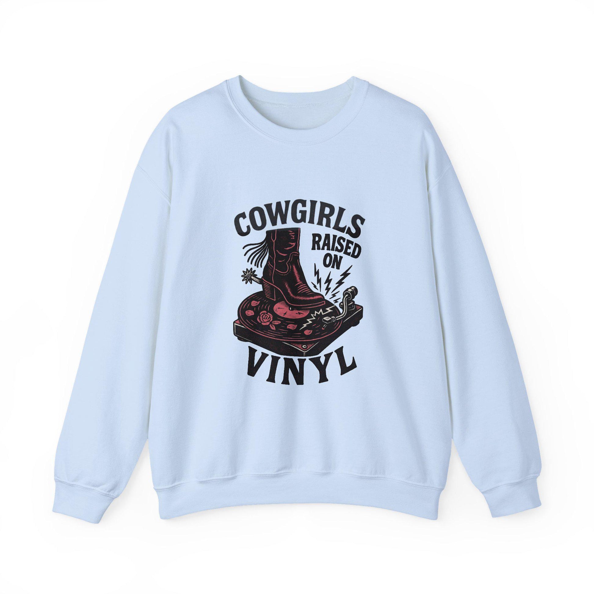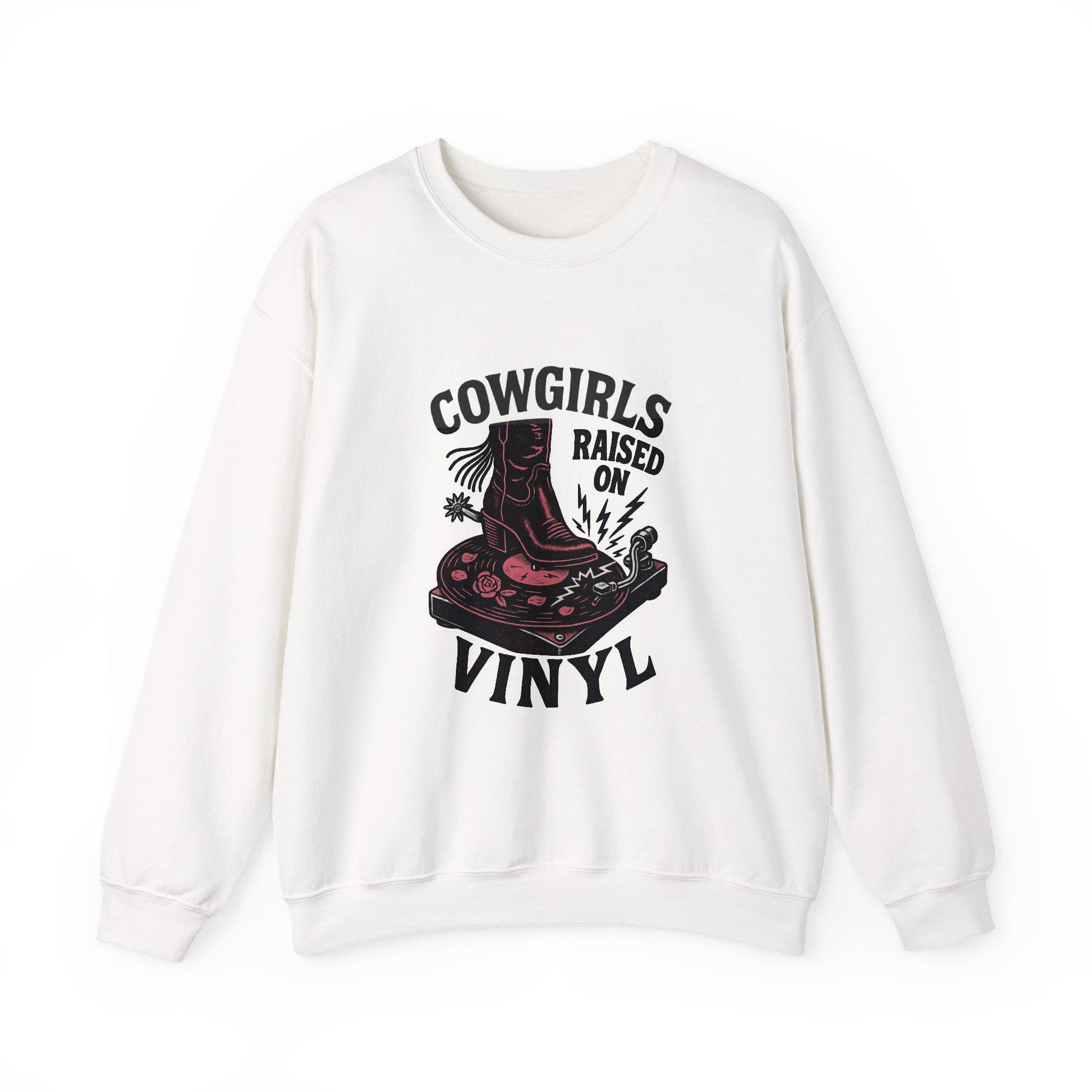 Western "cowgirls raised on vinyl" cowgirl boot and record player PNG graphic INSTANT digital download for tshirt sublimation or dtf