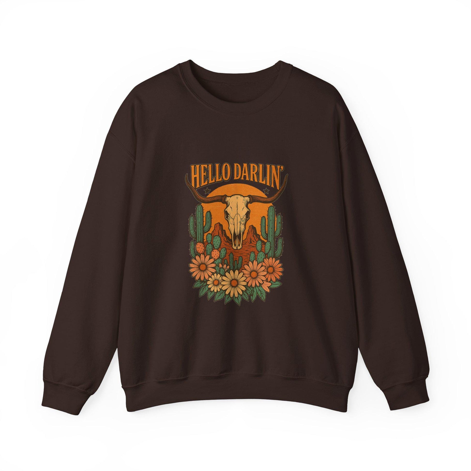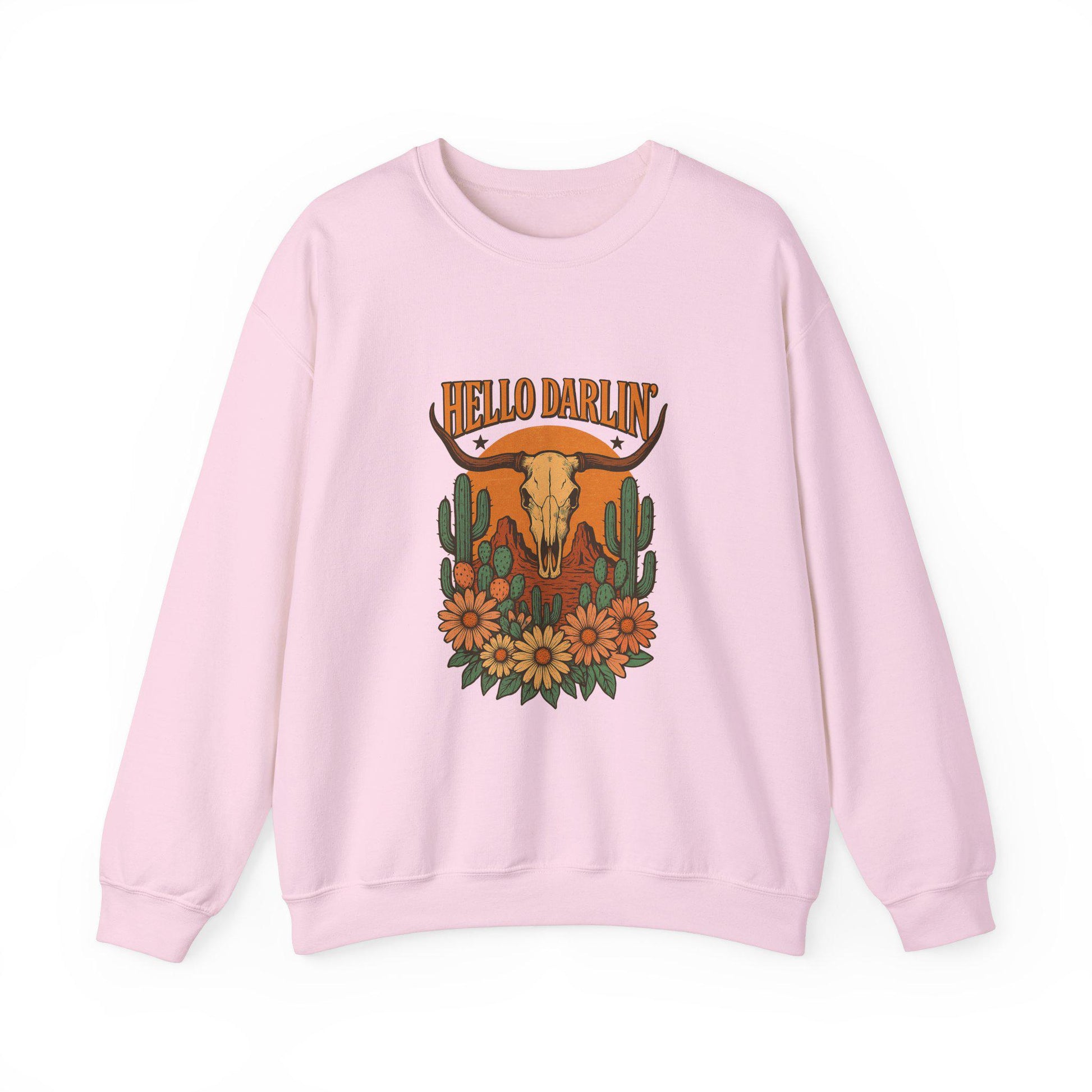 Western "hello darlin" bull skull floral desert png graphic digital download for tshirt sublimation or dtf