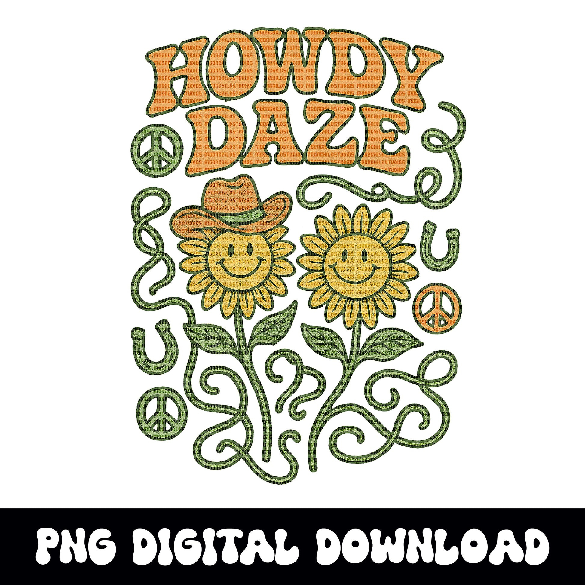 Western "Howdy daze" groovy flower PNG graphic digital download for tshirt sublimation or dtf