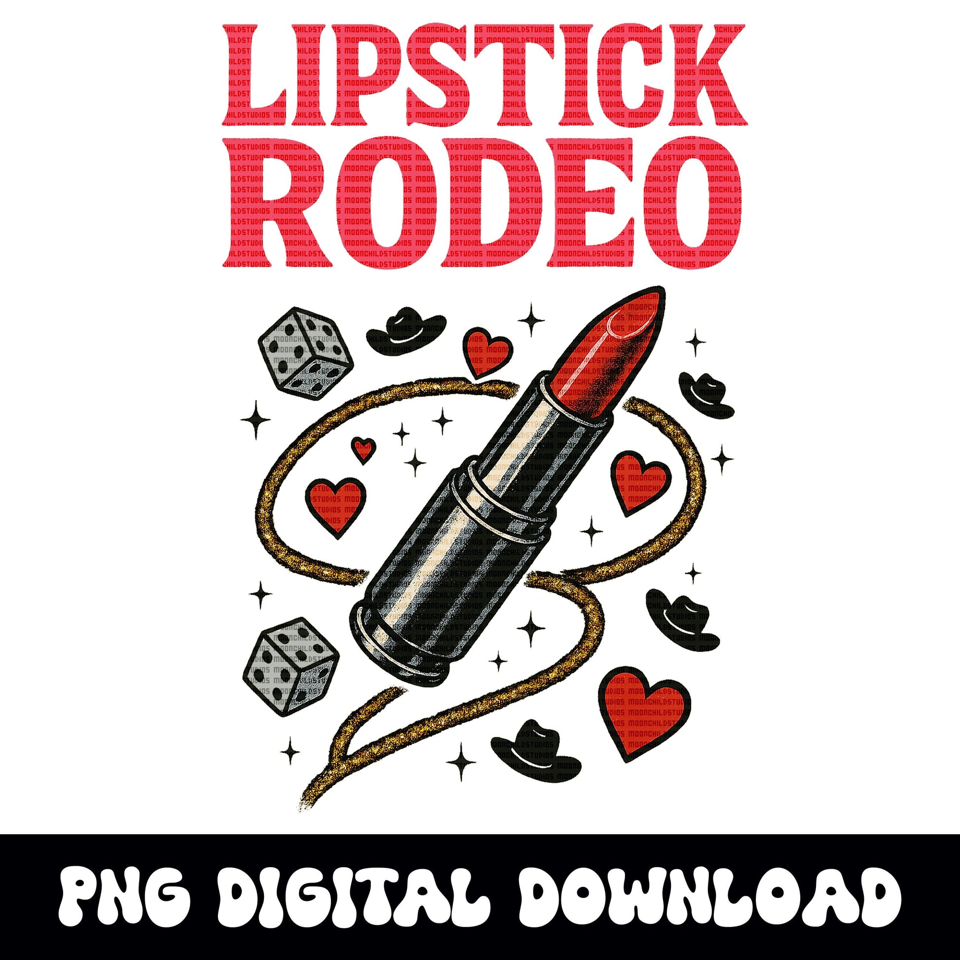 Western "Lipstick Rodeo" lipstick lasso cowgirl PNG graphic INSTANT digital download for tshirt sublimation or dtf