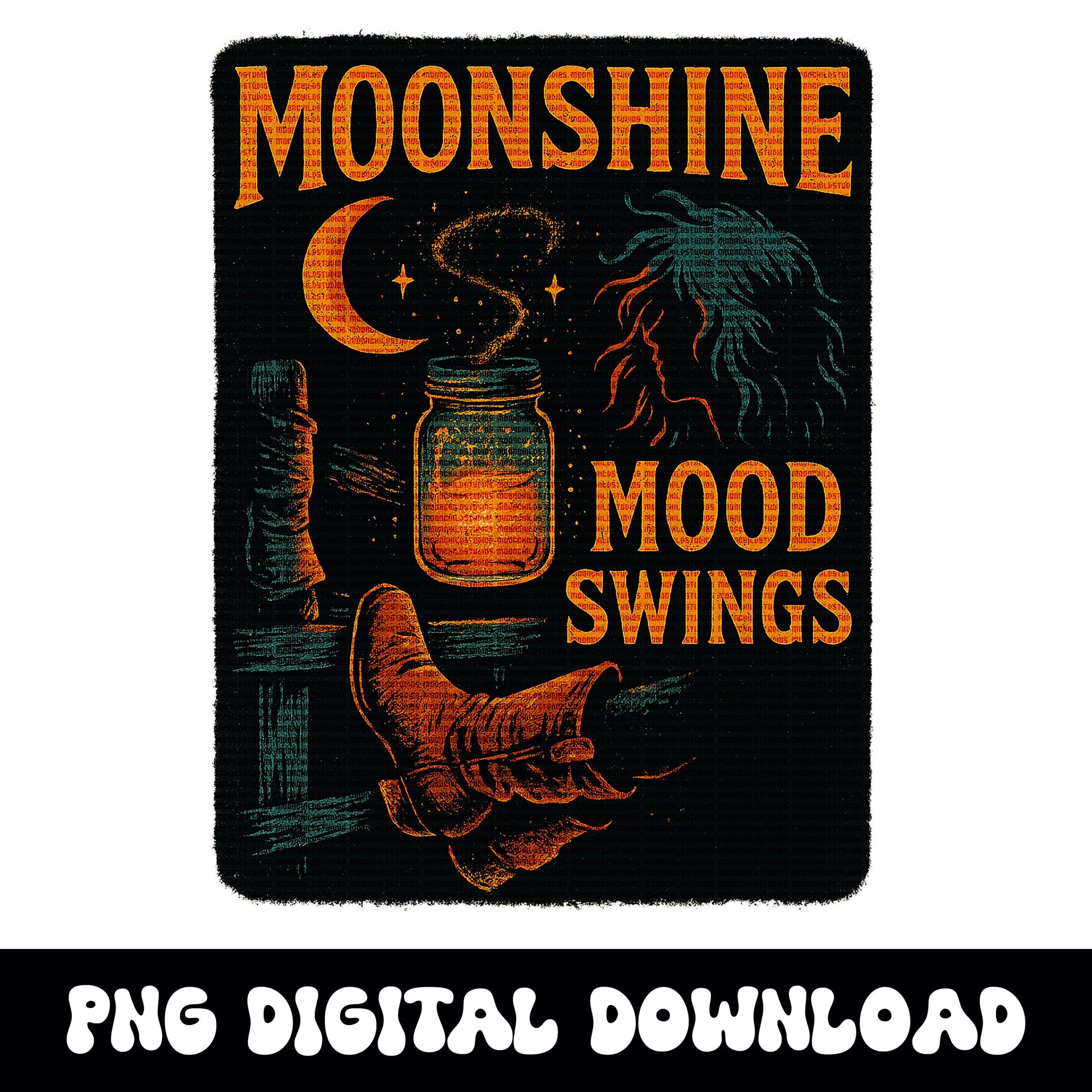 Western "Moonshine, mood swings" png graphic INSTANT digital download for tshirt sublimation or dtf
