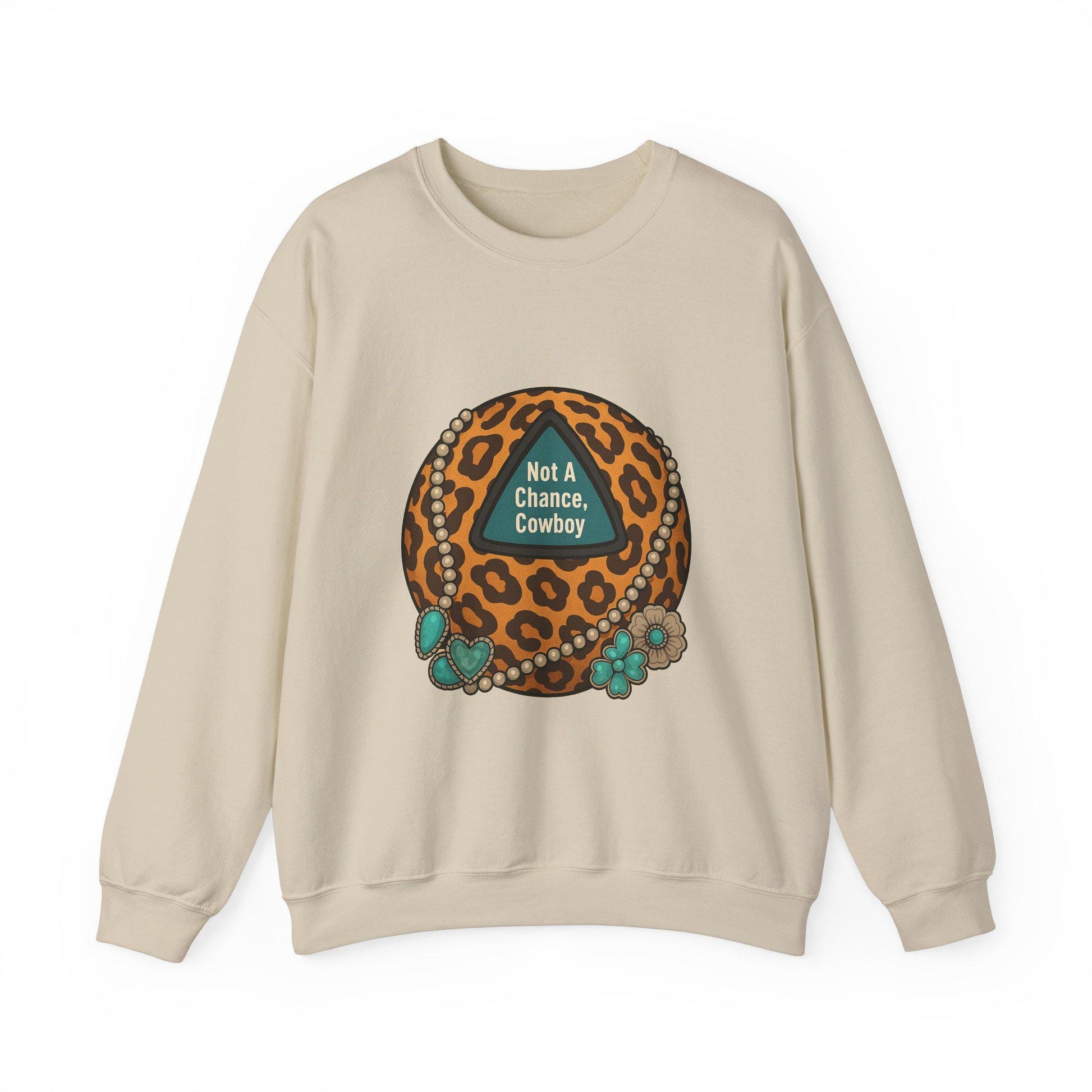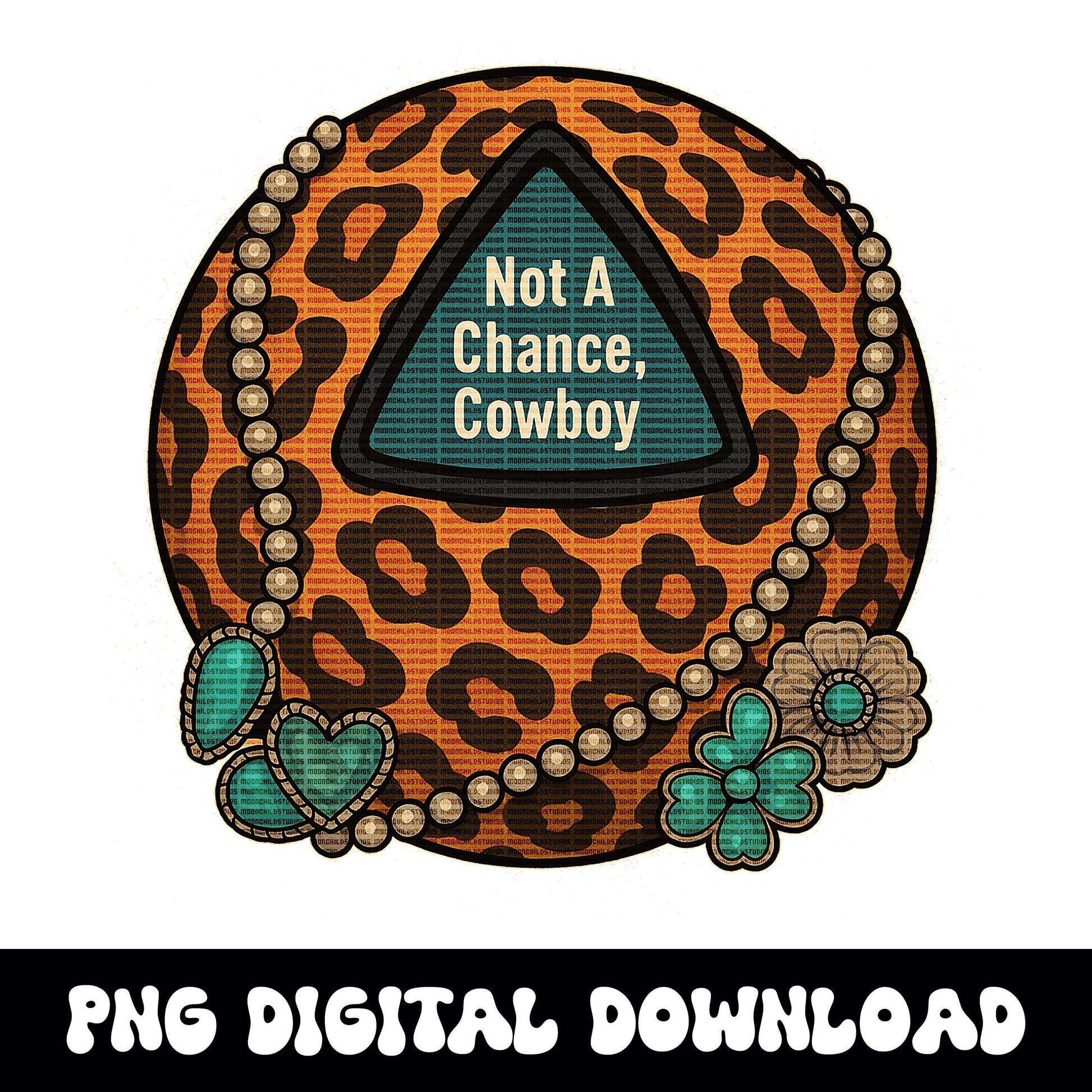 Western "not a chance cowboy" cheetah print 8ball cowgirl turquoise png graphic digital download for tshirt sublimation or dtf