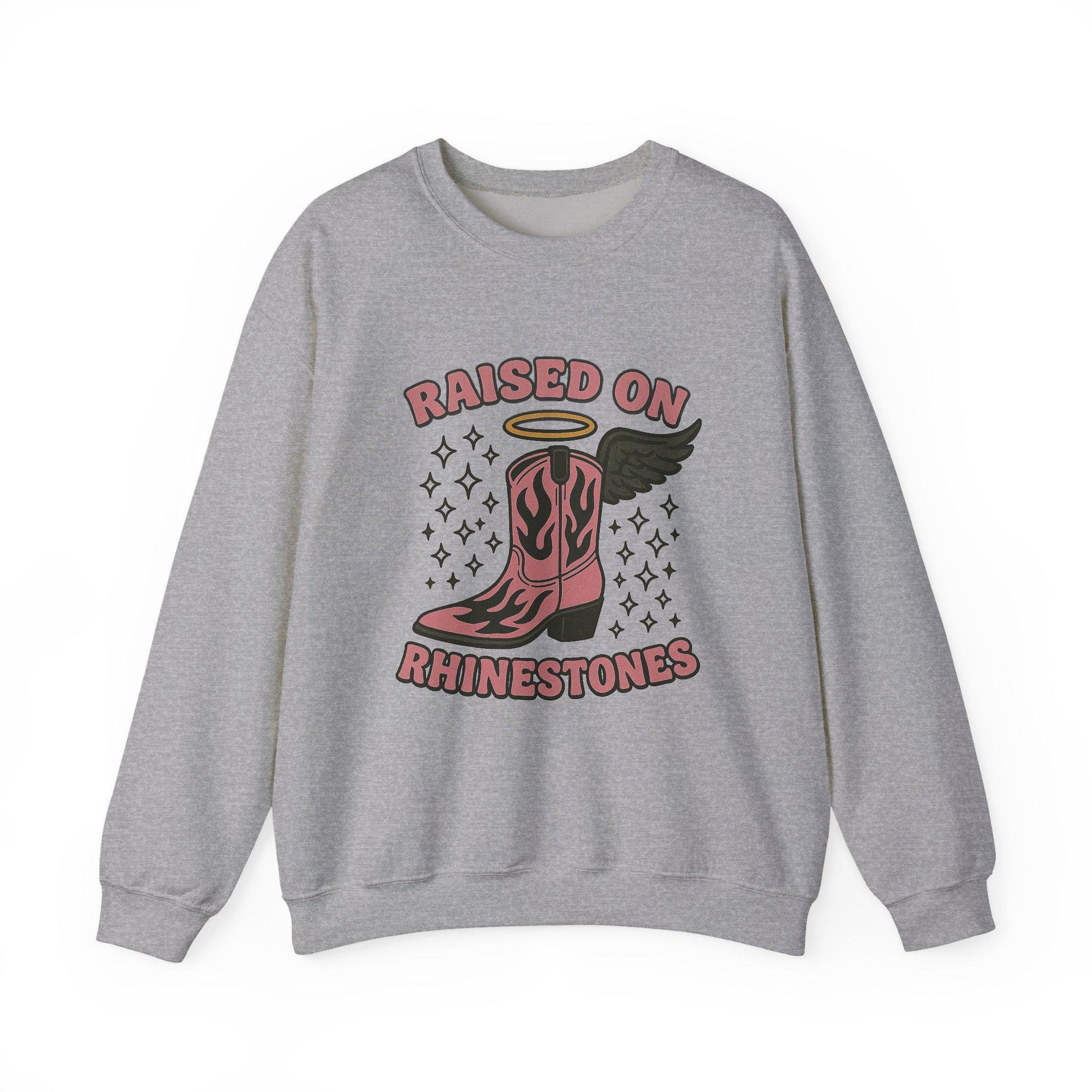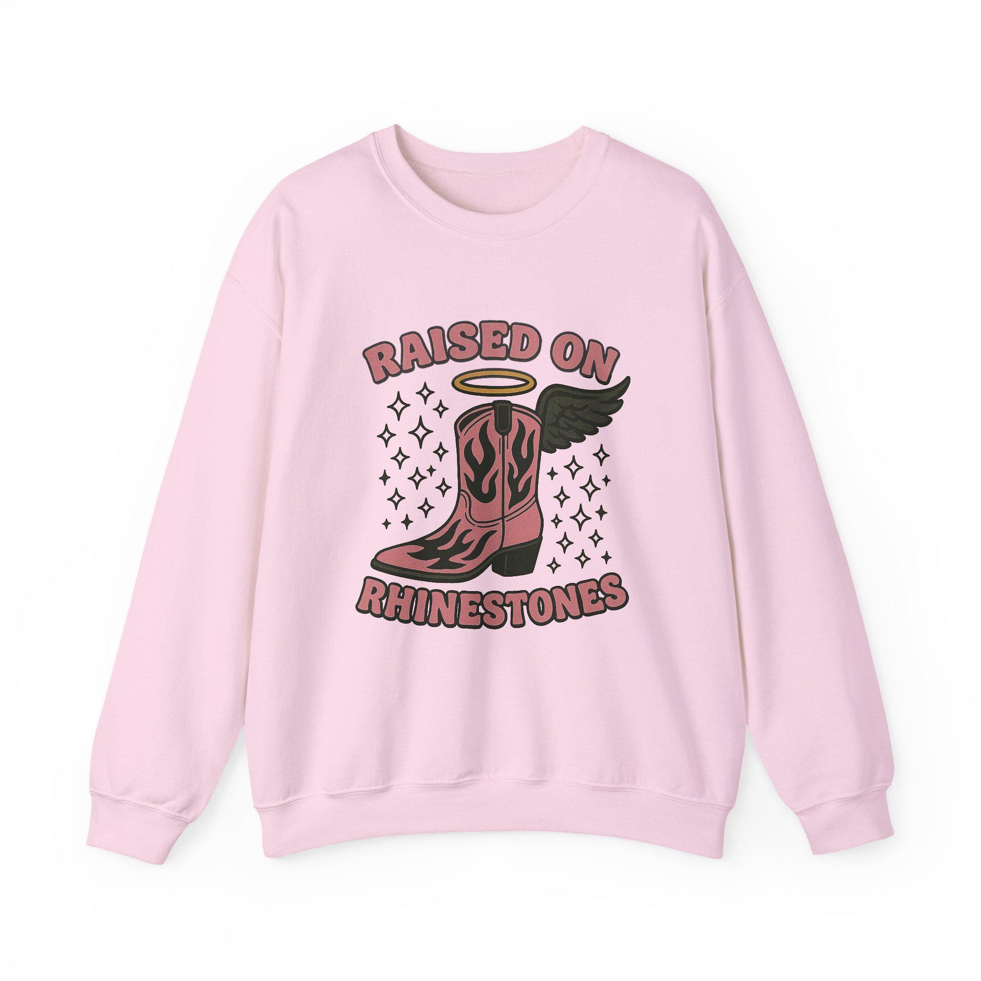 Western "raised on rhinestones" cowgirl boot wing png graphic INSTANT digital download for tshirt sublimation or dtf