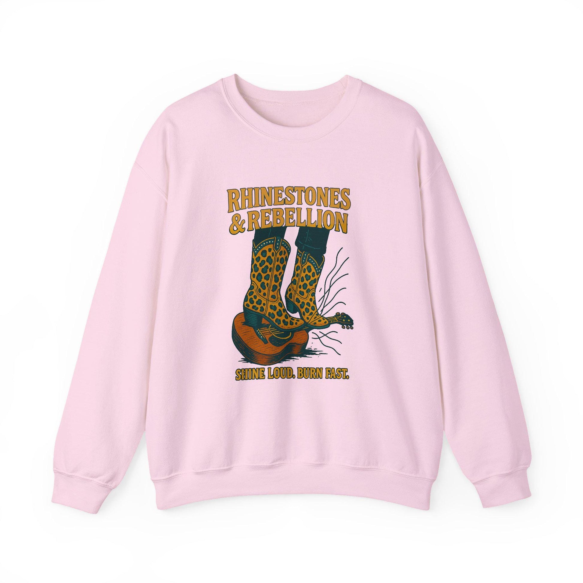 Western "Rhinestones & rebellion" cheetah print cowgirl boots and guitar PNG graphic INSTANT digital download for tshirt sublimation or dtf