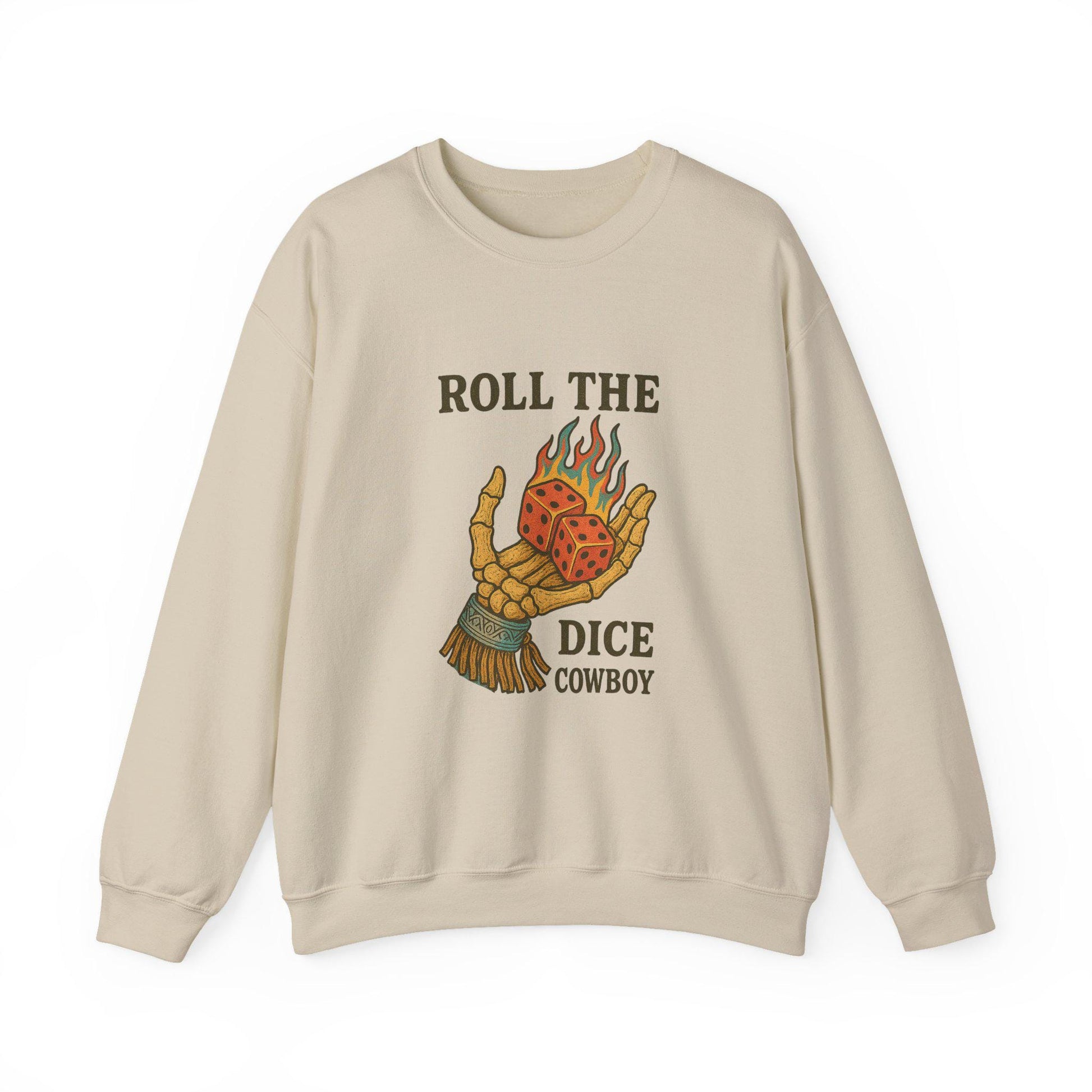 Western "Roll the dice cowboy" skeleton and flaming dice PNG graphic INSTANT digital download for tshirt sublimation or dtf