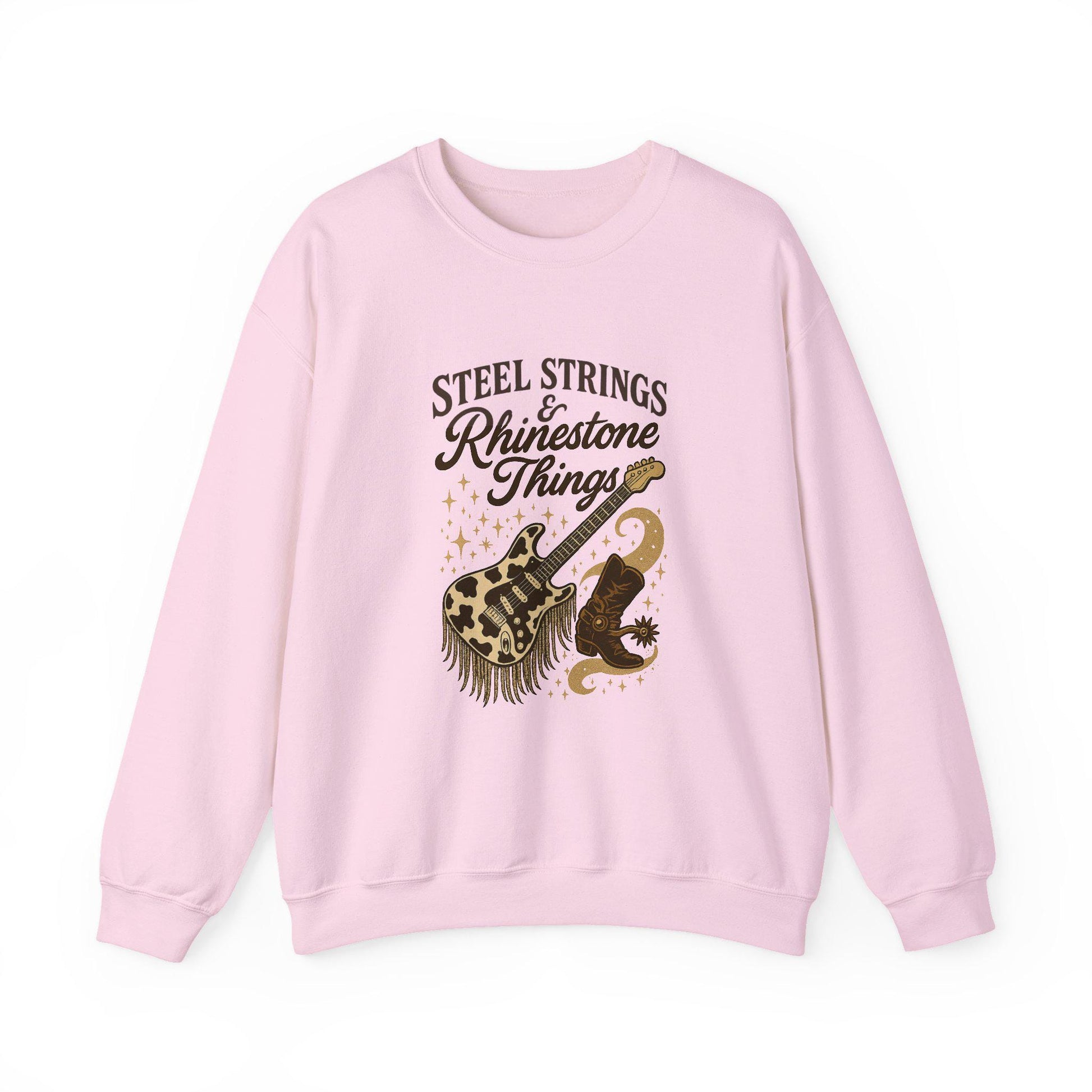 Western "Steel strings & Rhinestone things" cow print guitar cowgirl boot PNG graphic INSTANT digital download for tshirt sublimation or dtf