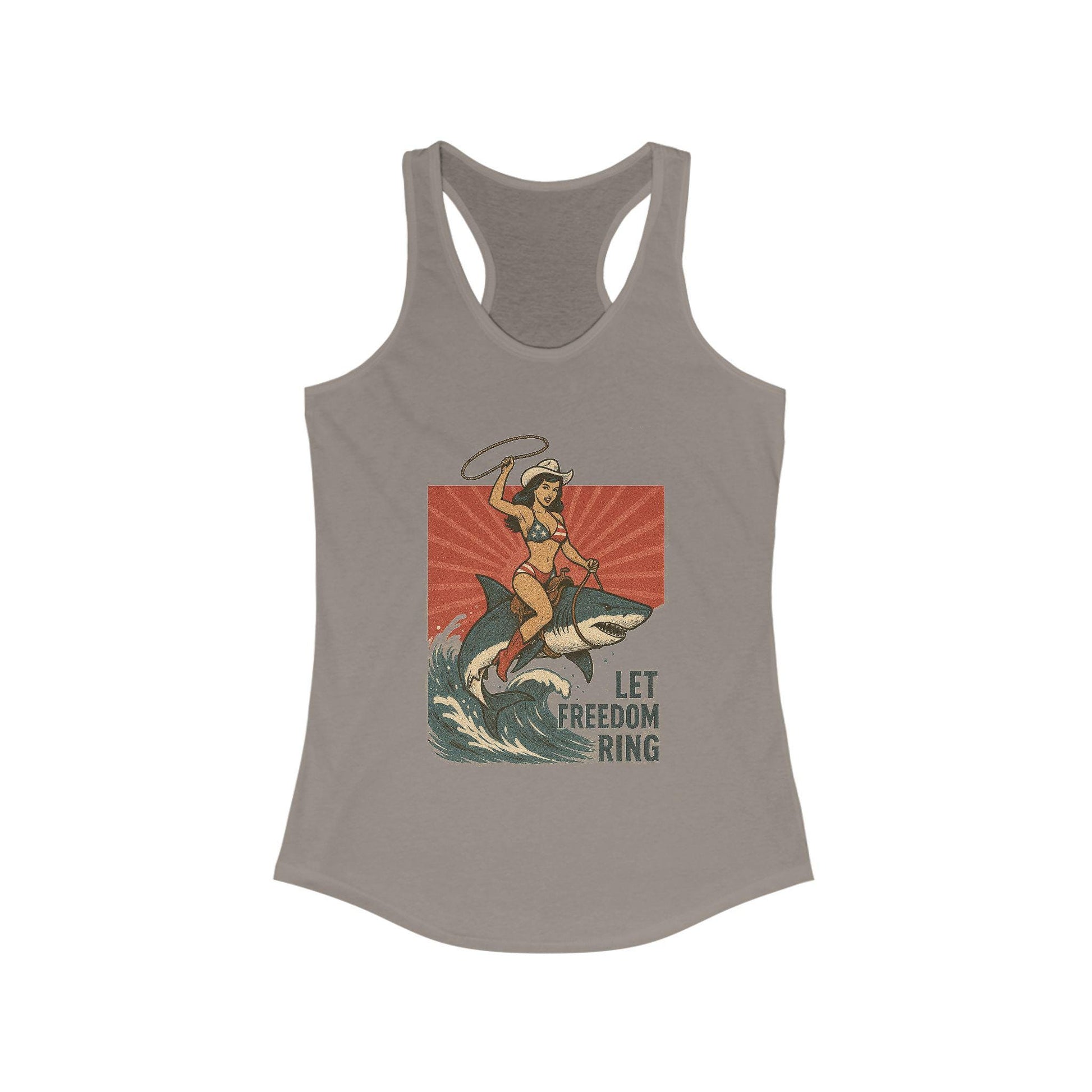 Western summer Independence day pinup cowgirl on shark beach design png graphic digital download for sublimation or dtf
