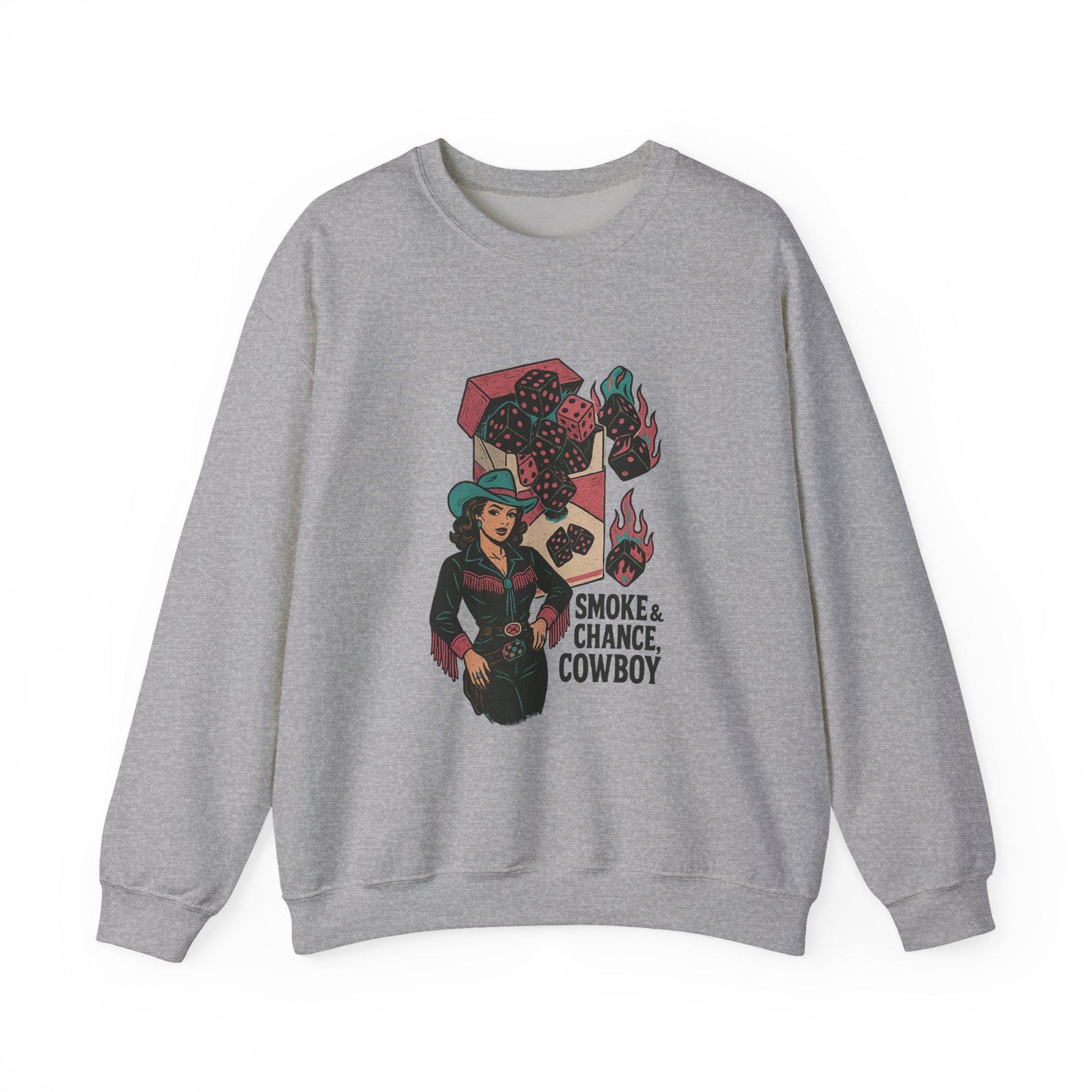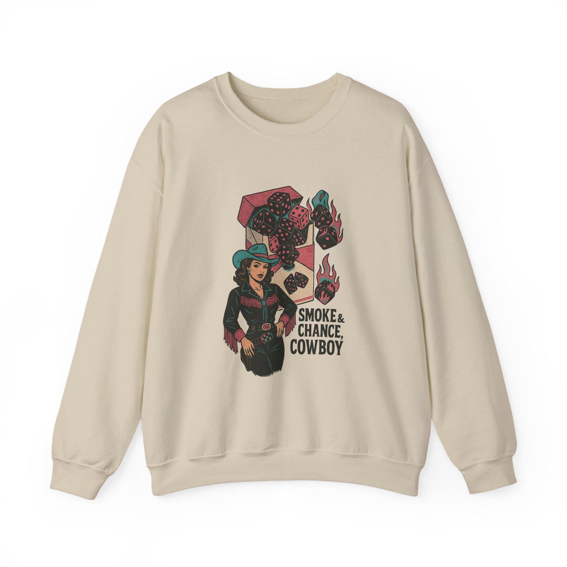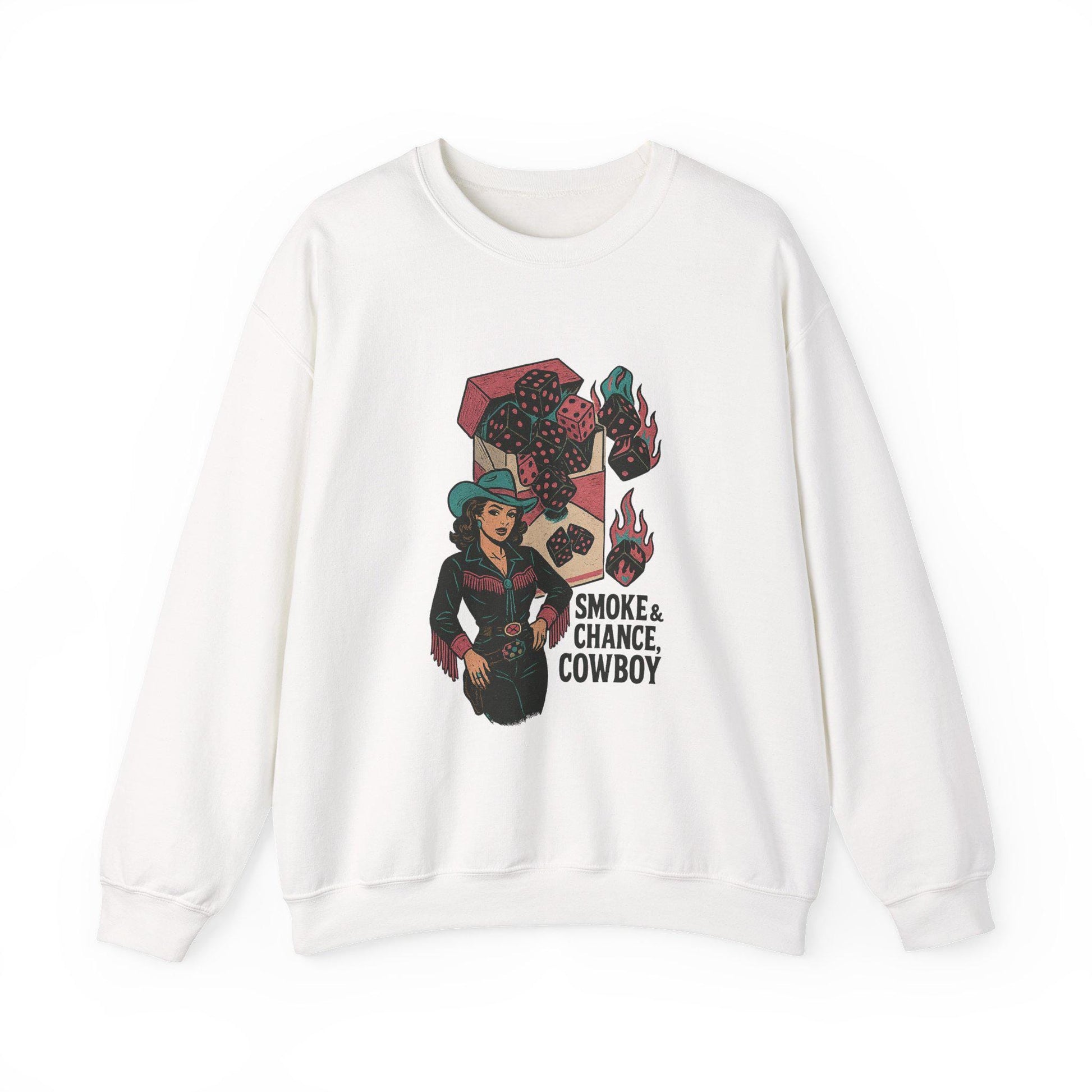Western vintage cowgirl flaming dice cigarette PNG graphic INSTANT digital download for tshirt sublimation or dtf