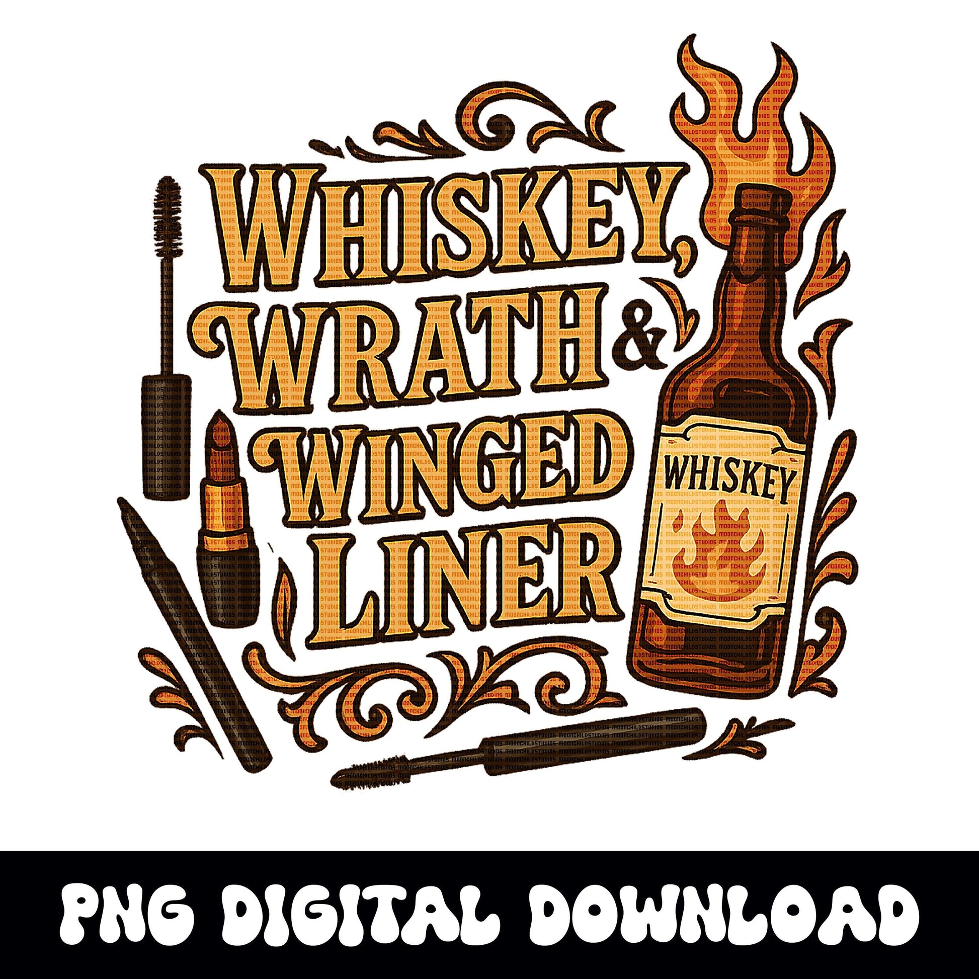 Whiskey, wrath & winger eyeliner PNG graphic INSTANT digital download for tshirt sublimation or dtf