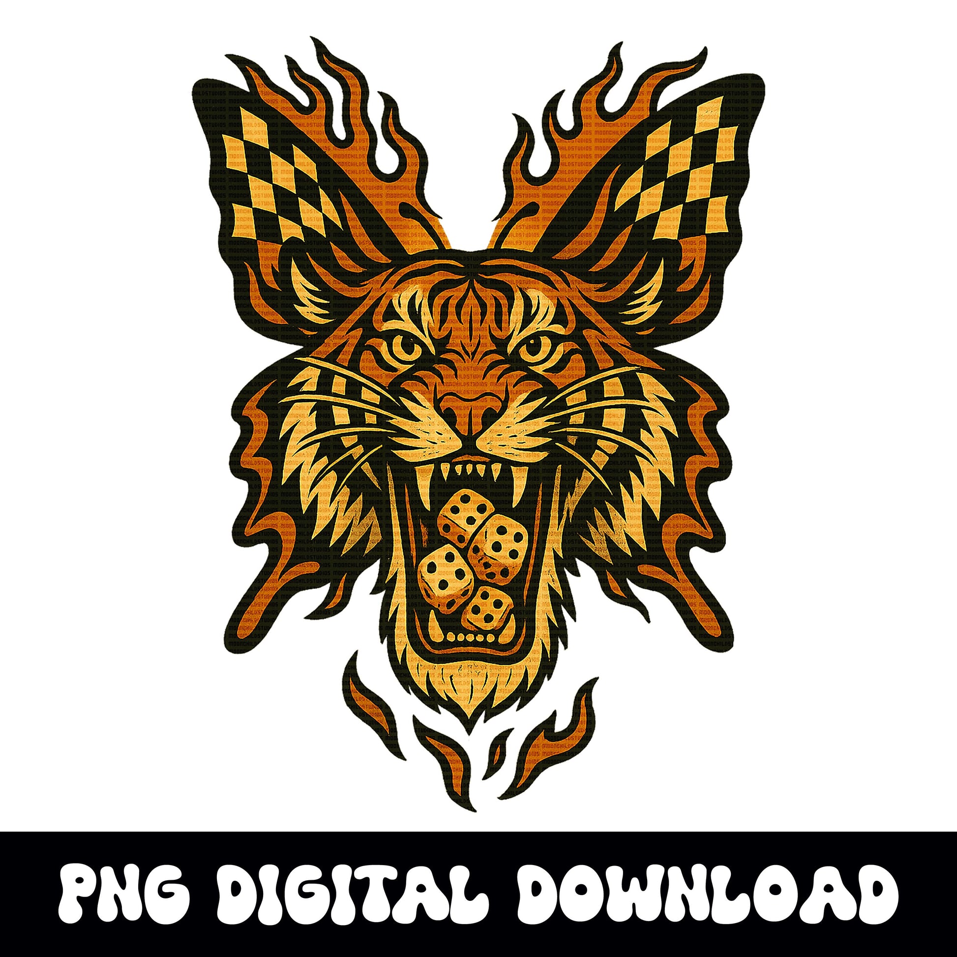 Yallternative edgy flaming butterfly tiger dice PNG graphic INSTANT digital download for tshirt sublimation or dtf