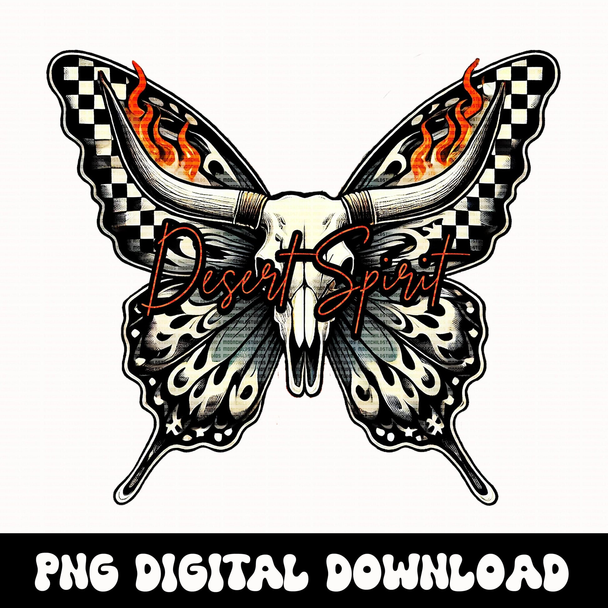Yallternative edgy grunge western flame desert spirit checkered butterfly graphic sublimation or dtf design PNG