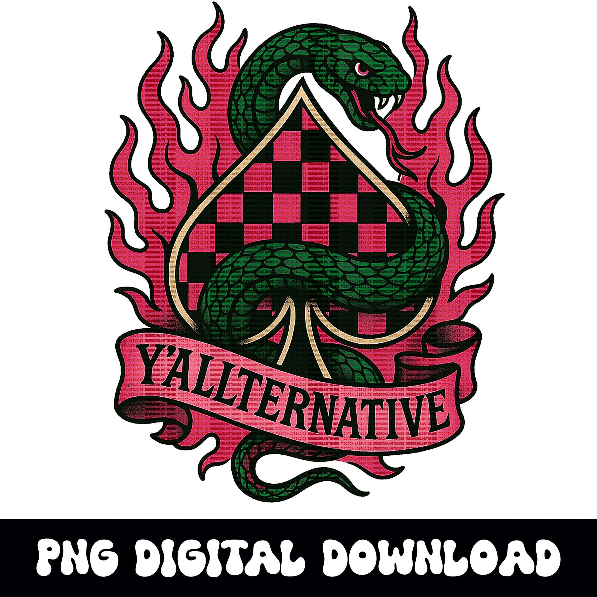 Yallternative snake checkered spade flame png graphic INSTANT digital download for tshirt sublimation or dtf